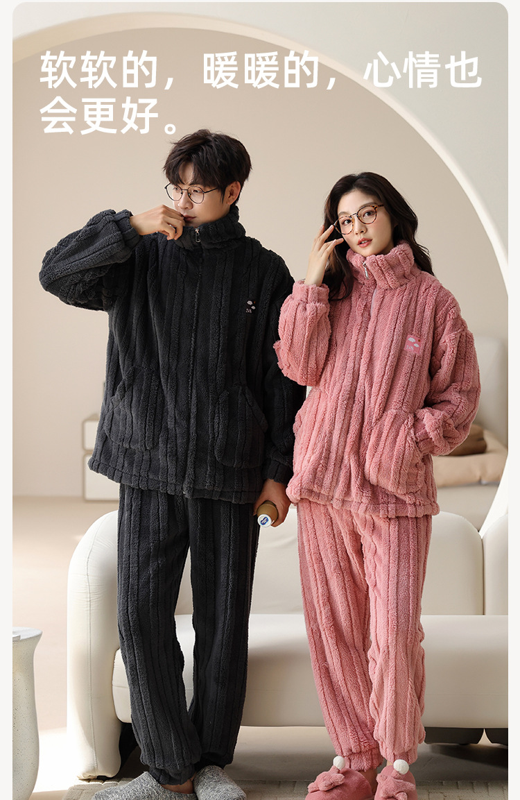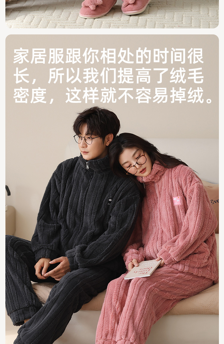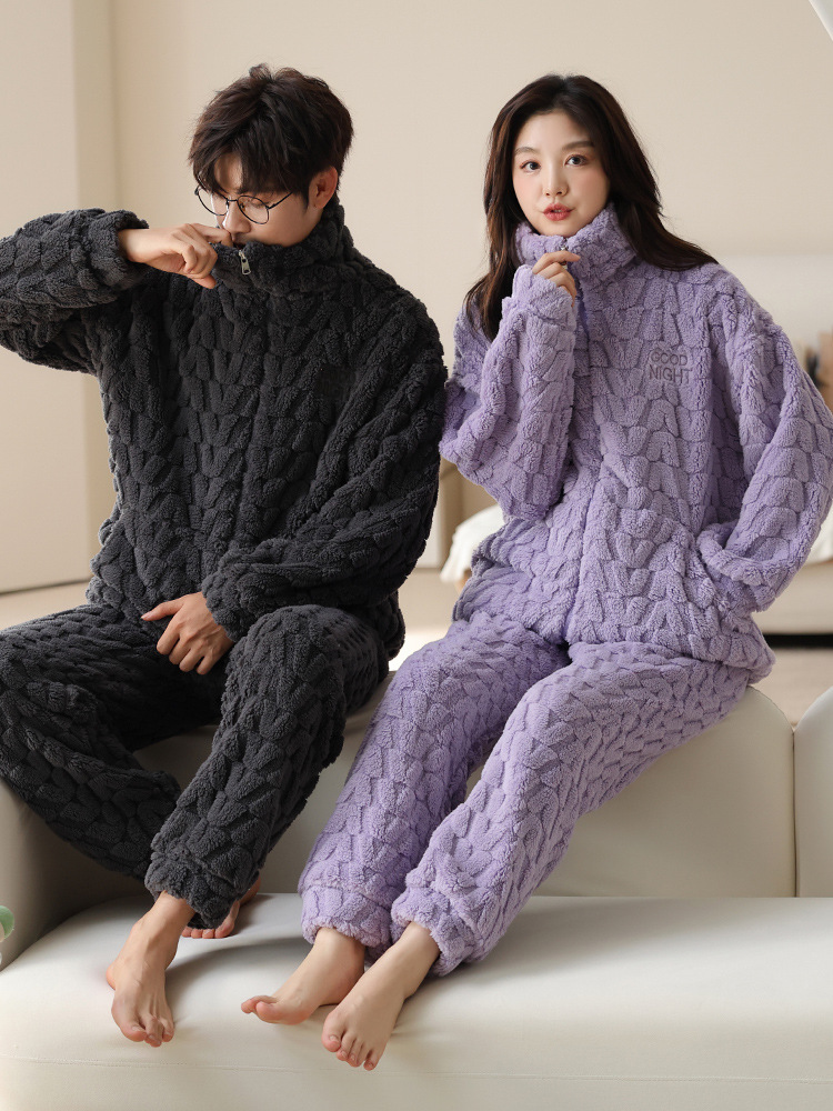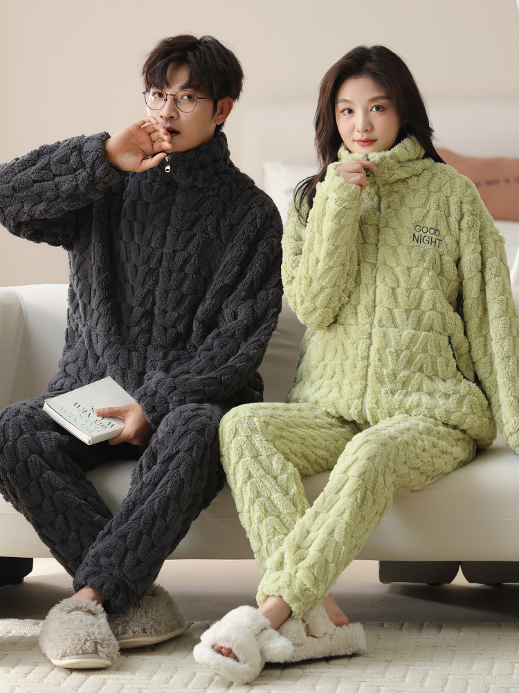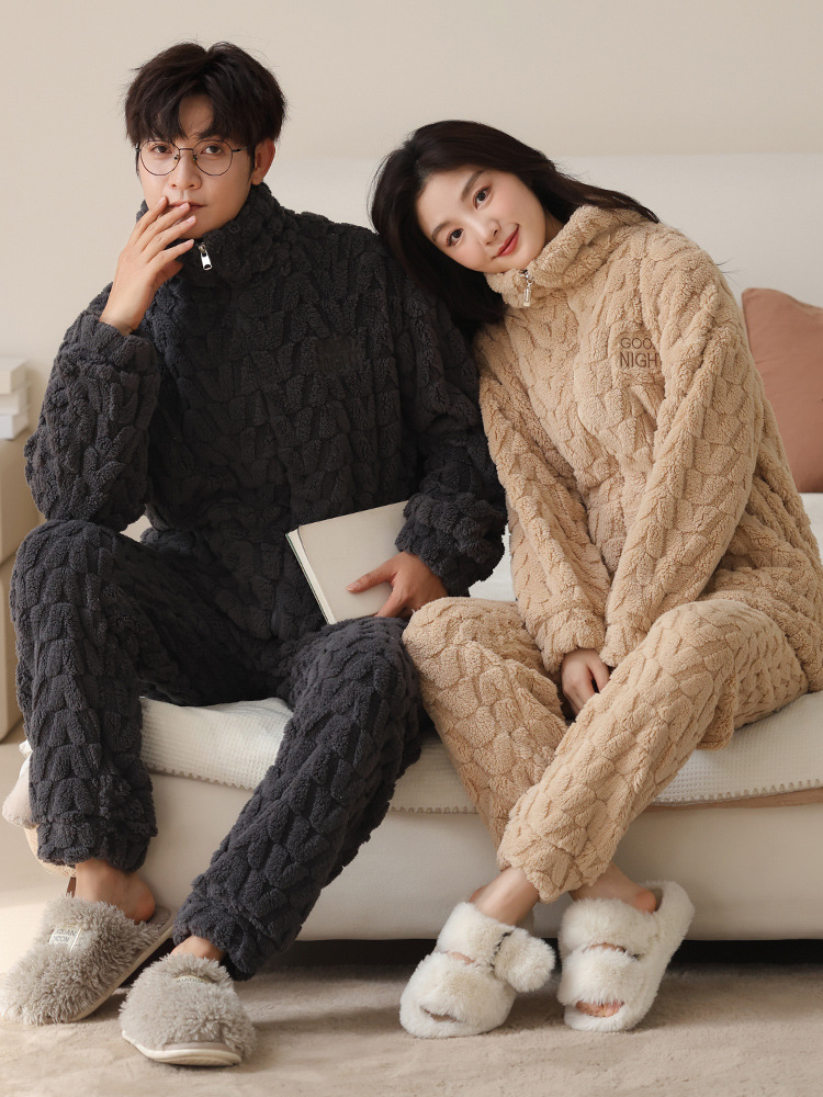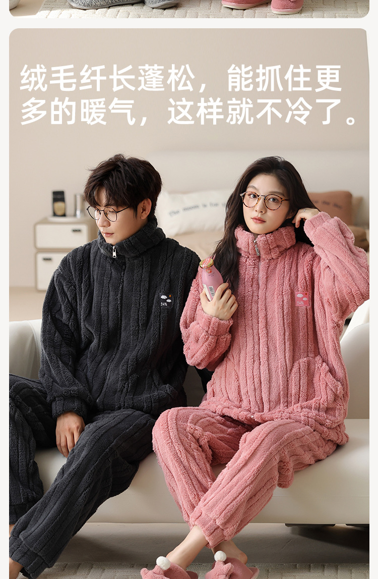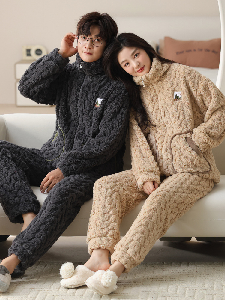 커플 잠옷 여성의 가을과 겨울 산호 양털 두꺼운 따뜻한 남성 지퍼 캐주얼 홈 의류 세트