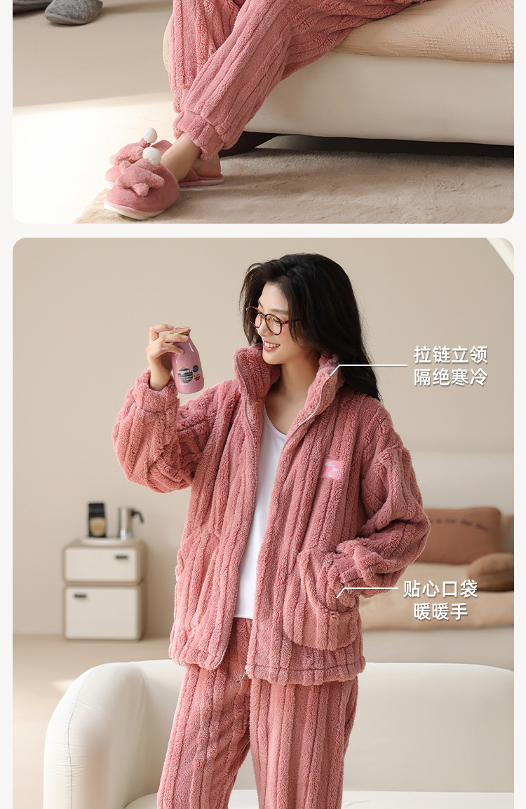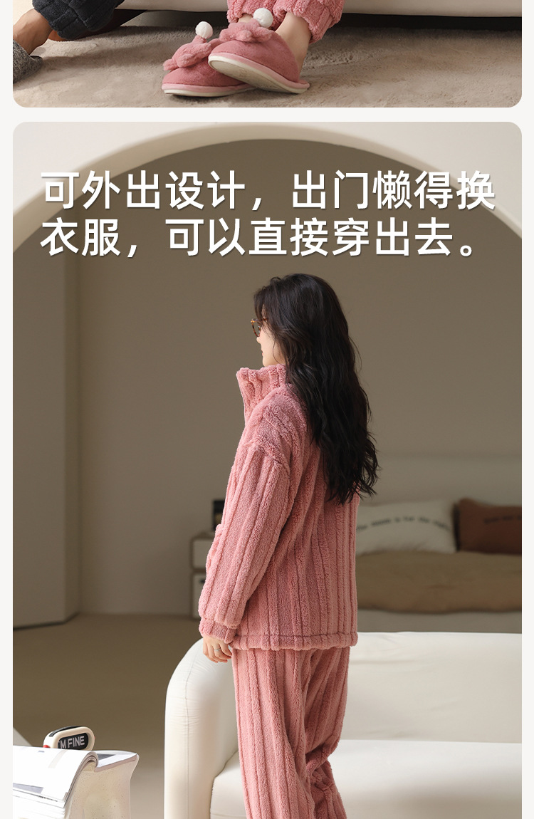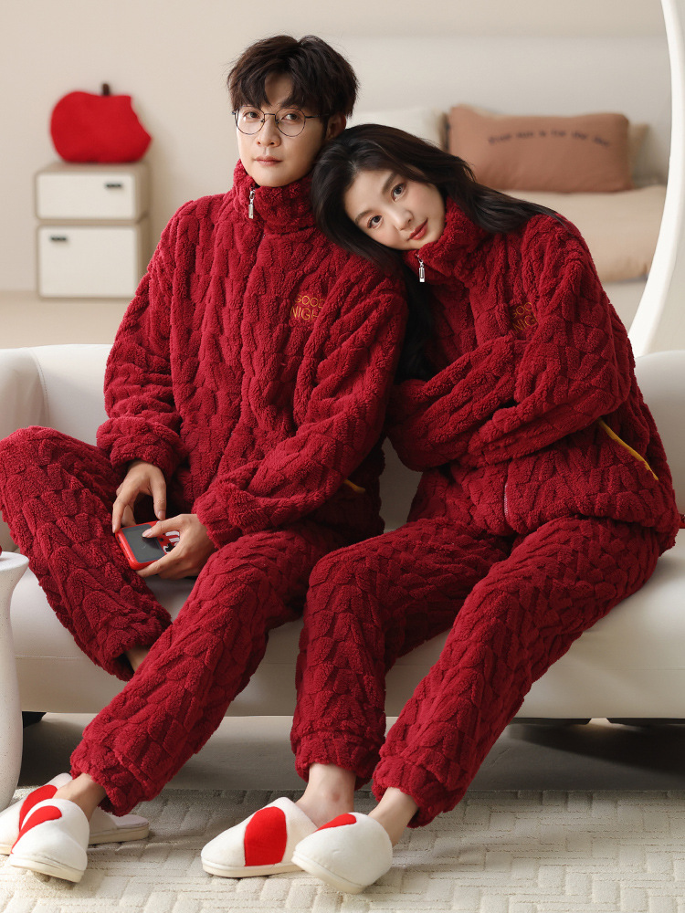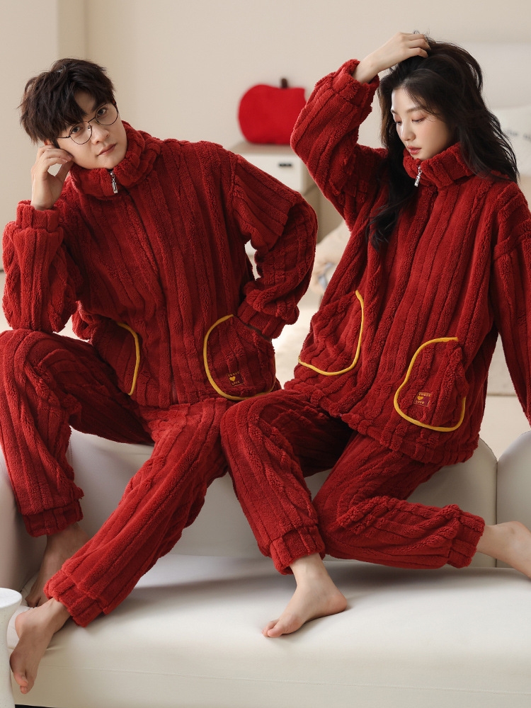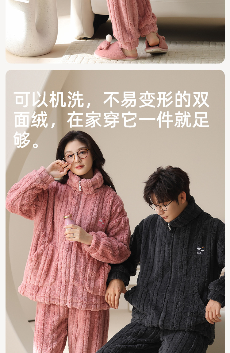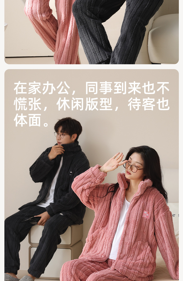 커플 잠옷 여성의 가을과 겨울 산호 양털 두꺼운 따뜻한 남성 지퍼 캐주얼 홈 의류 세트