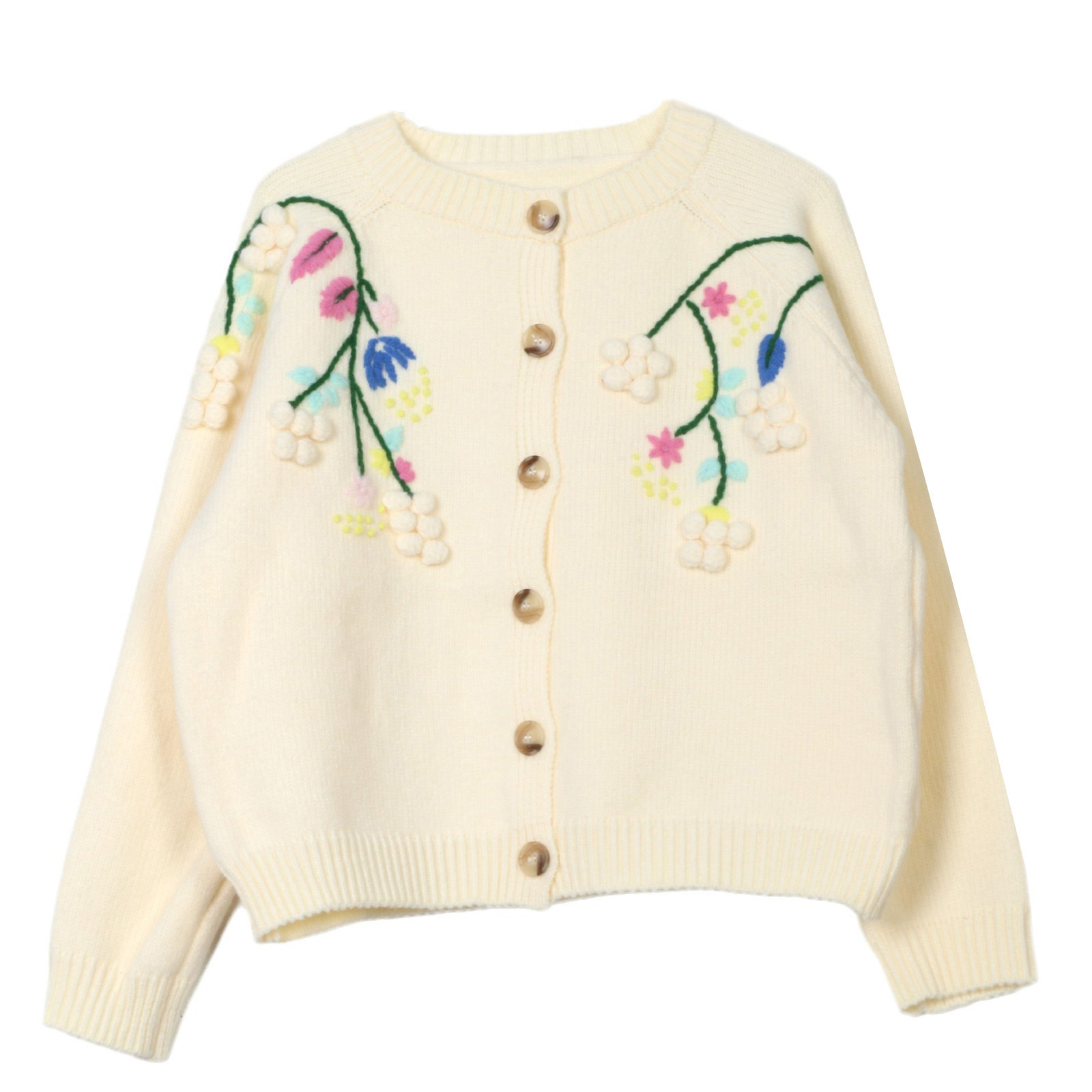 • 여성용 살구 자수 스웨터