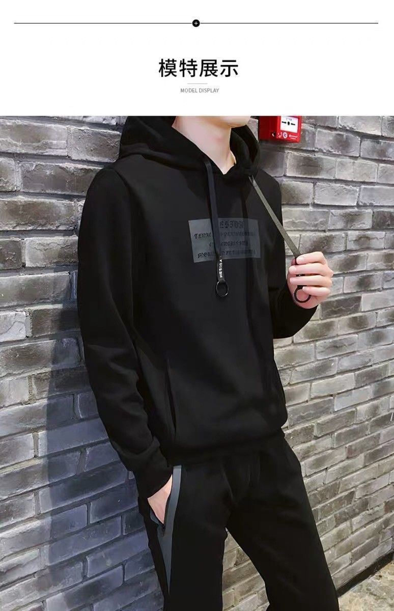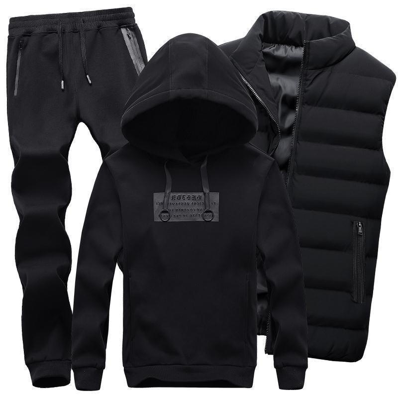 남자 가을과 겨울 땀 조끼 캐주얼 3 피스 세트 패션 간단한 캐주얼 핸섬 후드 스포츠 3 피스 팩스토어 가기