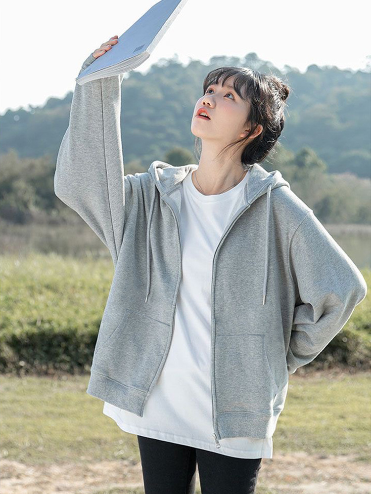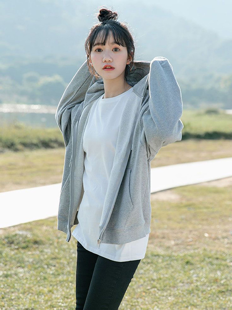 남자와 여자 커플을위한 대외 무역 회색 후드 스웨트 가을 새로운 한국 느슨한 올 매치 재킷 캐주얼 Ins Top