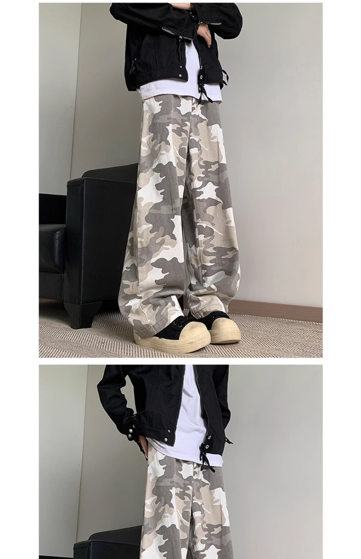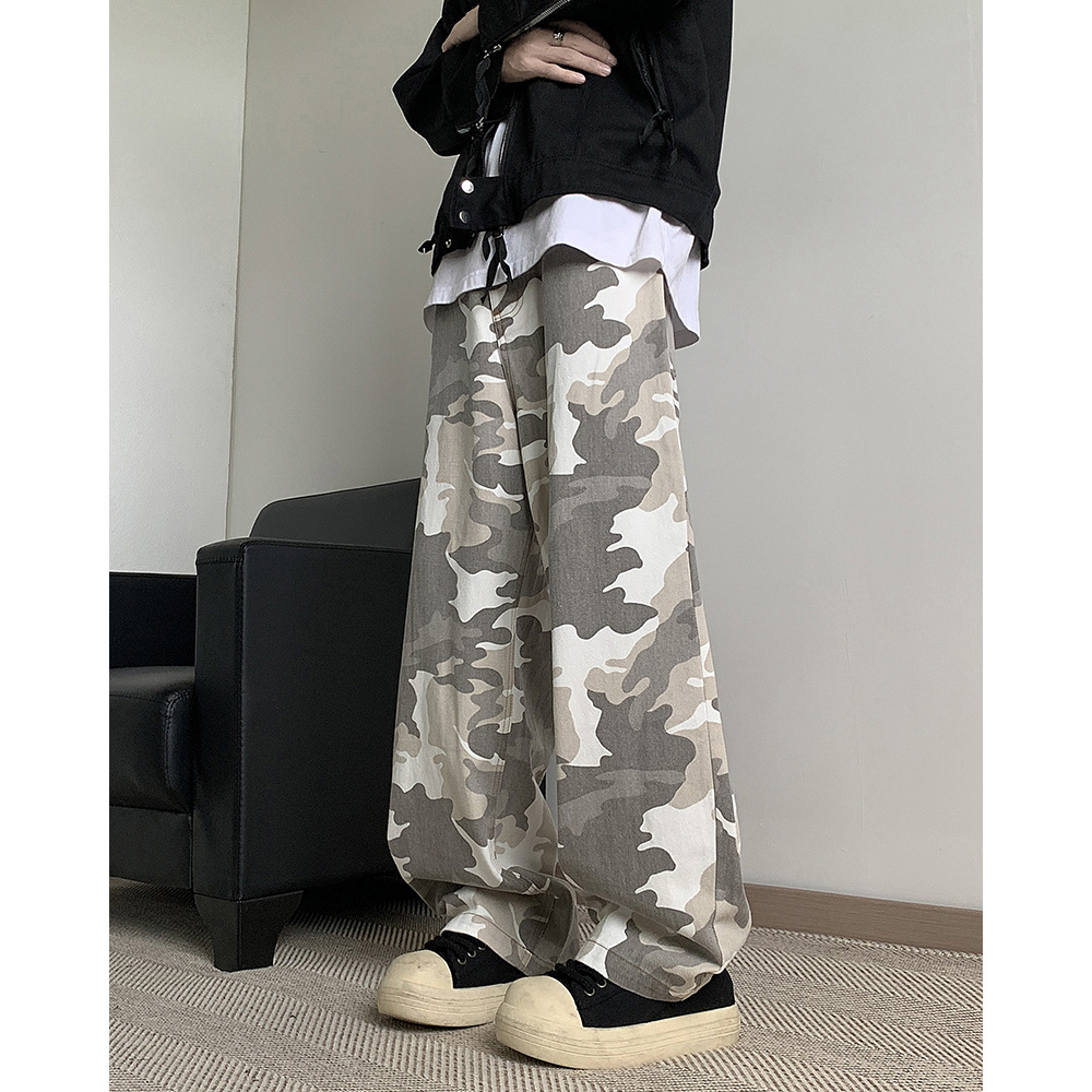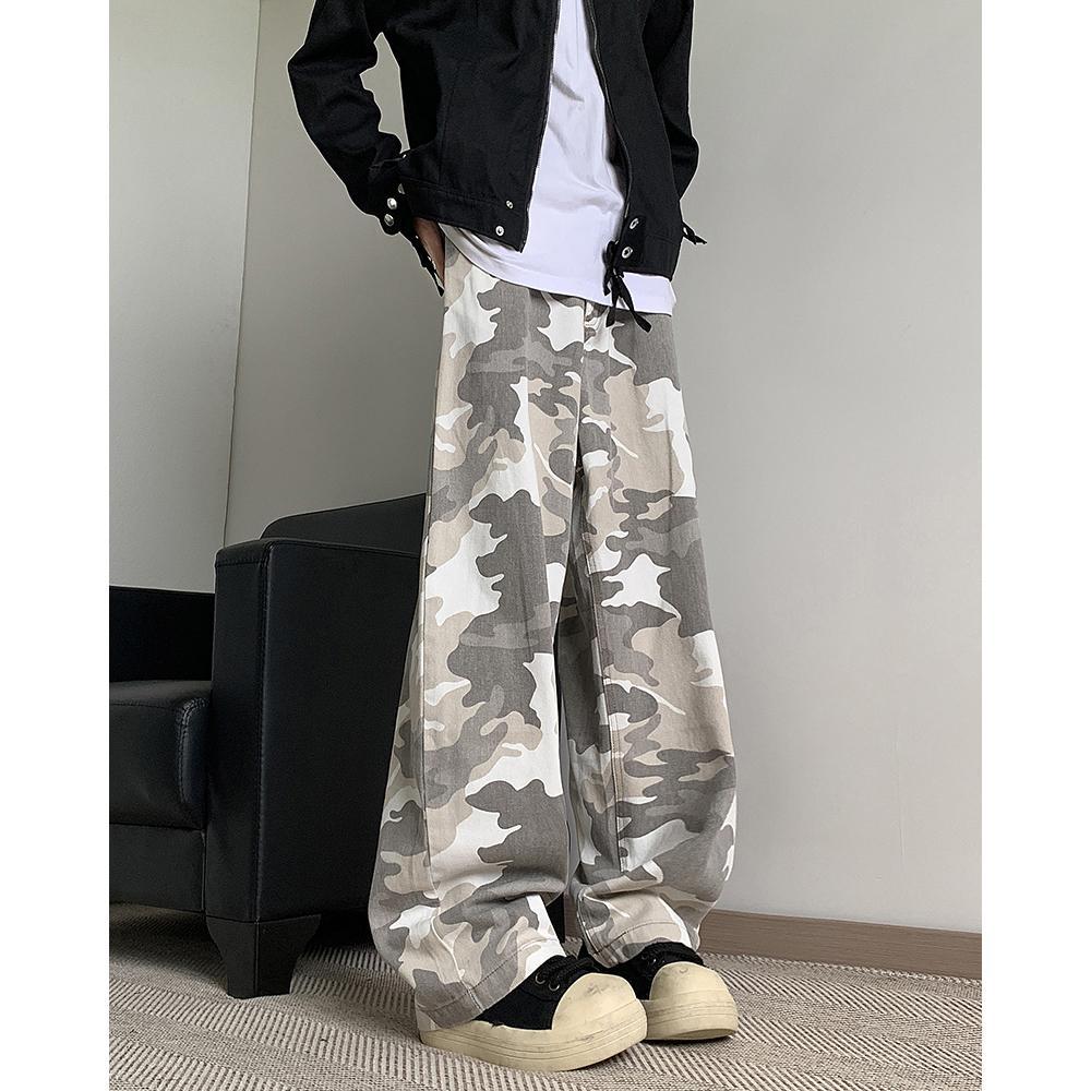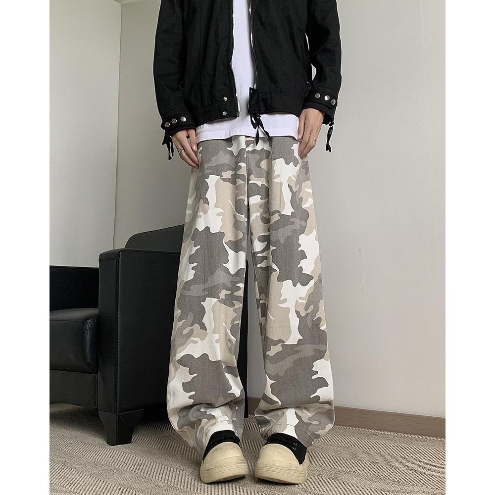 정사이즈 새로운 브랜드 트렌디 한 예술적 흰색 회색 사막 위장 바지 남자 여름 스트레이트 바지 간단한 트렌디스토어 가기
