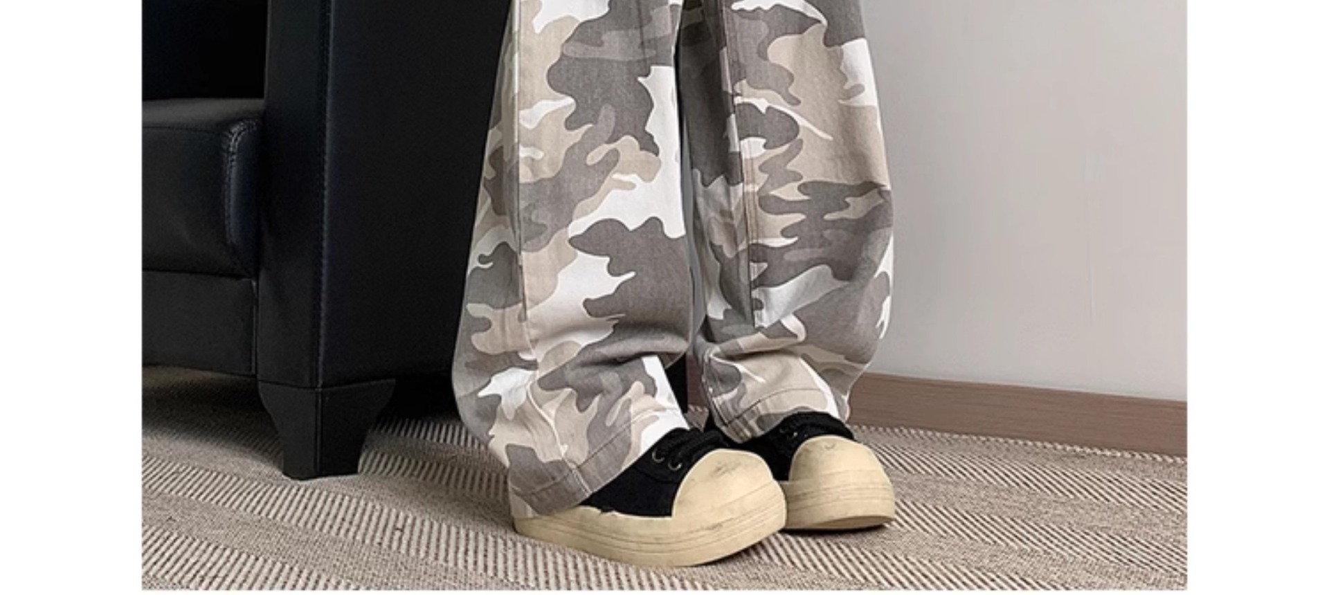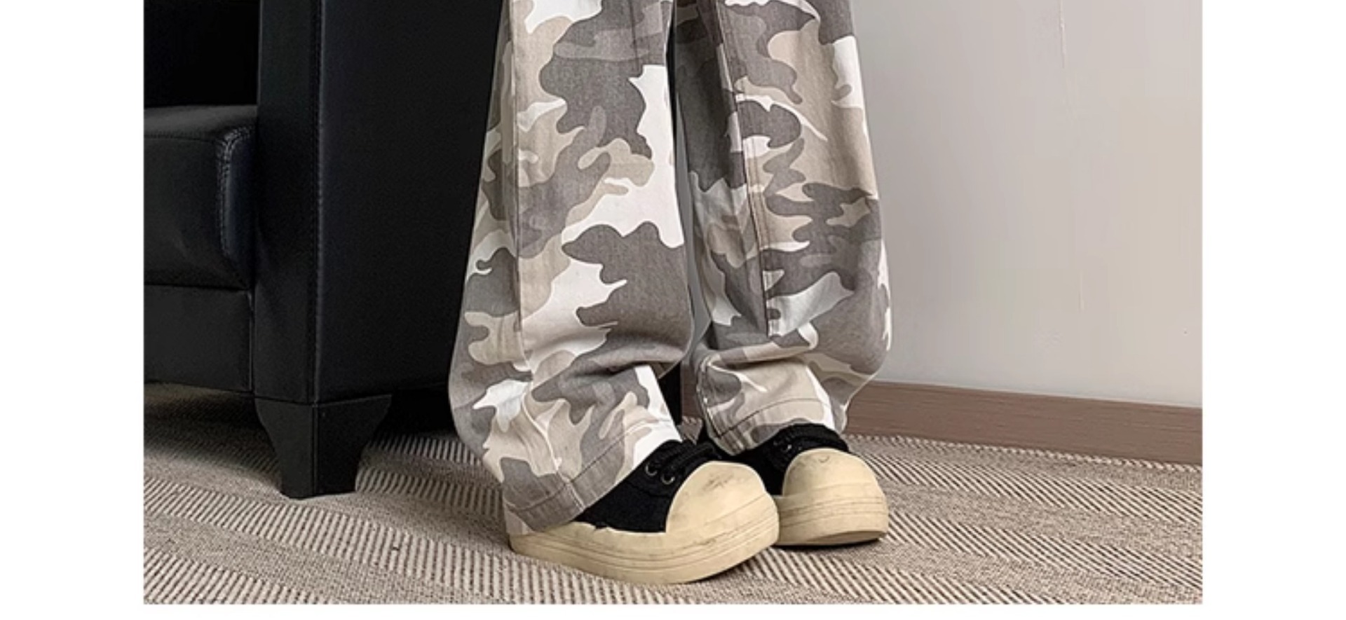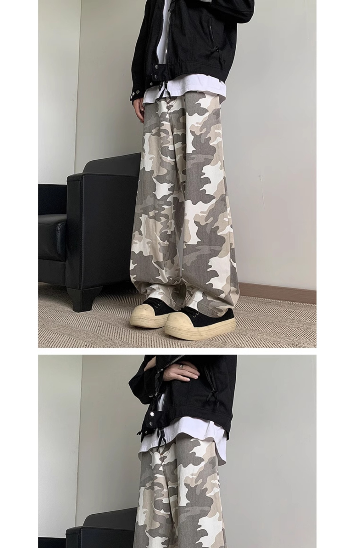 정사이즈 새로운 브랜드 트렌디 한 예술적 흰색 회색 사막 위장 바지 남자 여름 스트레이트 바지 간단한 트렌디스토어 가기