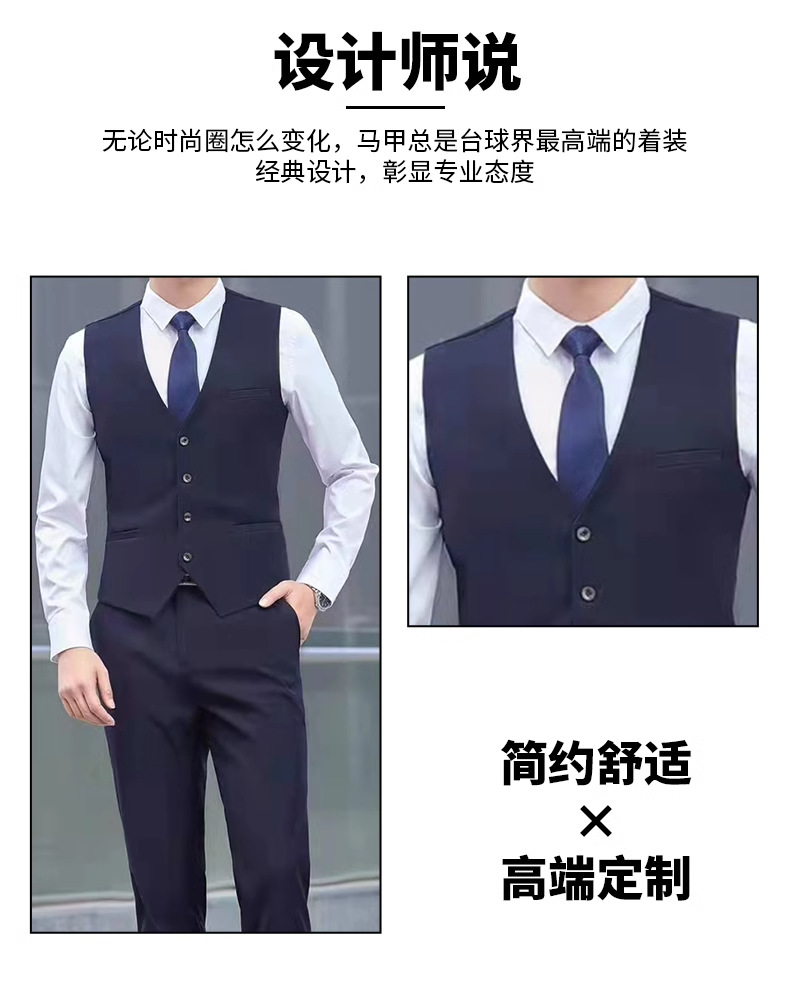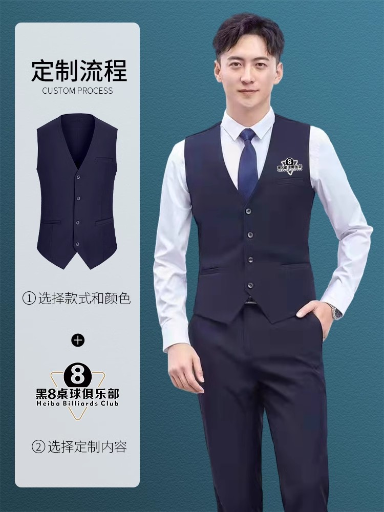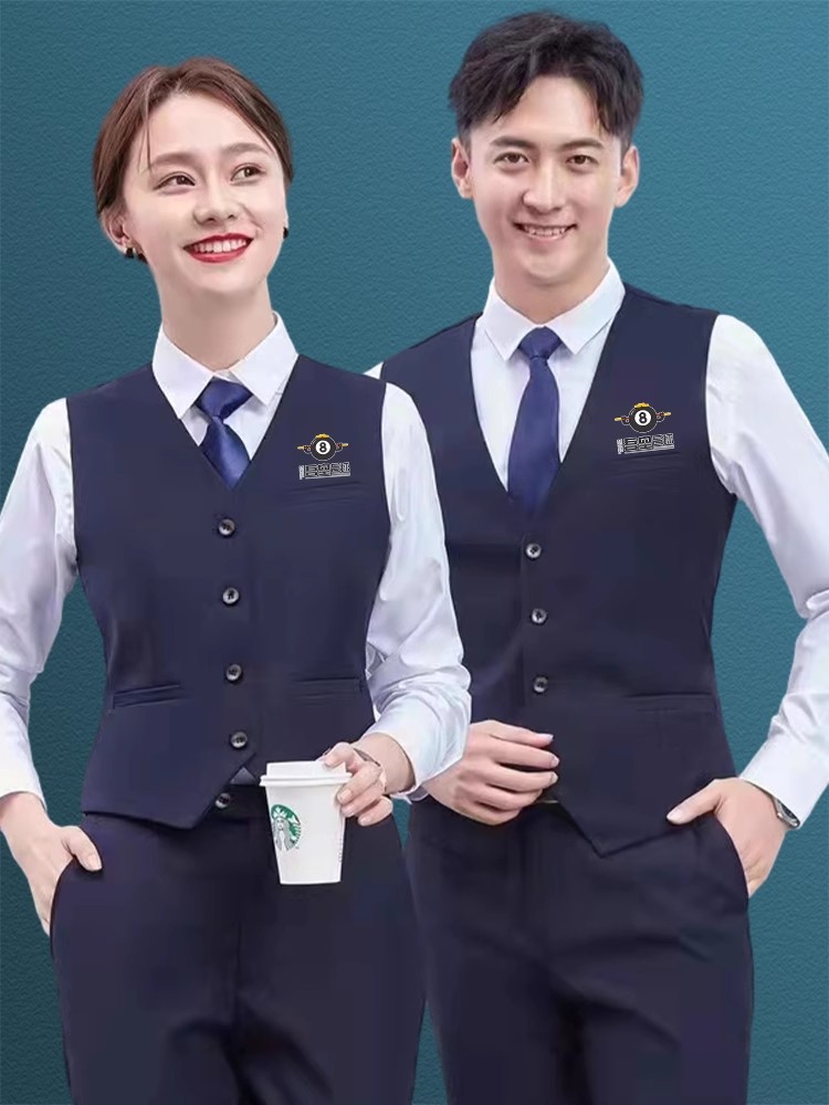 고급 당구장 바지 조끼 맞춤형 여름 슈퍼마켓 당구 프론트 오피스 출납원 조끼 자수 로고