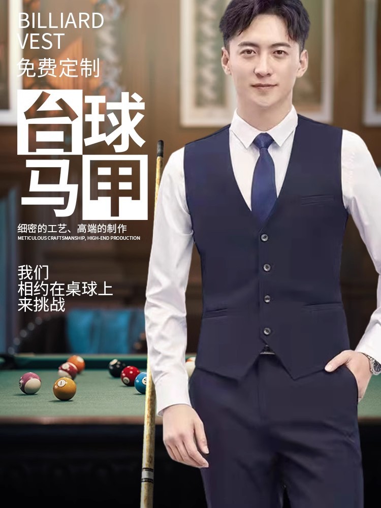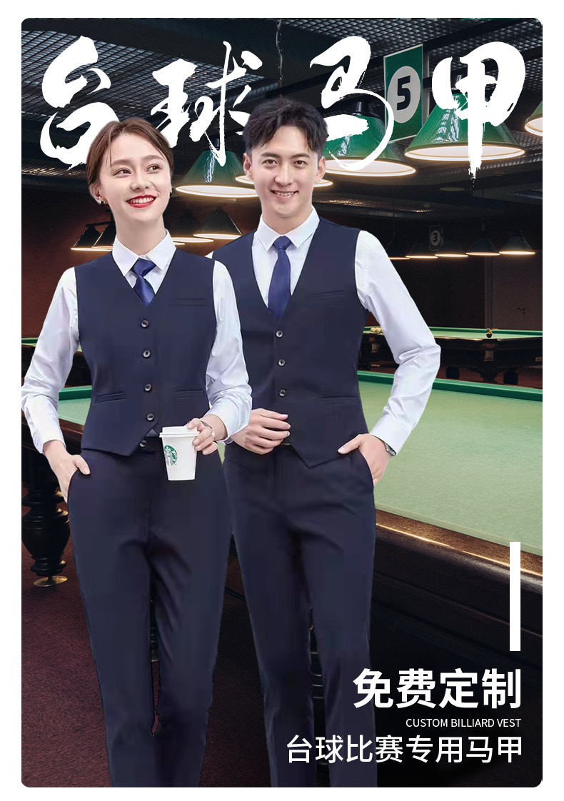 고급 당구장 바지 조끼 맞춤형 여름 슈퍼마켓 당구 프론트 오피스 출납원 조끼 자수 로고스토어 가기