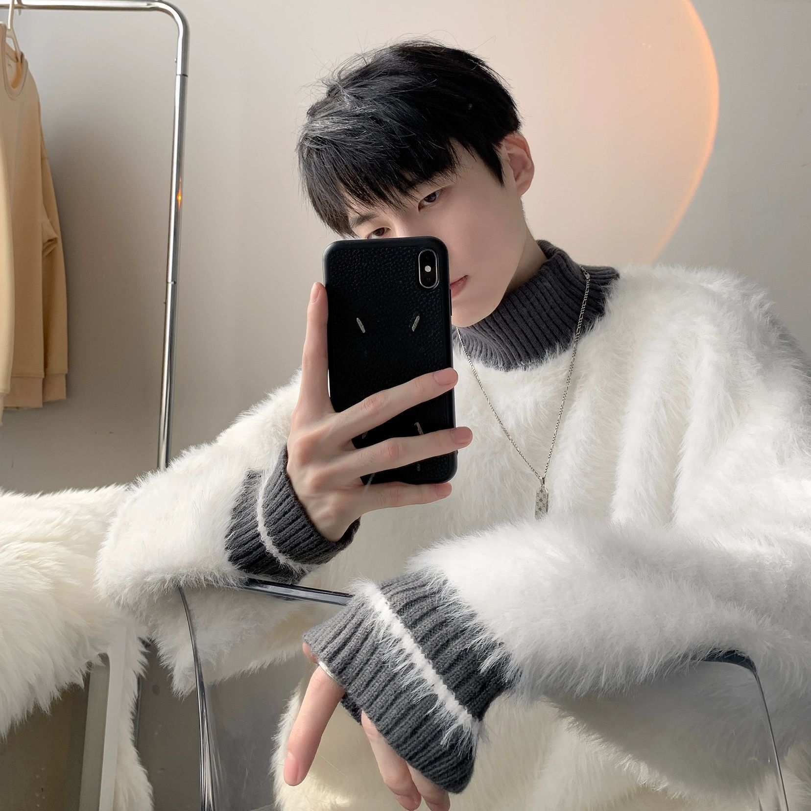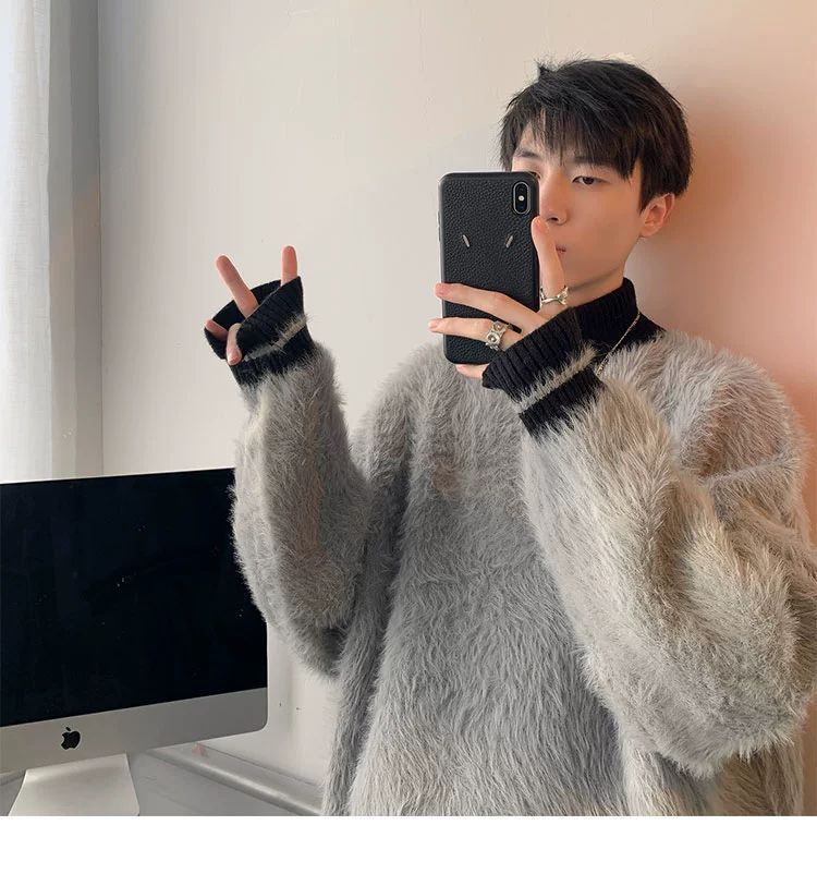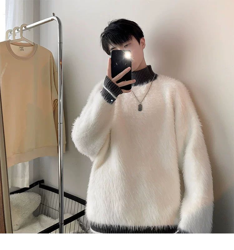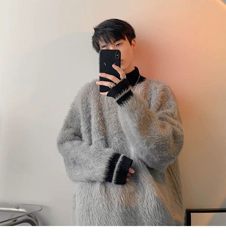 Mahair 스웨터 남자 2024 가을과 겨울 일본의 게으른 복고풍 크루 넥 밍크 울 애호가 헤어 세대와 스웨터스토어 가기