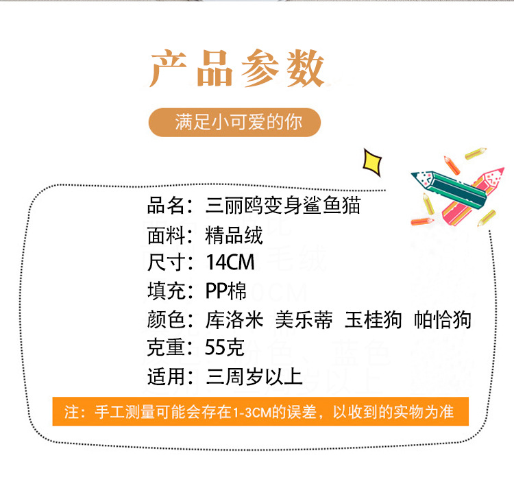 봉제 산리오 상어 고양이 배낭 교수형 인형 도매 학교 가방 펜던트 인형 창조적 인 키 체인 작은 선물