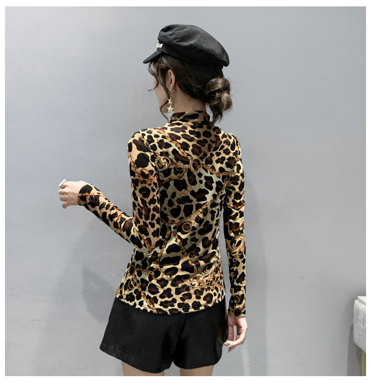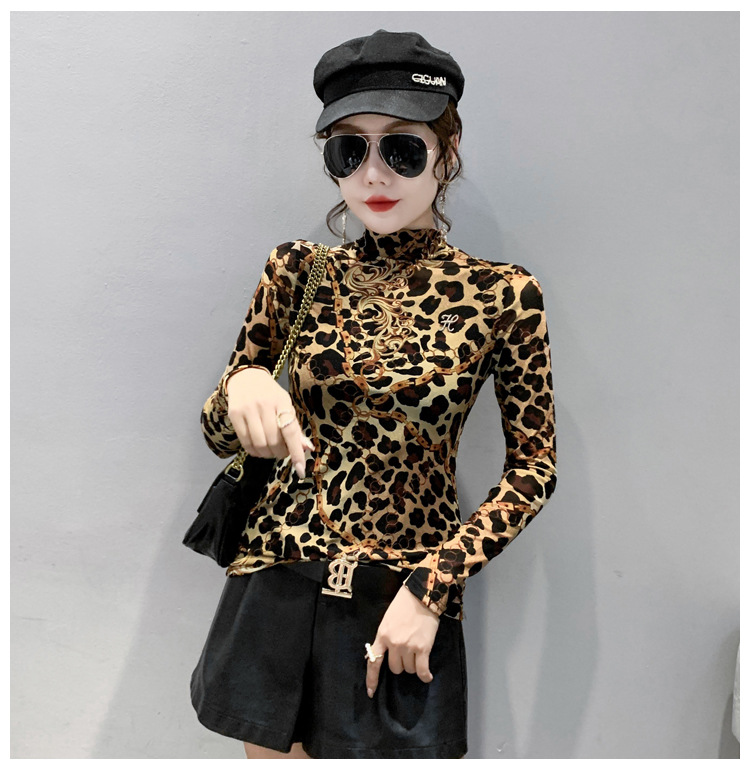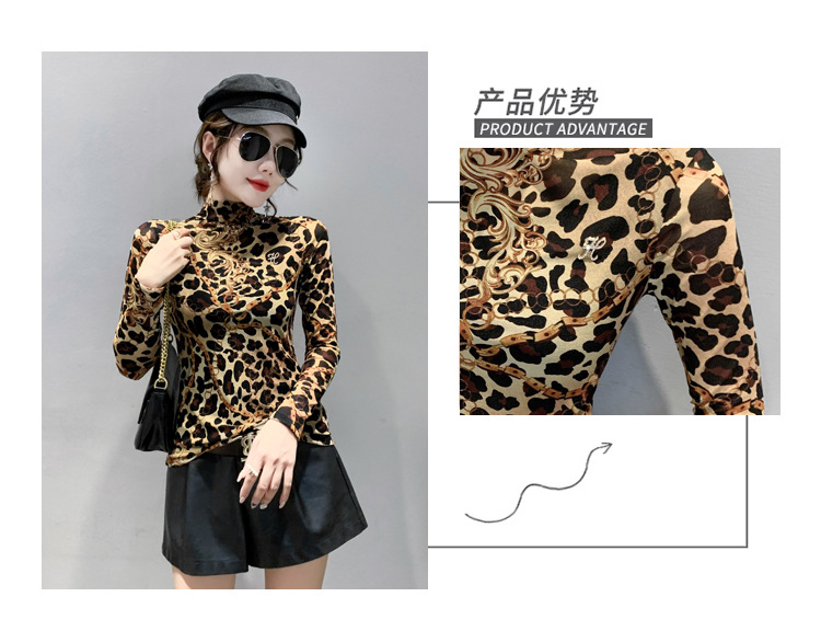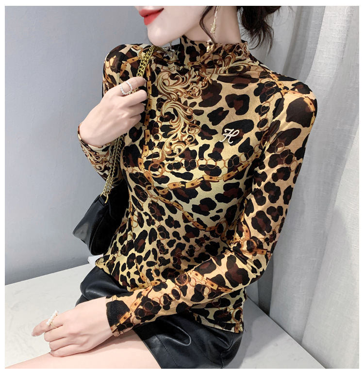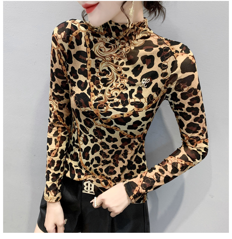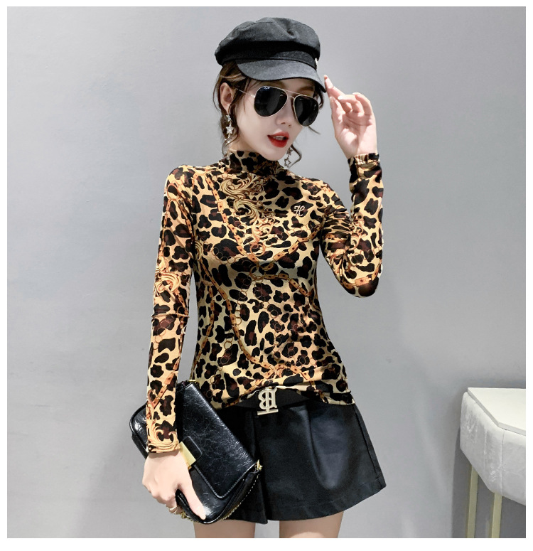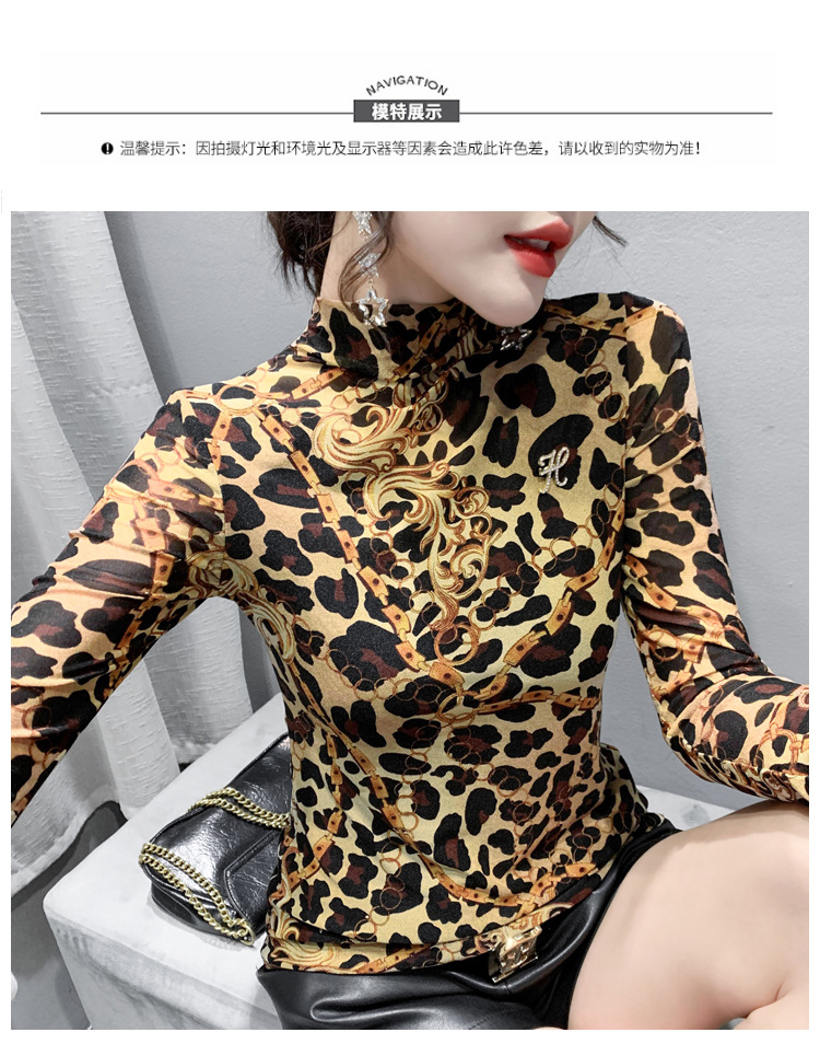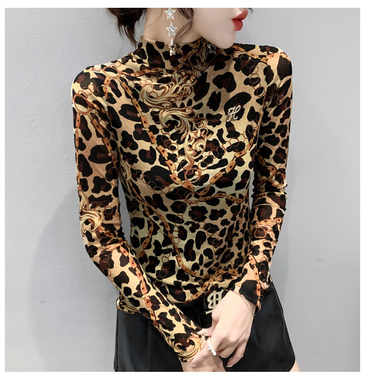 2024 가을과 겨울 새로운 세미 하이 칼라 메쉬베이스 셔츠 슬림 패션 다이아몬드 긴팔 티셔츠 재킷 머리카락스토어 가기