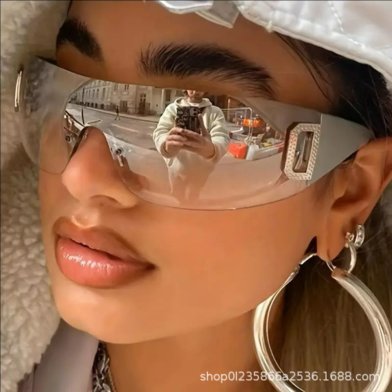 D-워드 프레임리스 선글라스 Y2K 밀레니엄 스파이스 걸스 선글라스 여성 국경 유럽 및 미국 성격 선글라스 미래 감각