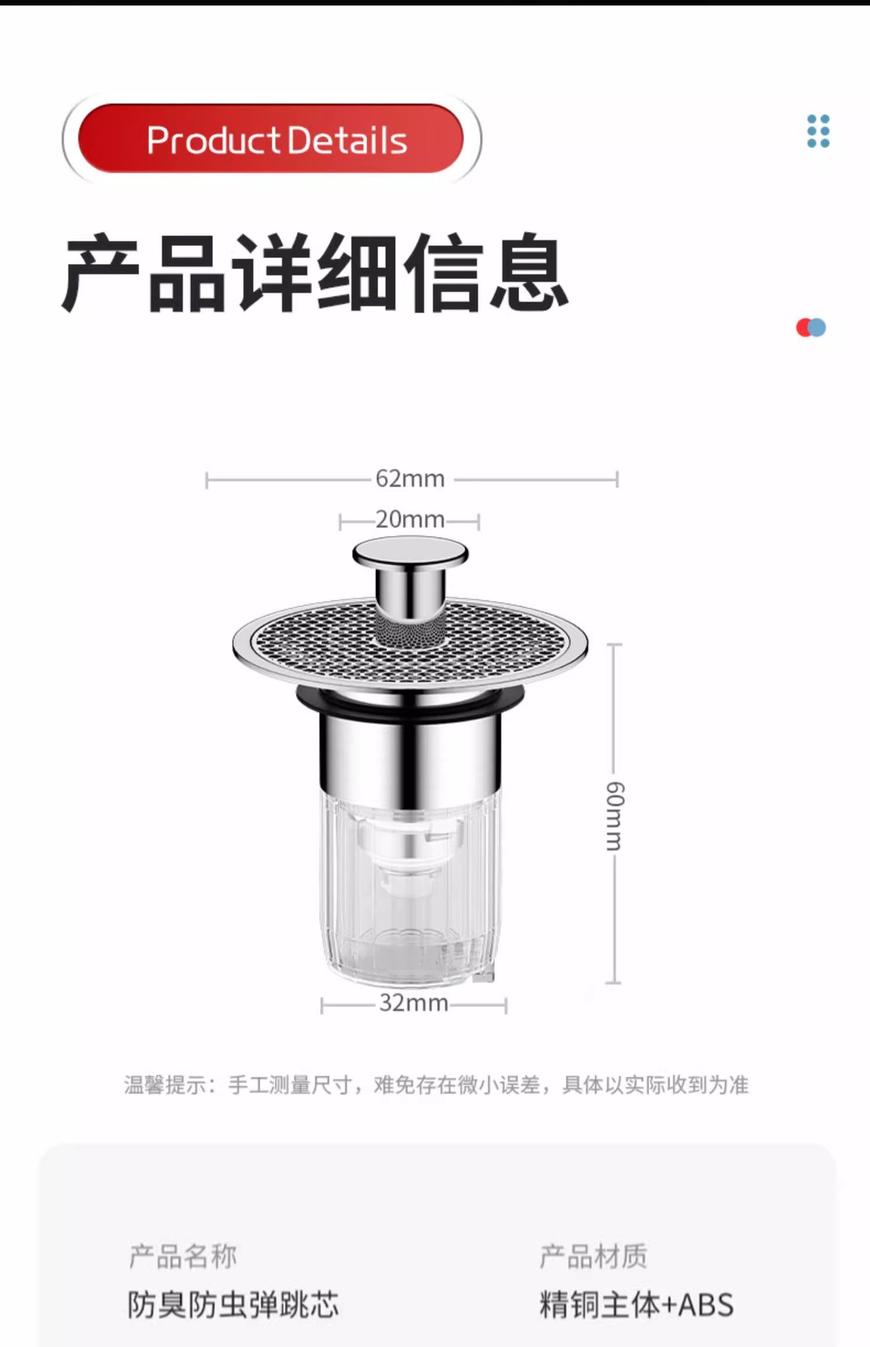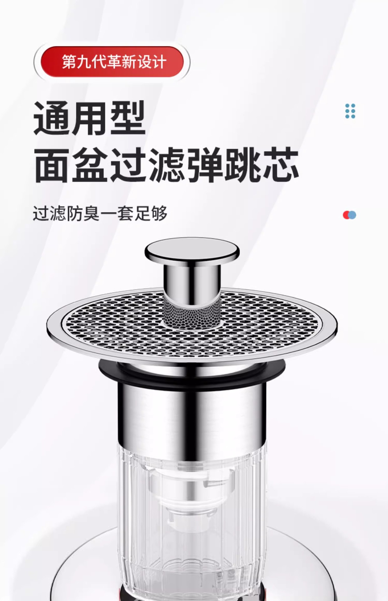 워시 분지 누출 플러그 바운스 코어 세면기 싱크 배수 헤어 필터 탈취제 분해 범용 프레스