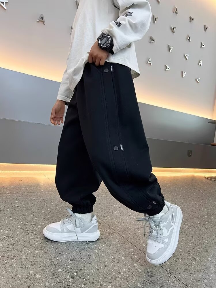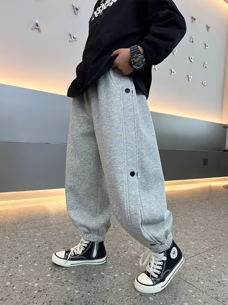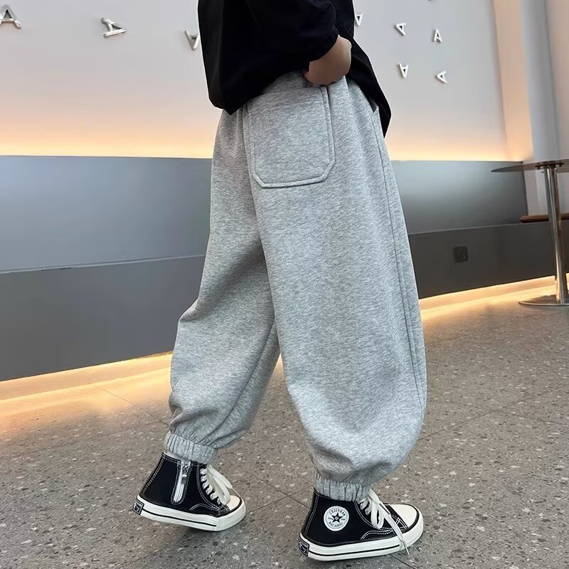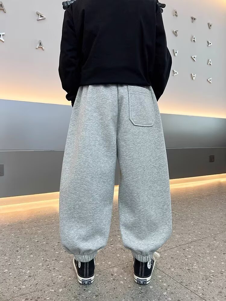 소년 바지 가을과 겨울 캐주얼 느슨한 대형 어린이 서양식 스포츠 바지 남학생 기모 올 매치 스위트 바지 트렌디