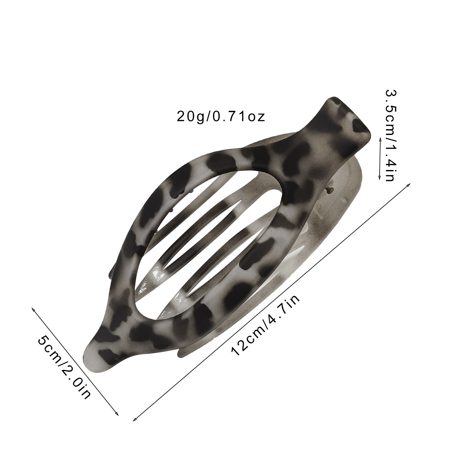• 타원형 머리핀 - 단색 회색 및 흰색 표범 무늬