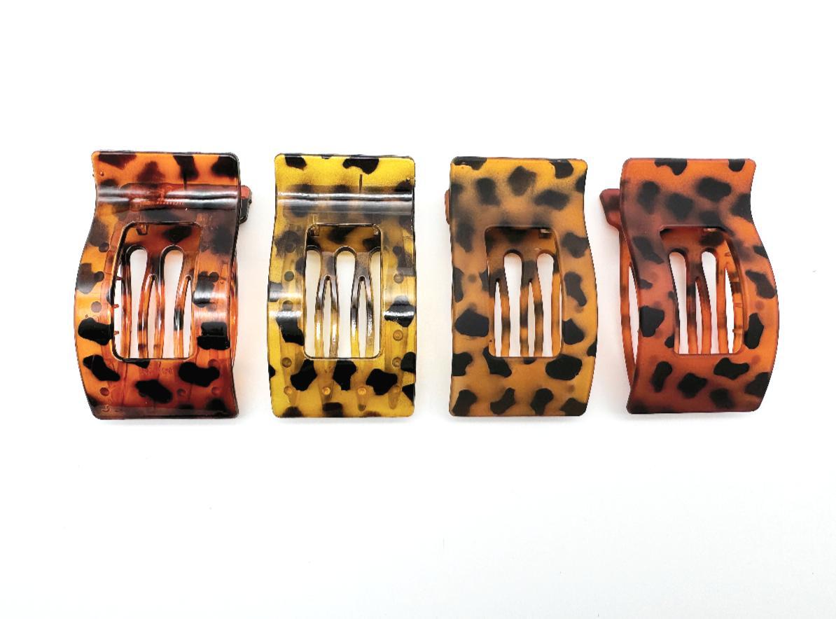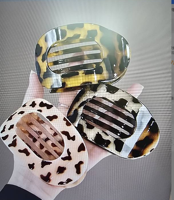 • 타원형 머리핀-투명 붉은 표범 무늬