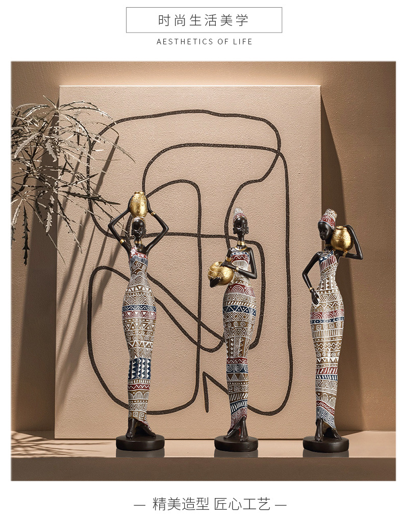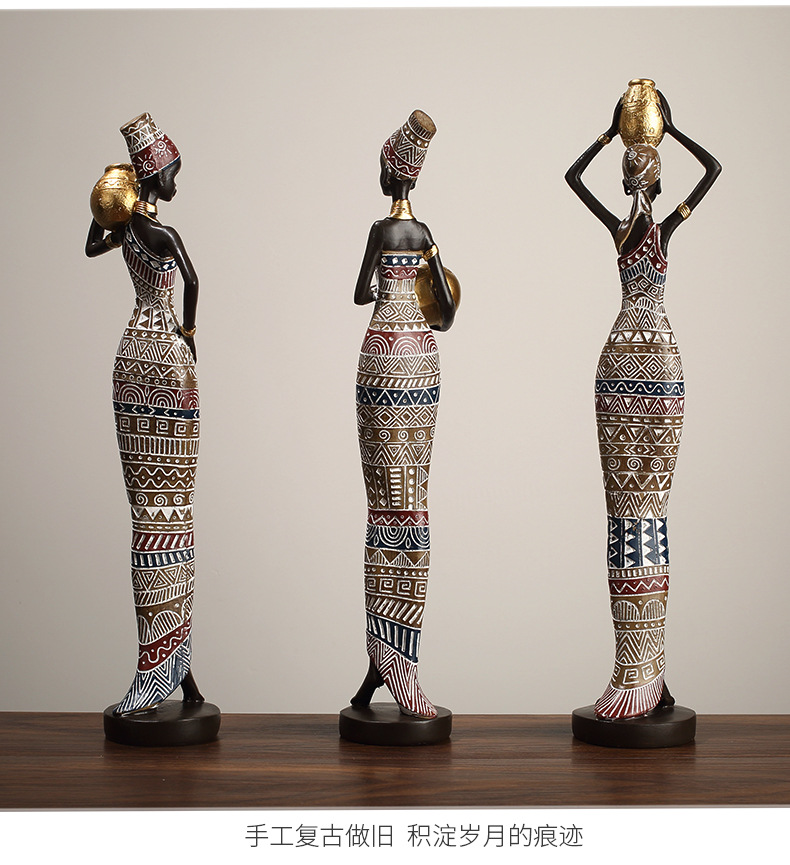 빈티지 아프리카 공예 이국적인 흑인 여성 그림 조각 장식품 홈 입구 거실 부드러운 장식스토어 가기