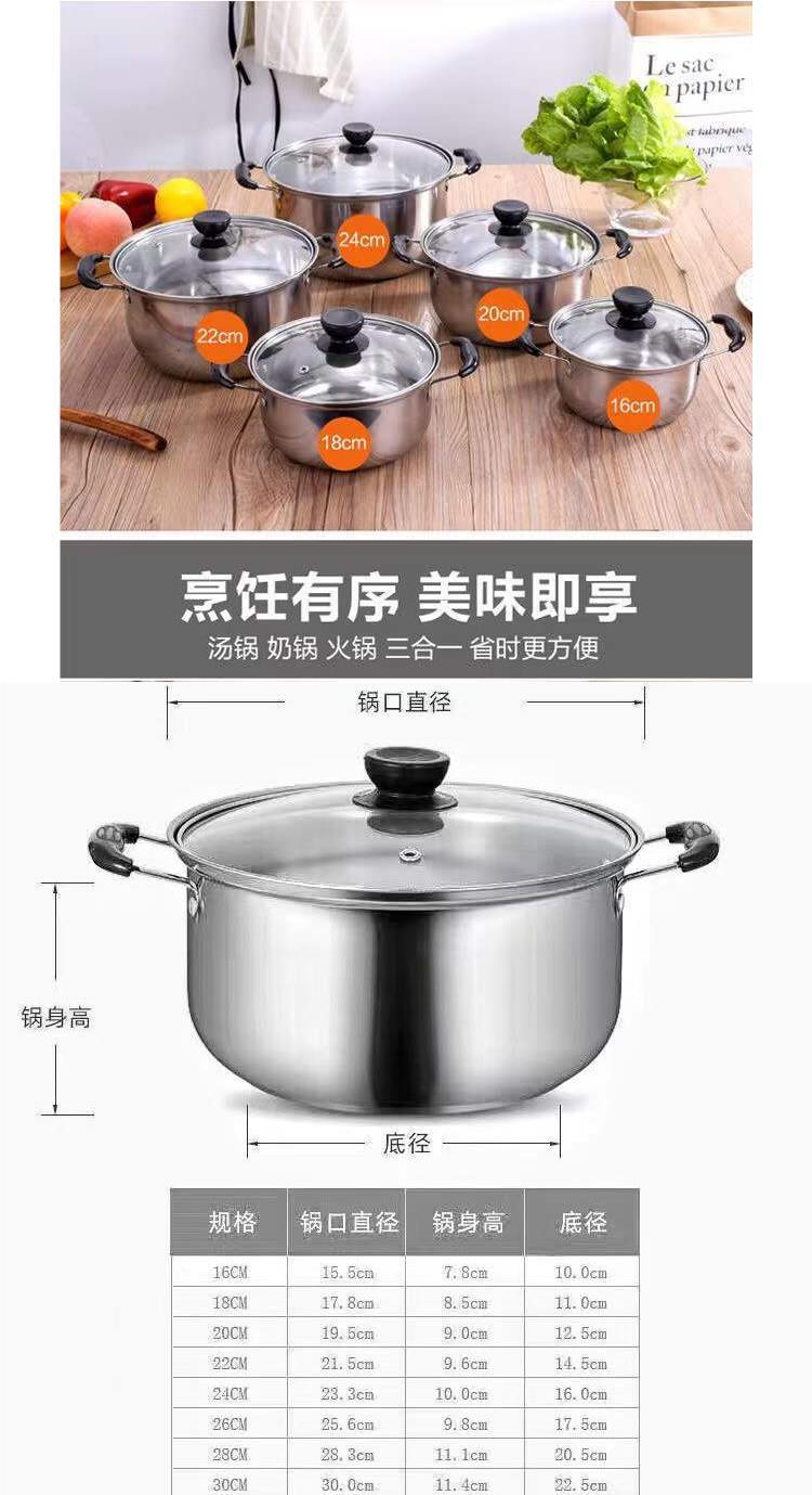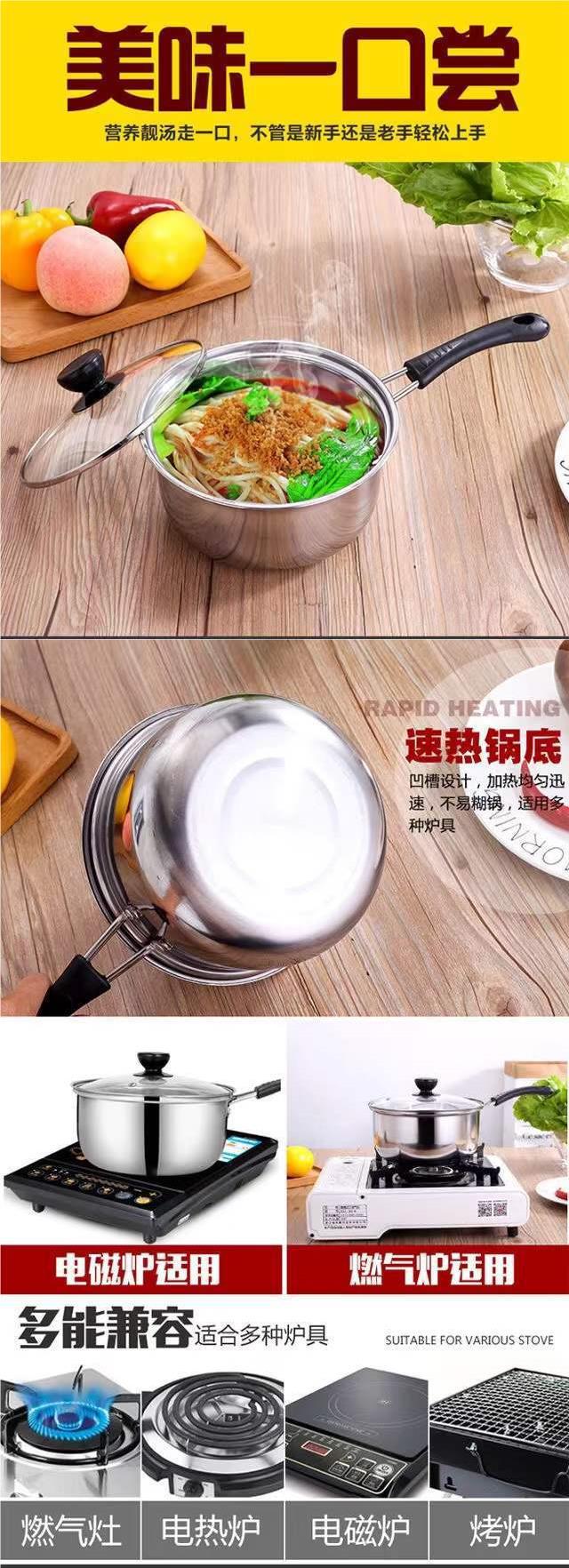 클리어런스 두꺼운 스테인레스 스틸 냄비 단일 회전 작은 냄비 두 배 귀 수프 냄비 냄비 우유 냄비 뜨거운 냄비 유도 쿠커 상업스토어 가기
