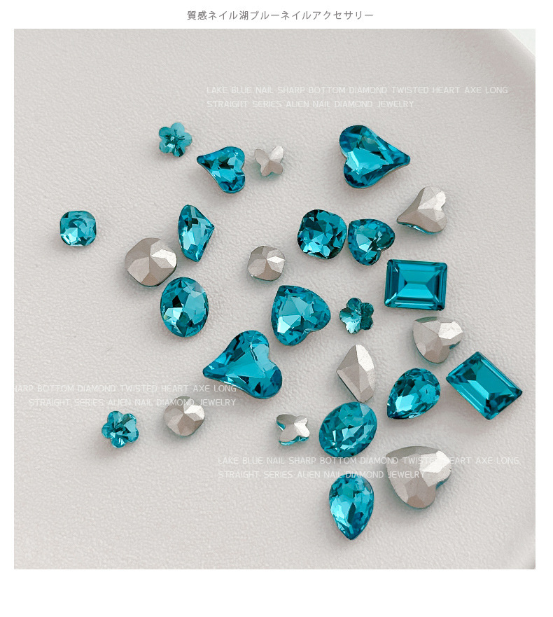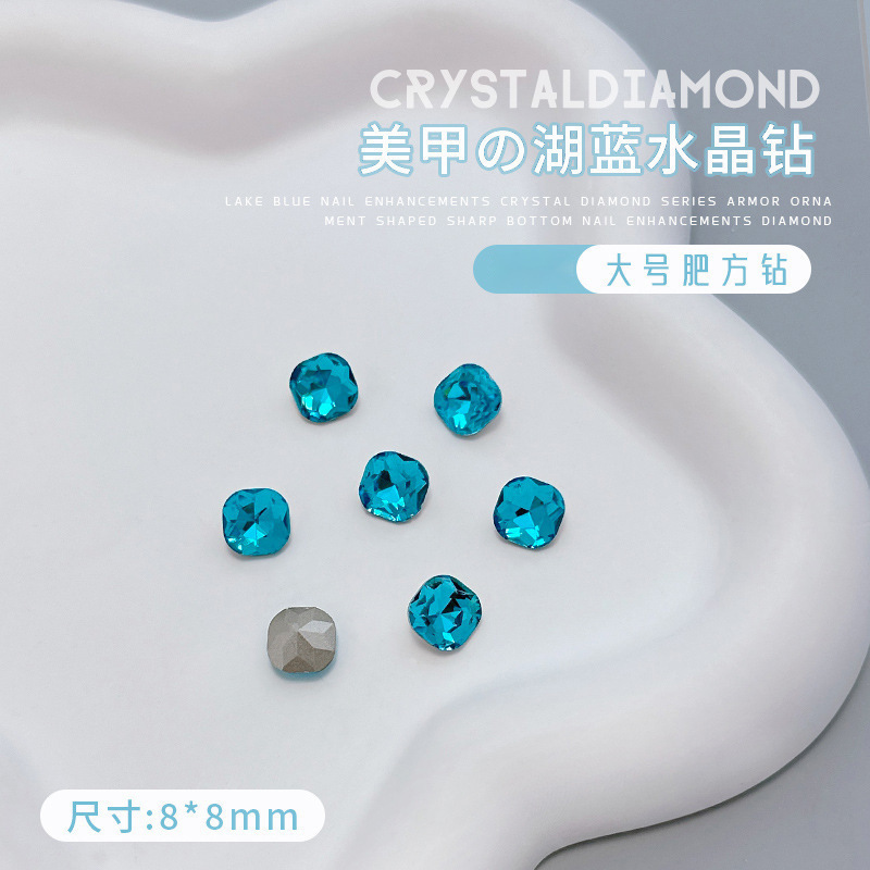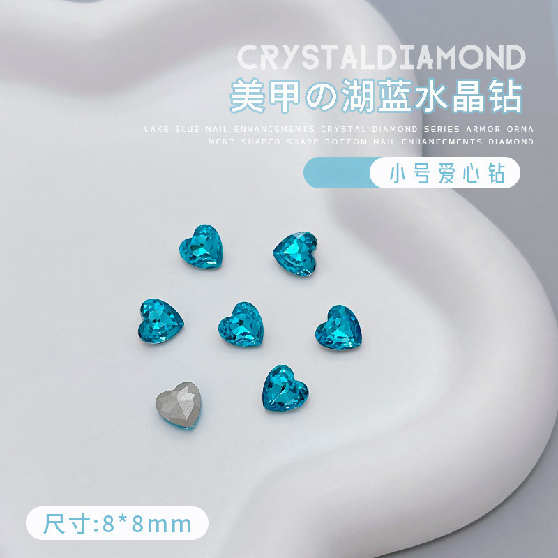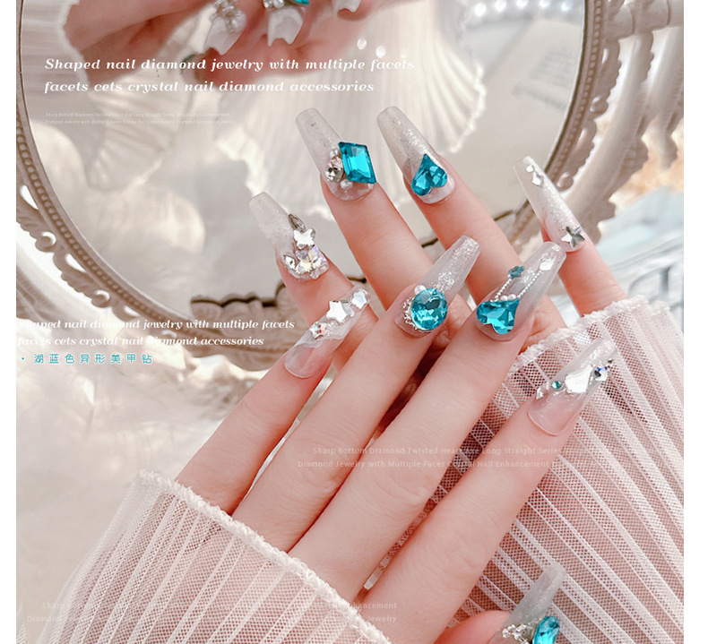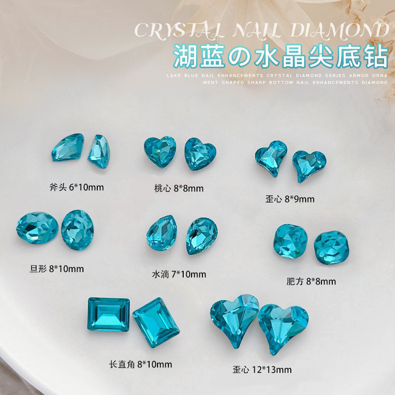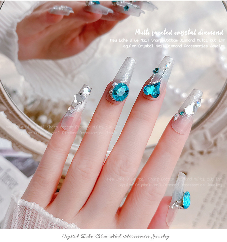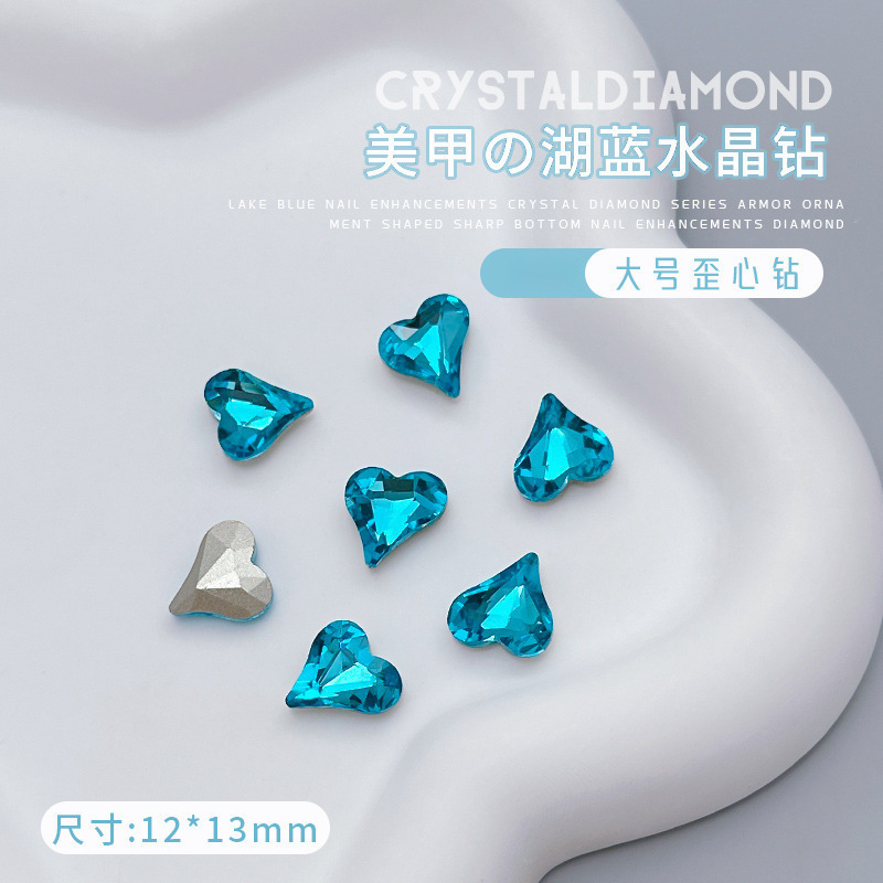 네일 레이크 블루 크리스탈 다이아몬드 쥬얼리 슈퍼 플래시 도끼 다이아몬드 팻 스퀘어 새로운 인터넷 레드 빅 비뚤어진 하트 네일 다이아몬드 장식