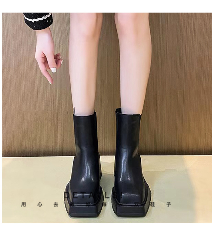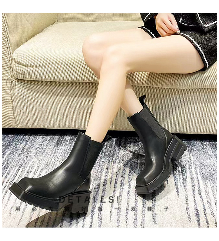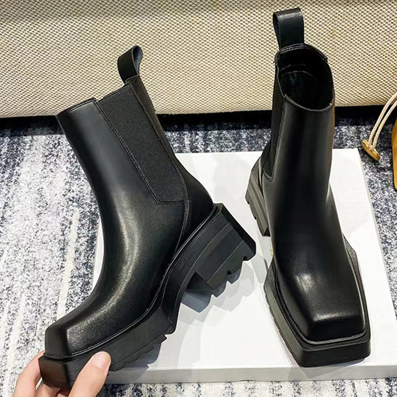 정품 가죽 작은 마틴 부츠 여성 영국 스타일 내부 높이 증가 연기 부츠 두꺼운 바닥 광장 발가락 시크 첼시 짧은 부츠스토어 가기