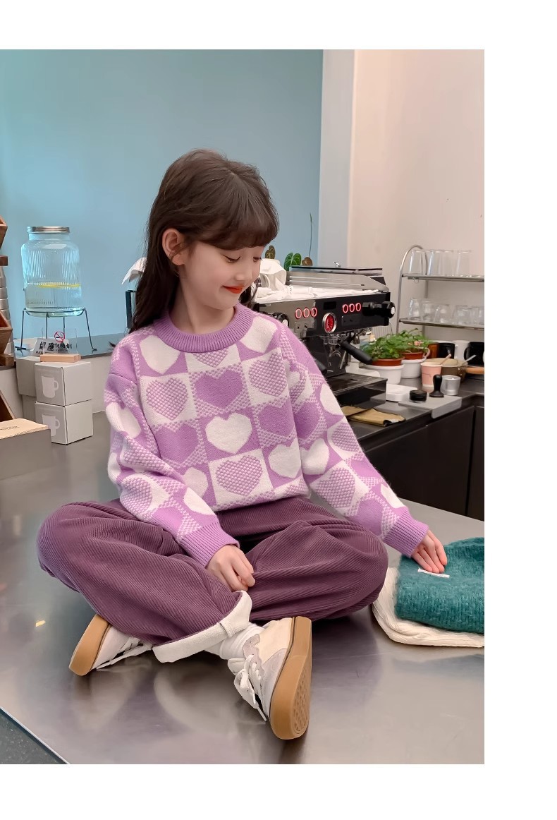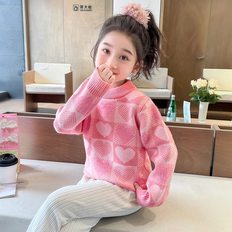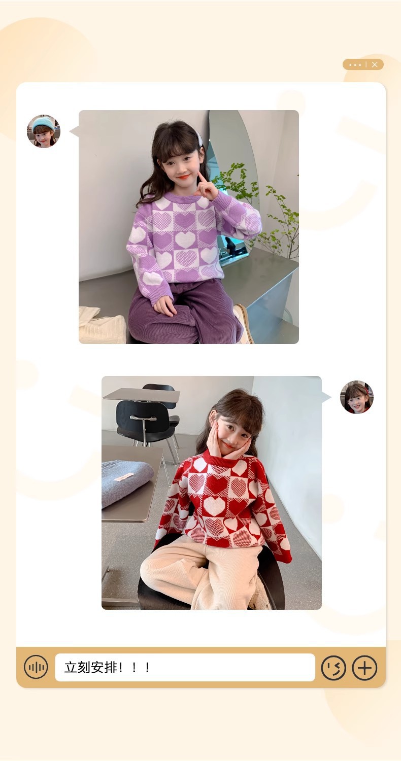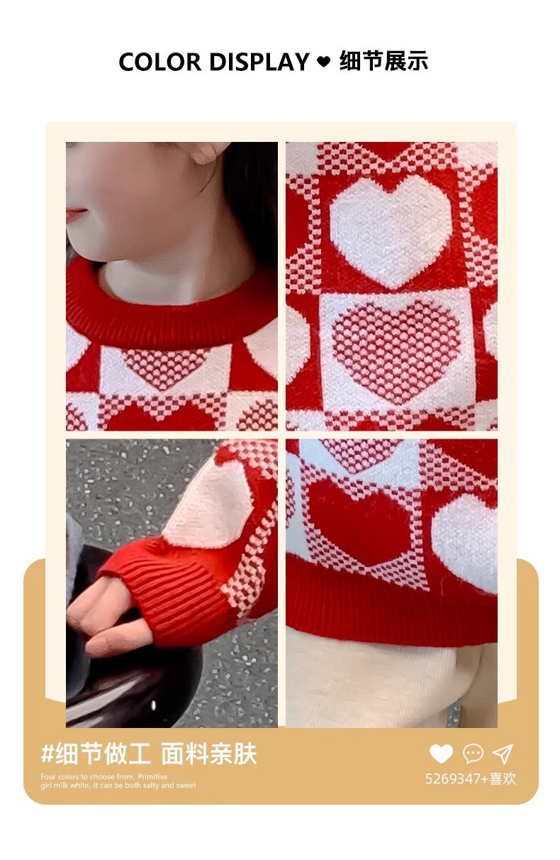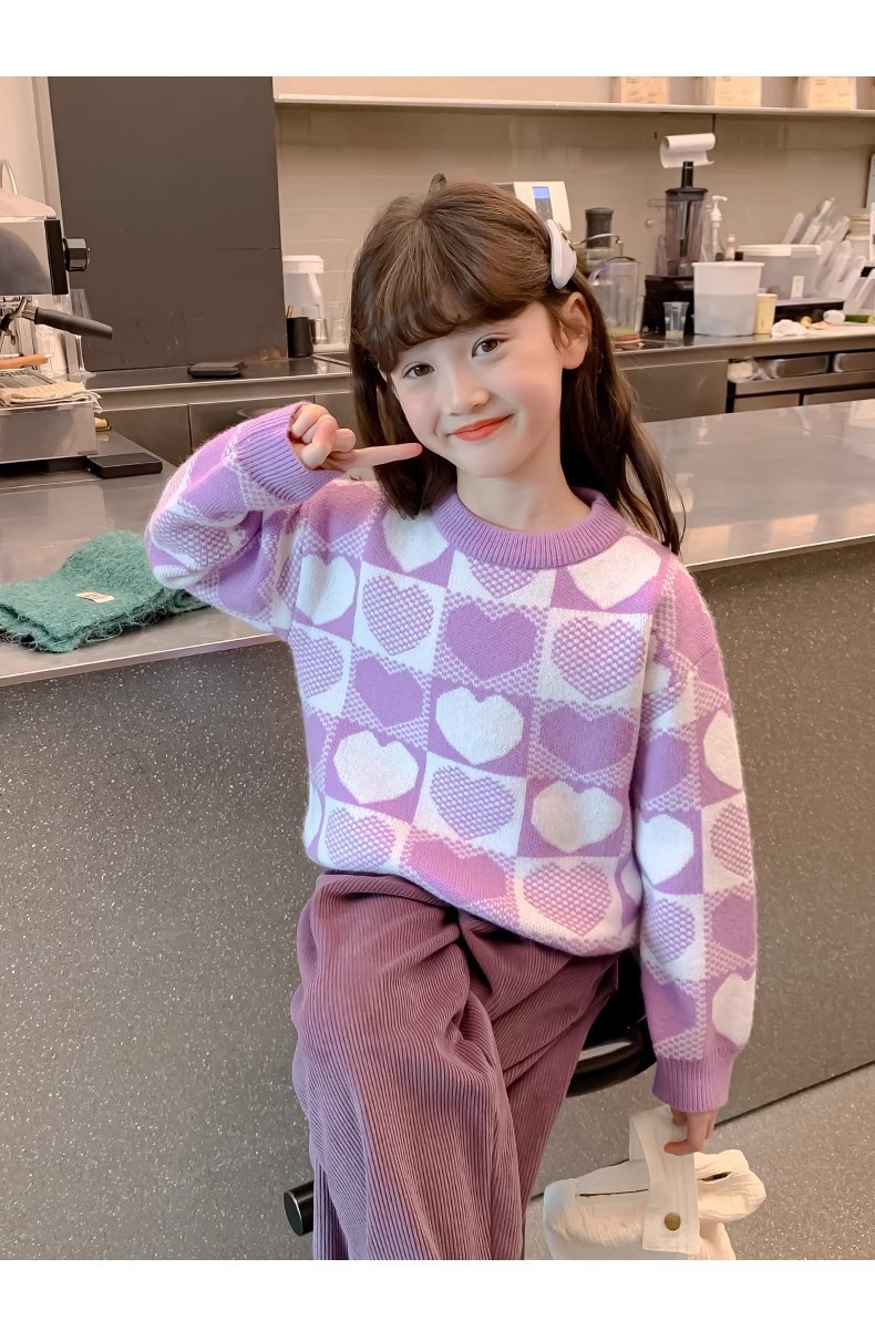 소녀 2024 새로운 스웨터 가을과 겨울 소녀 붉은 스웨터 어린이 풀오버 격자 무늬 러빙 백 스웨터스토어 가기