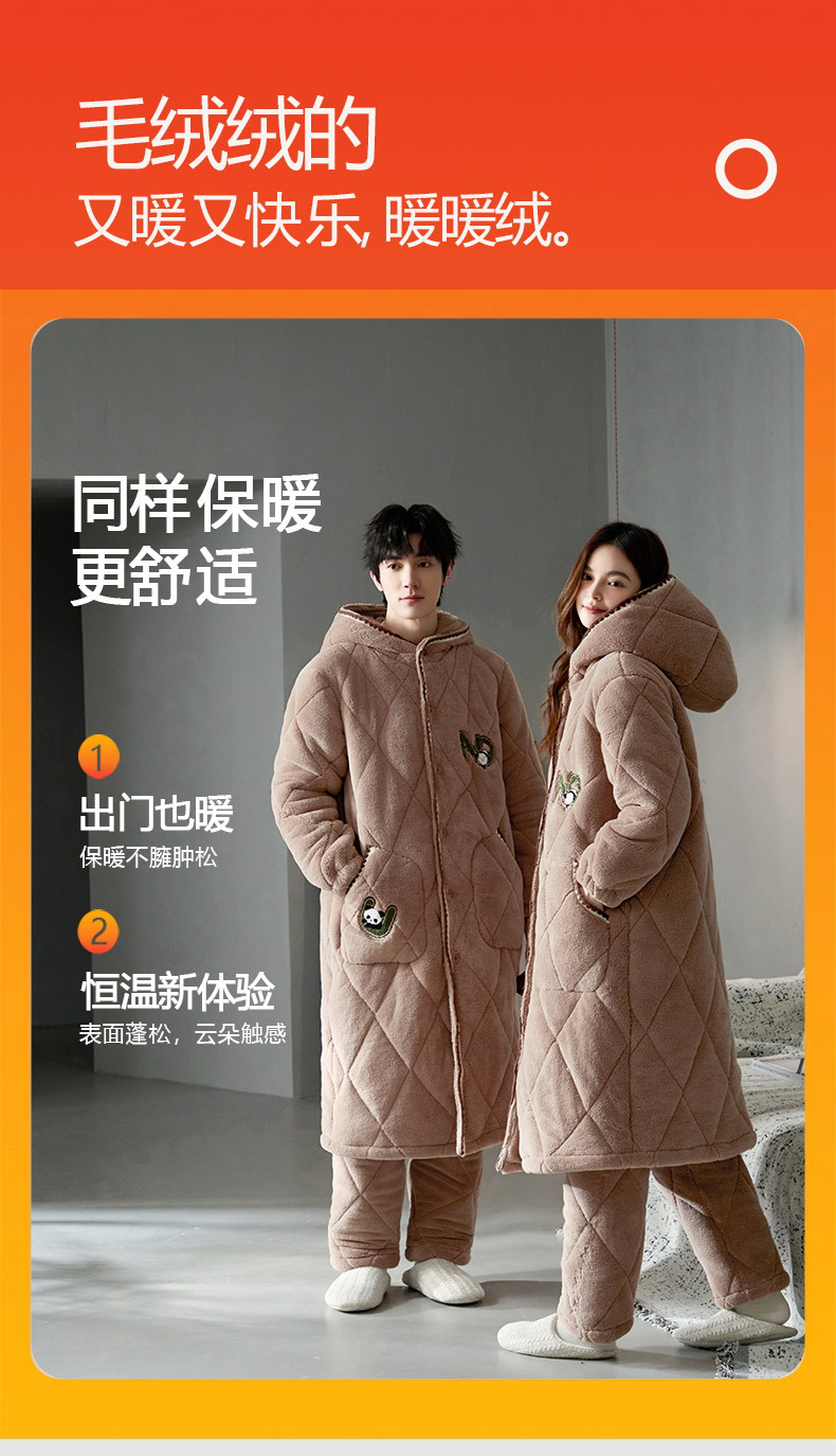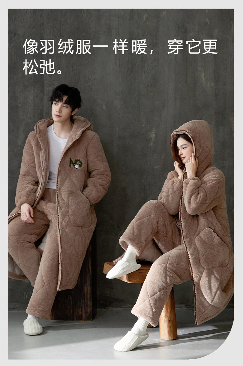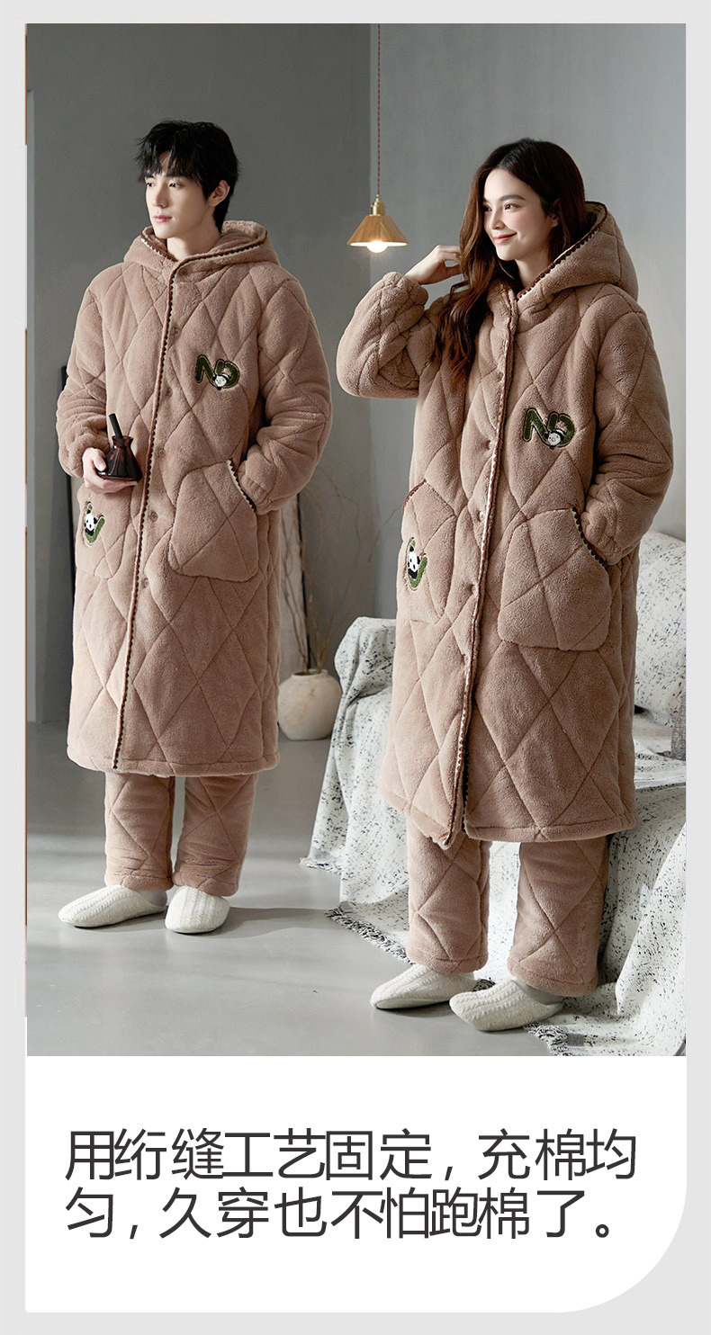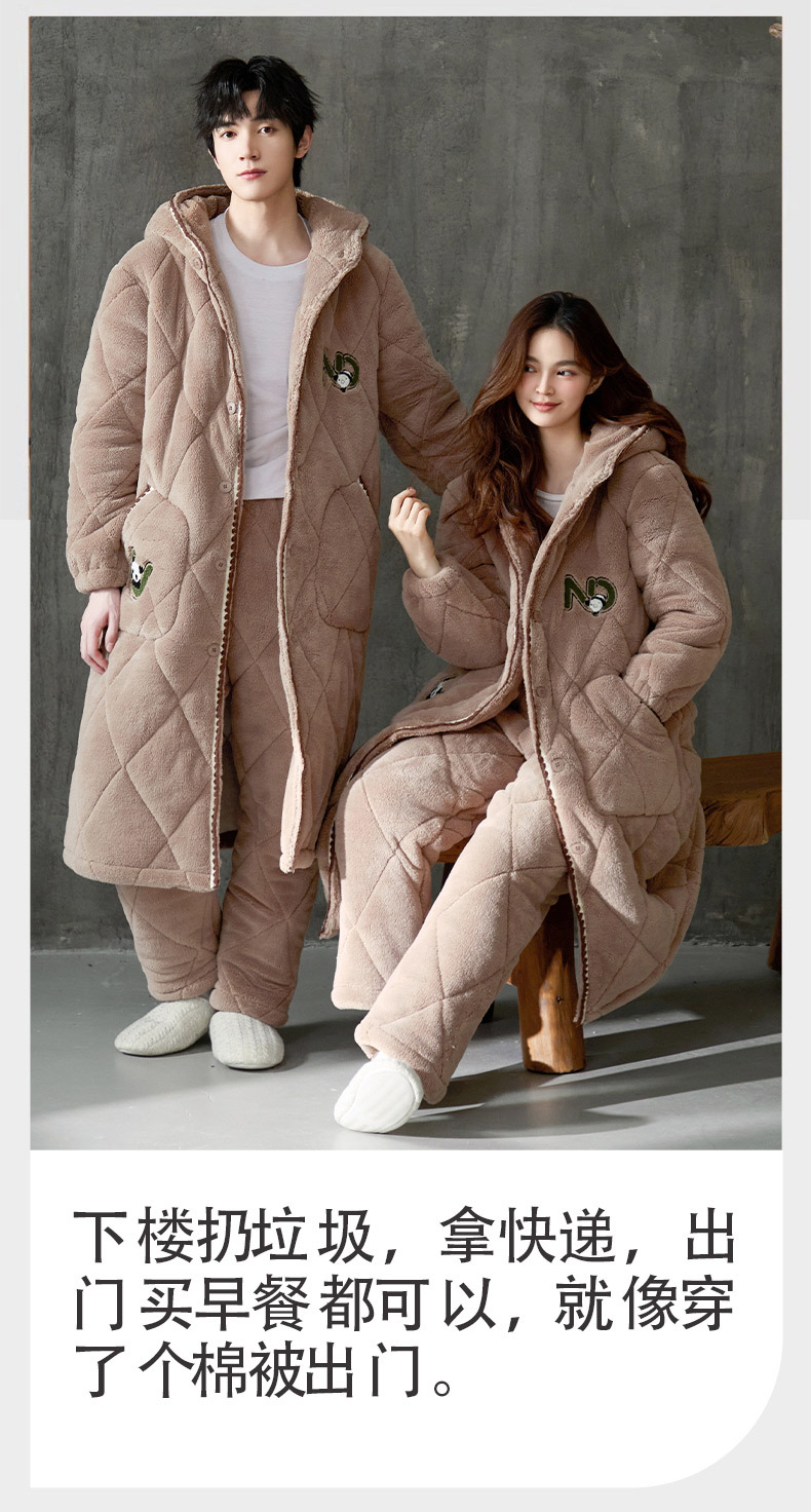 슈퍼 두꺼운 3 층 면 패딩 재킷 나이트가운 여성 커플 잠옷 가을과 겨울 남자 홈 의류 산호 양털 기모 두껍게 따뜻한스토어 가기