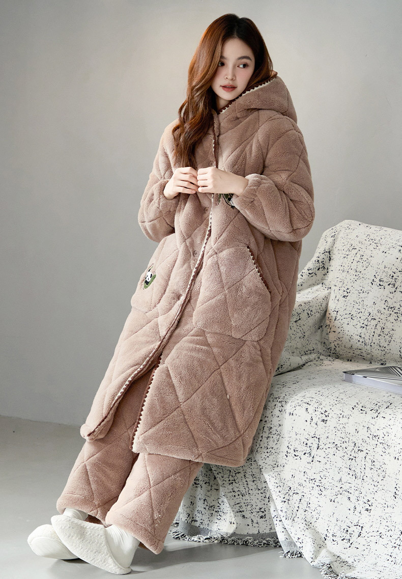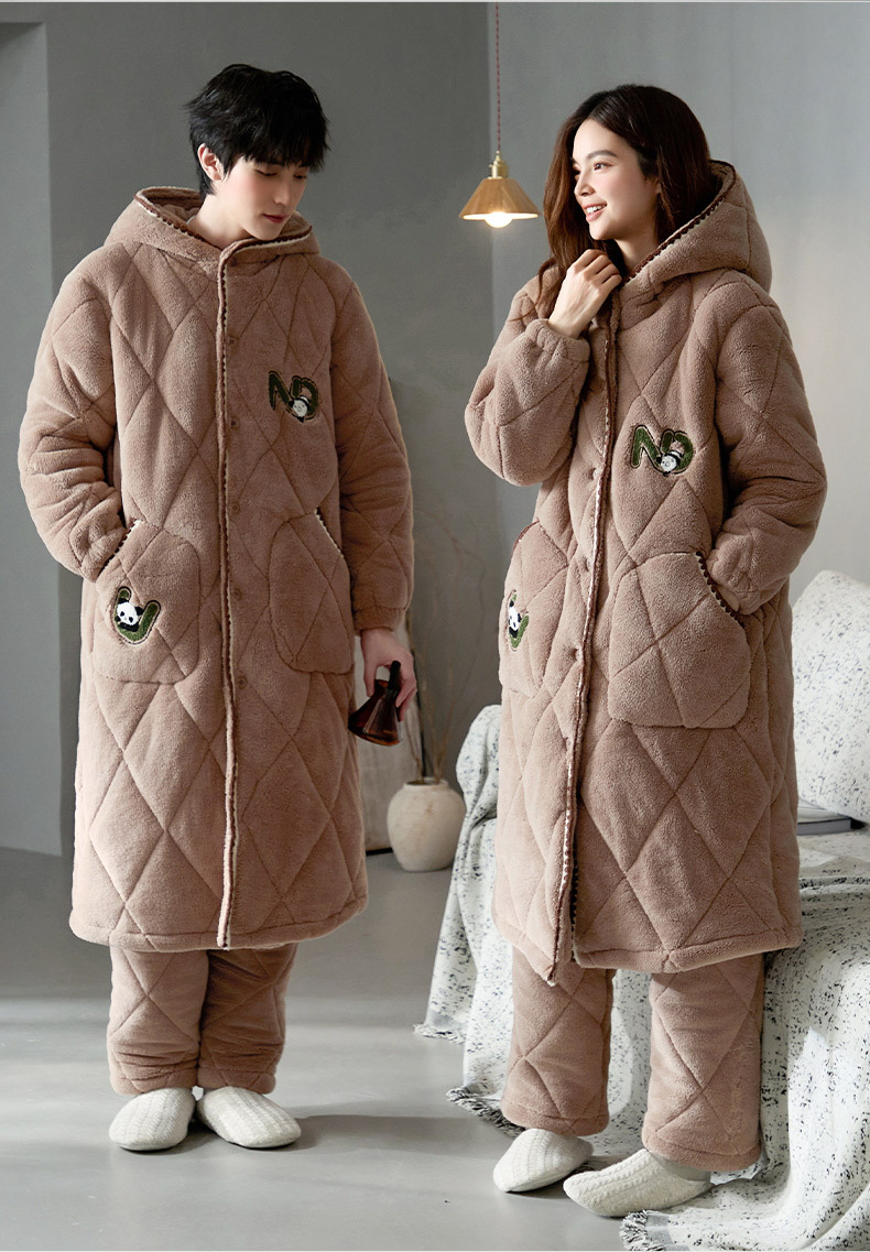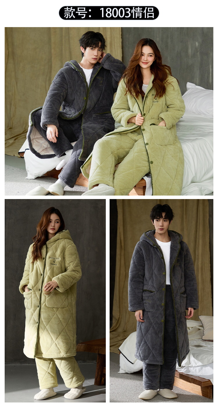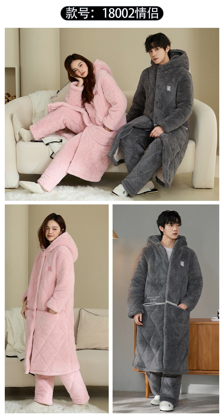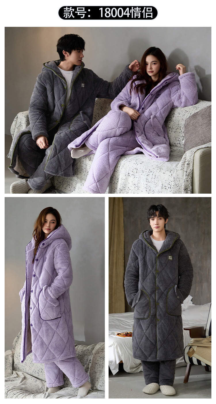 슈퍼 두꺼운 3 층 면 패딩 재킷 나이트가운 여성 커플 잠옷 가을과 겨울 남자 홈 의류 산호 양털 기모 두껍게 따뜻한