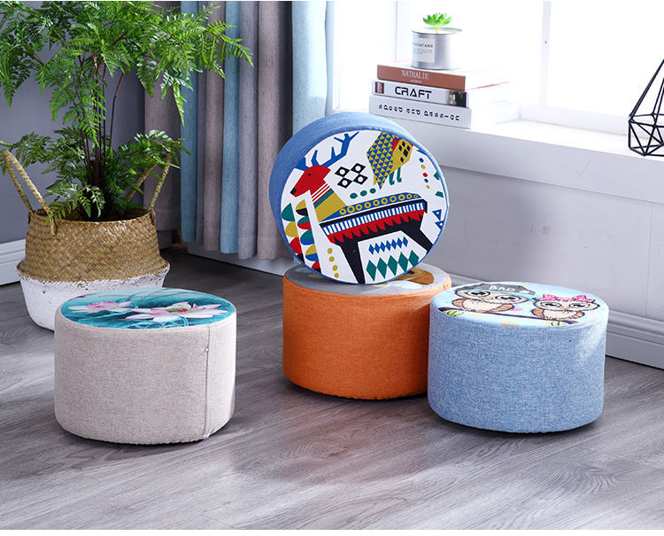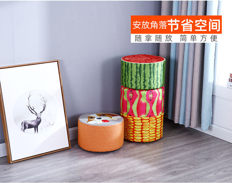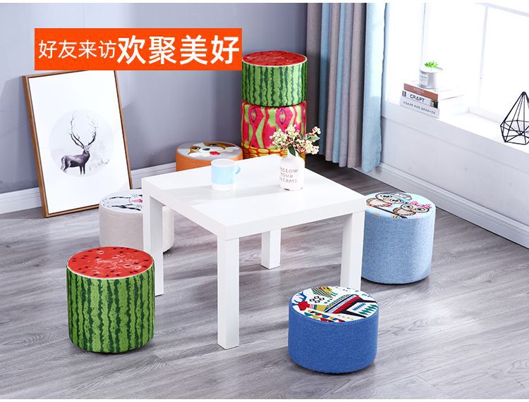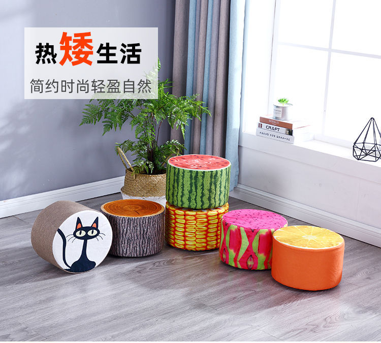 의자 게으른 창조적 인 솔리드 우드 가정용 벤치 작은 어린이 낮은 의자 인터넷 인기있는 거실 침실 신발 변경 원단 라운드 플랫 런스토어 가기