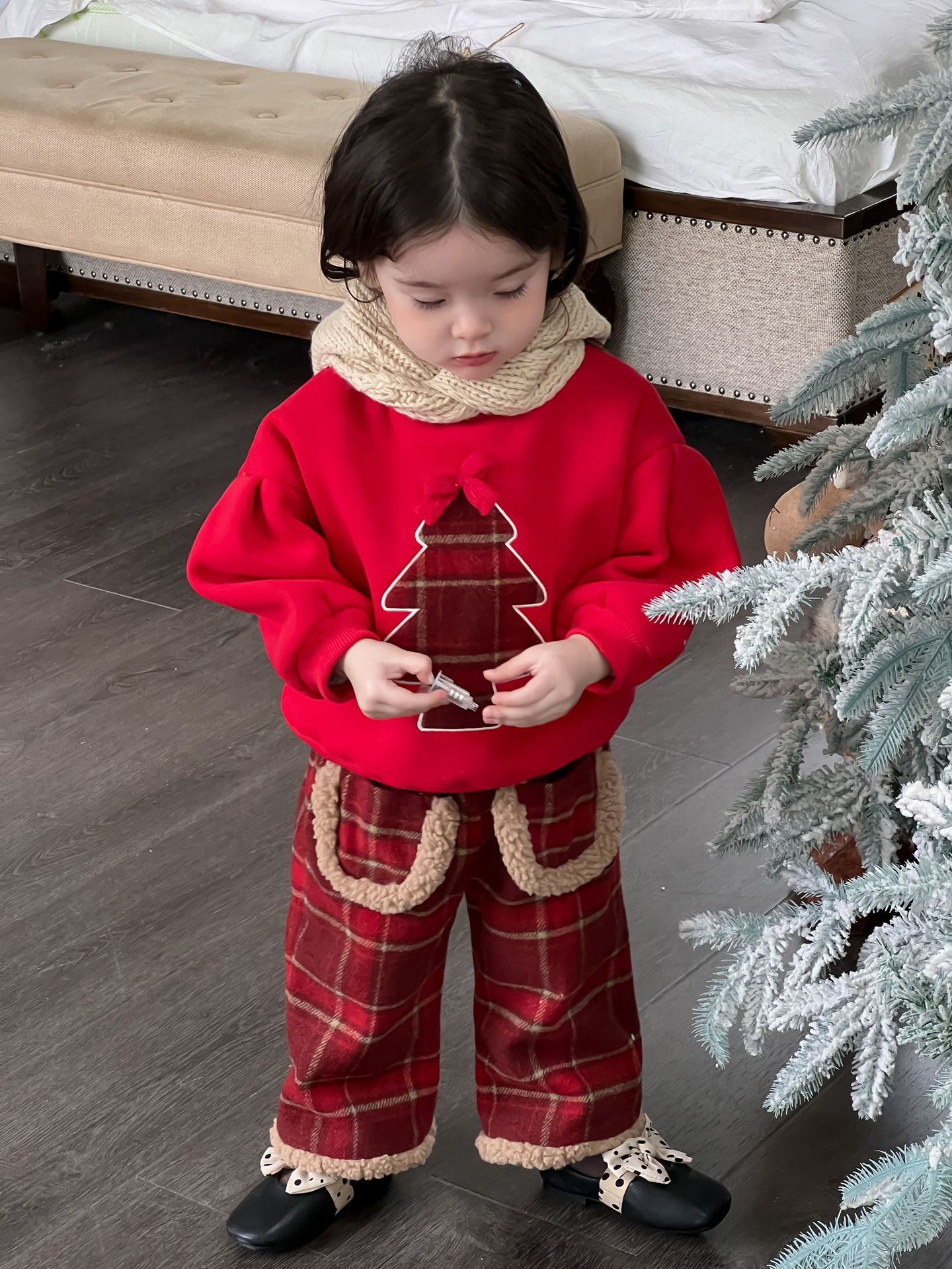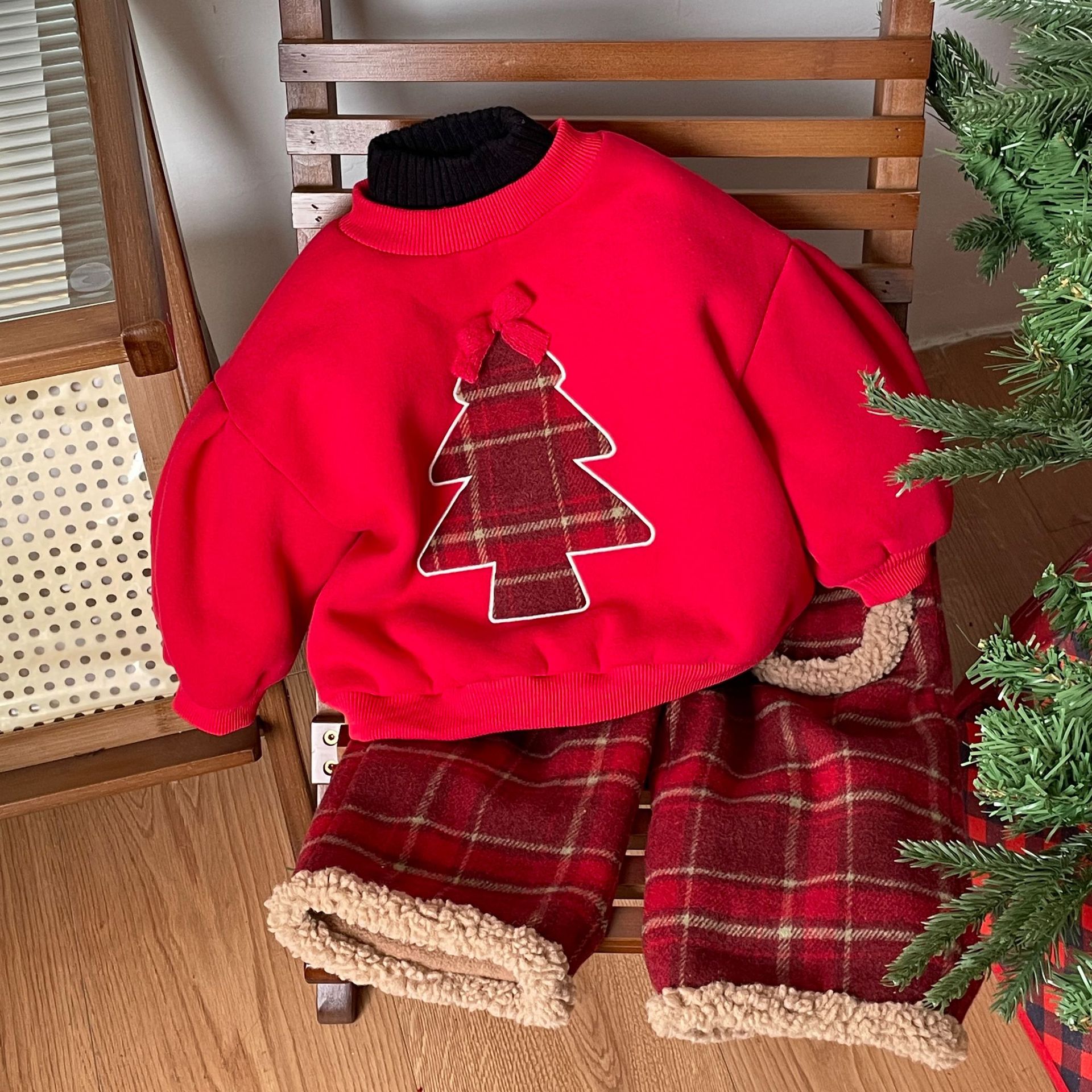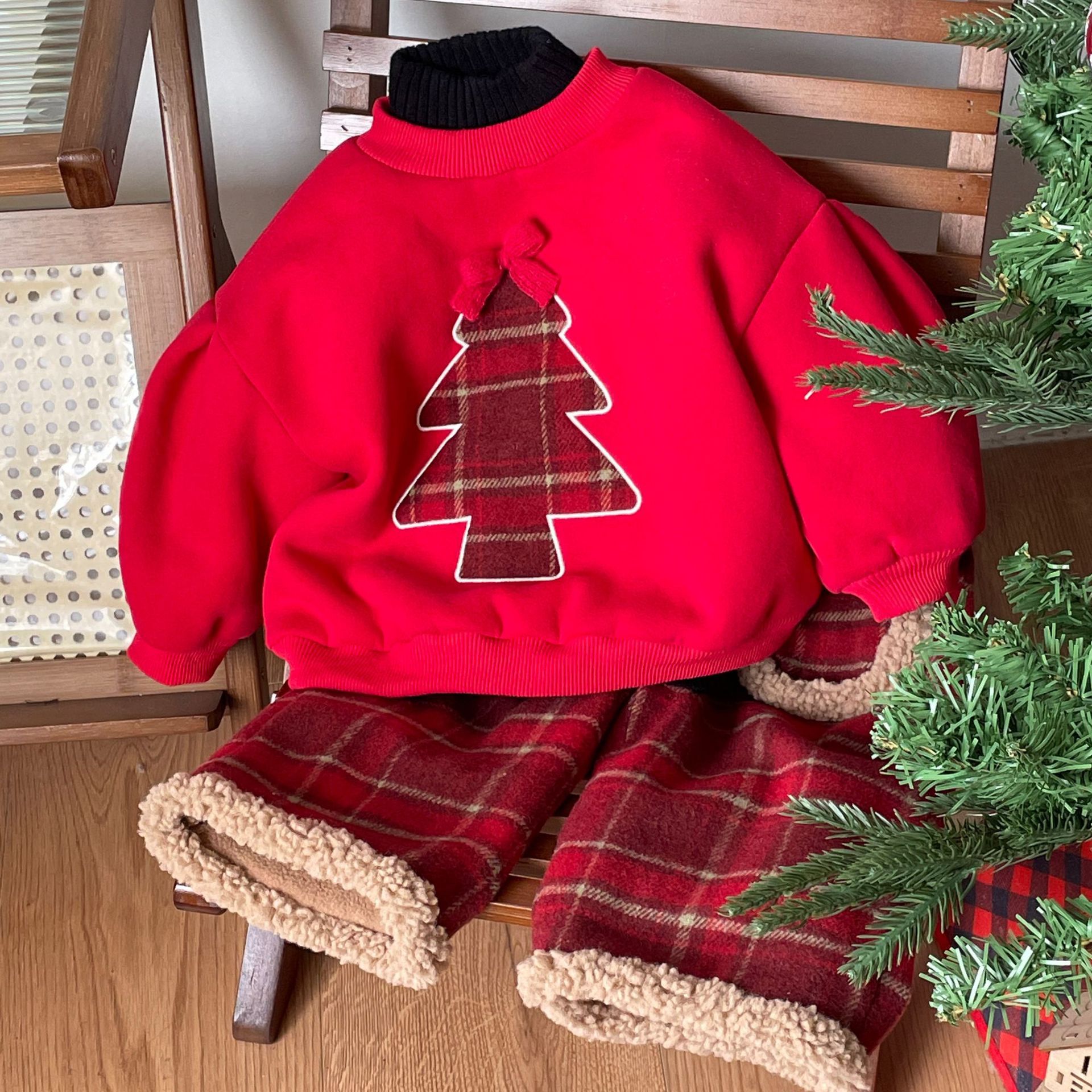 크리스마스 여아 축제복, 아기 여아 설날 스웨트셔츠, 플리스 안감 체크무늬 바지스토어 가기