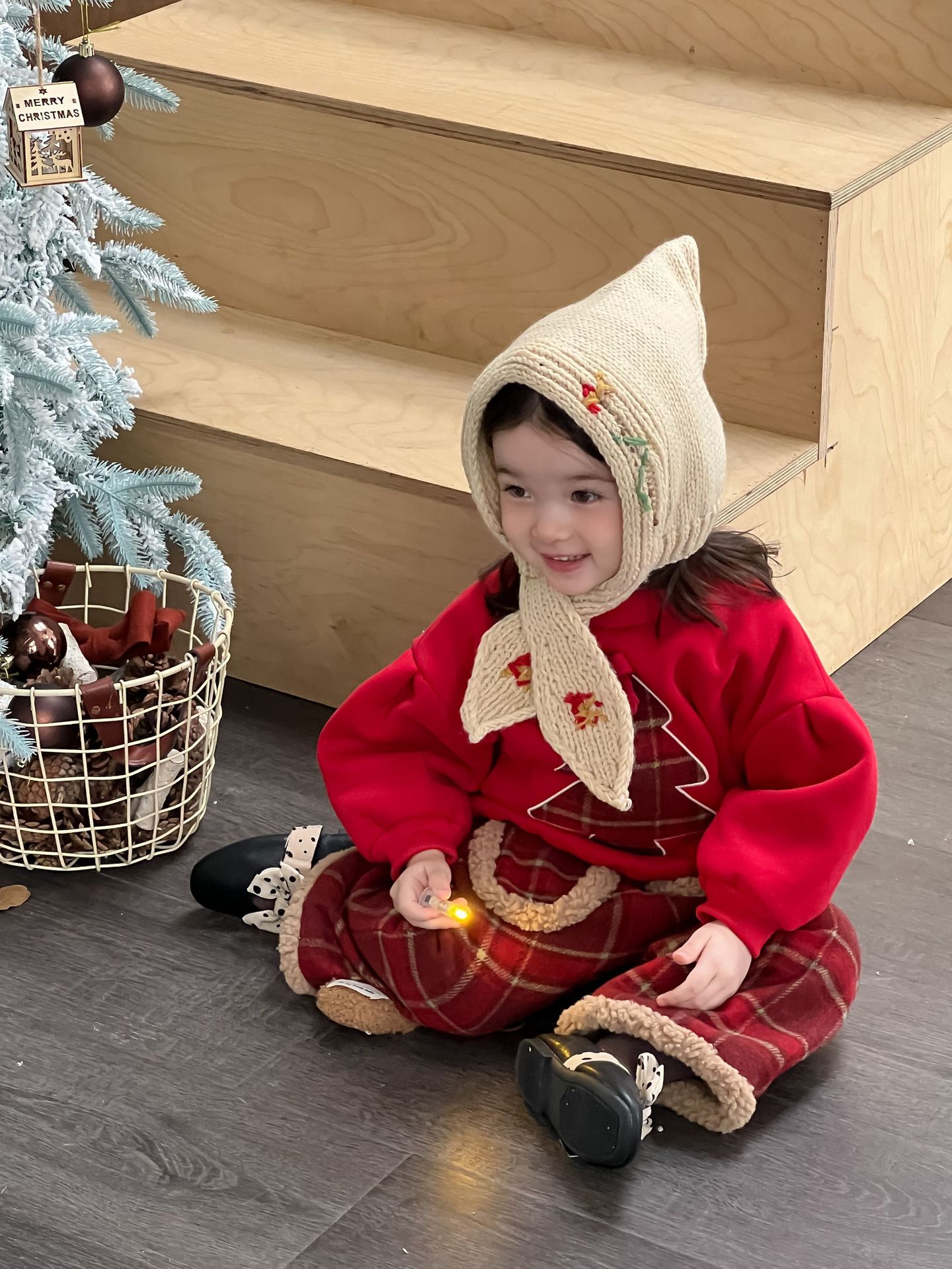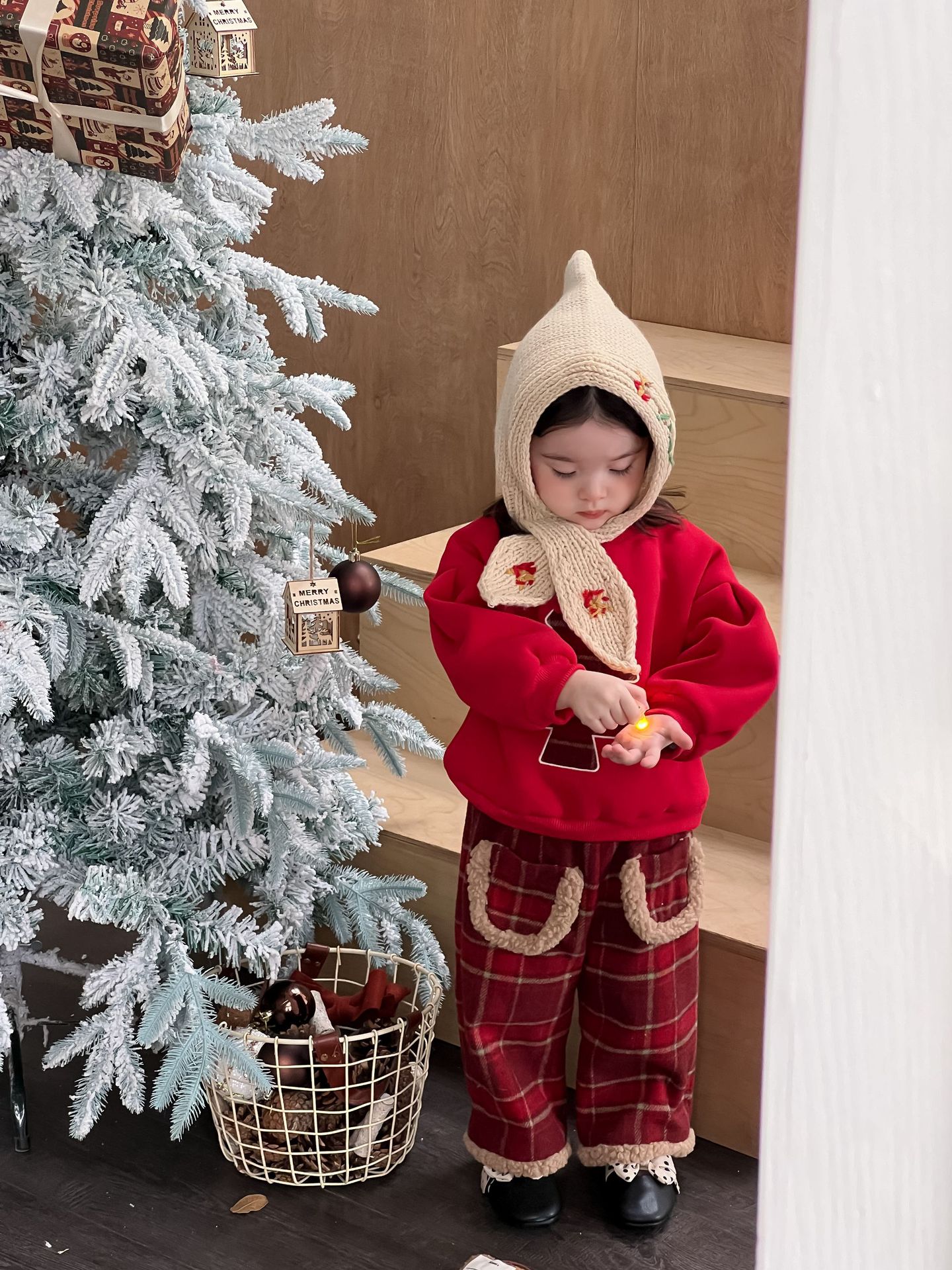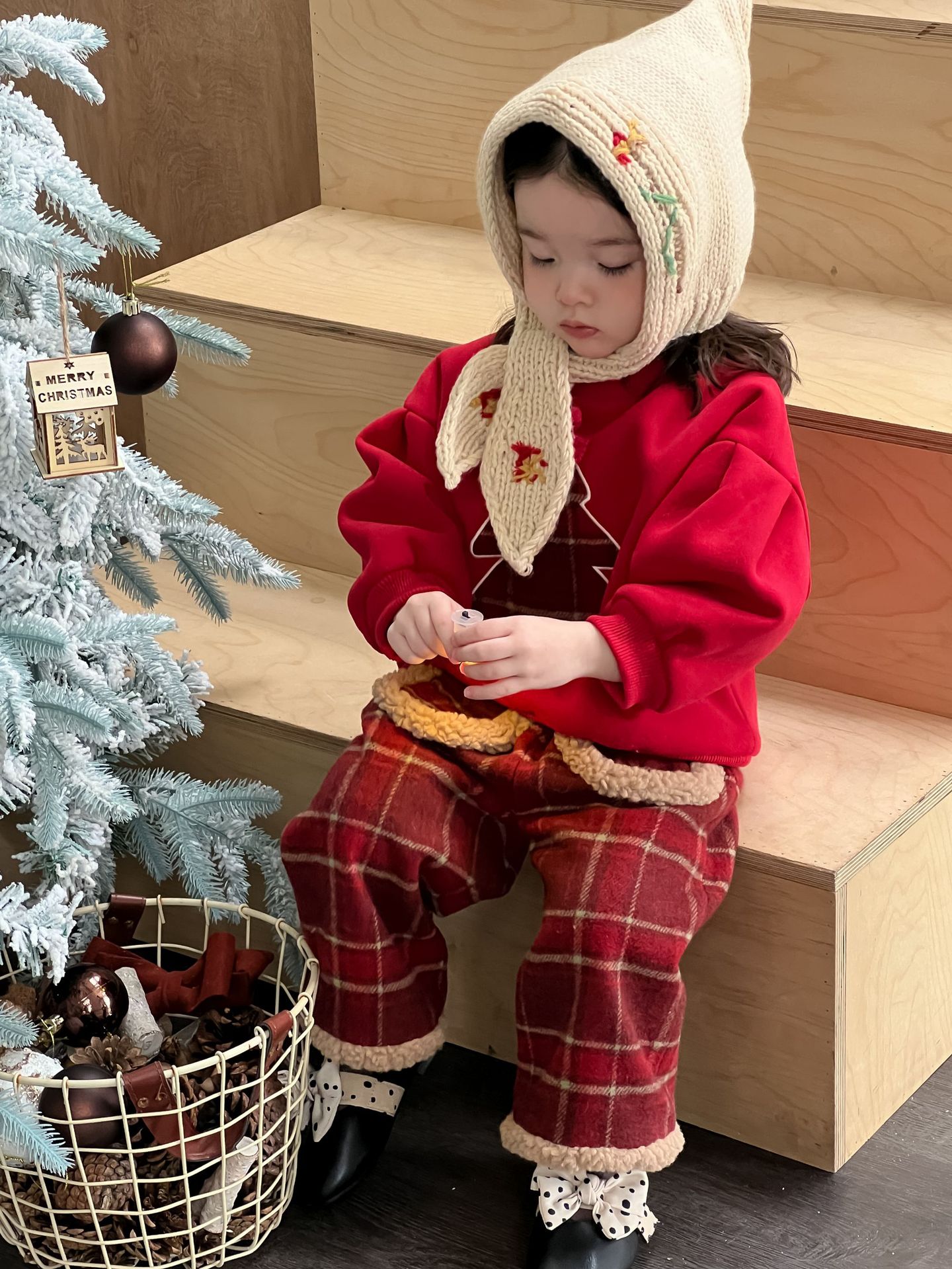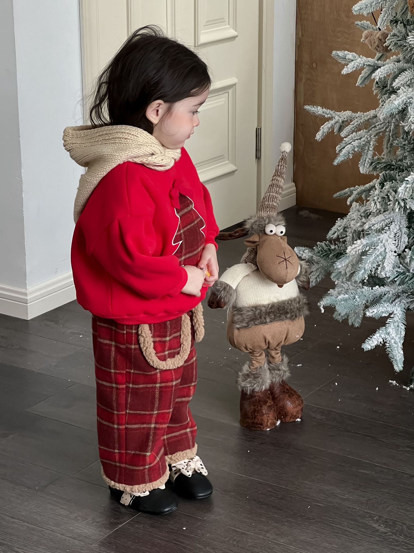 크리스마스 여아 축제복, 아기 여아 설날 스웨트셔츠, 플리스 안감 체크무늬 바지스토어 가기