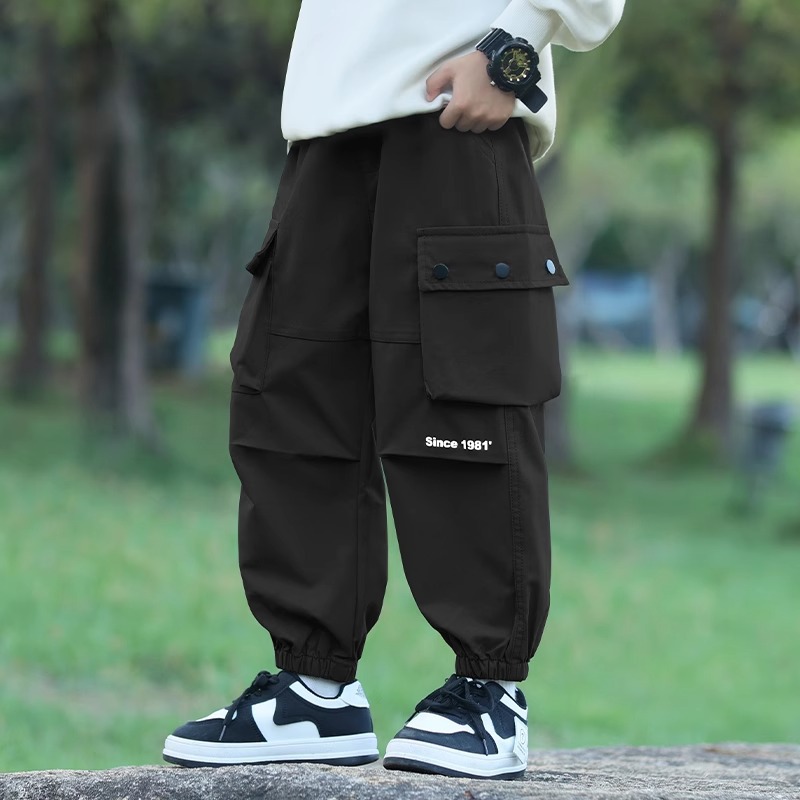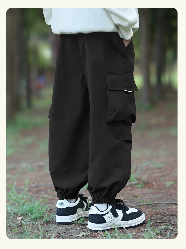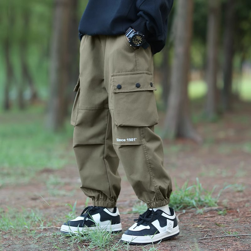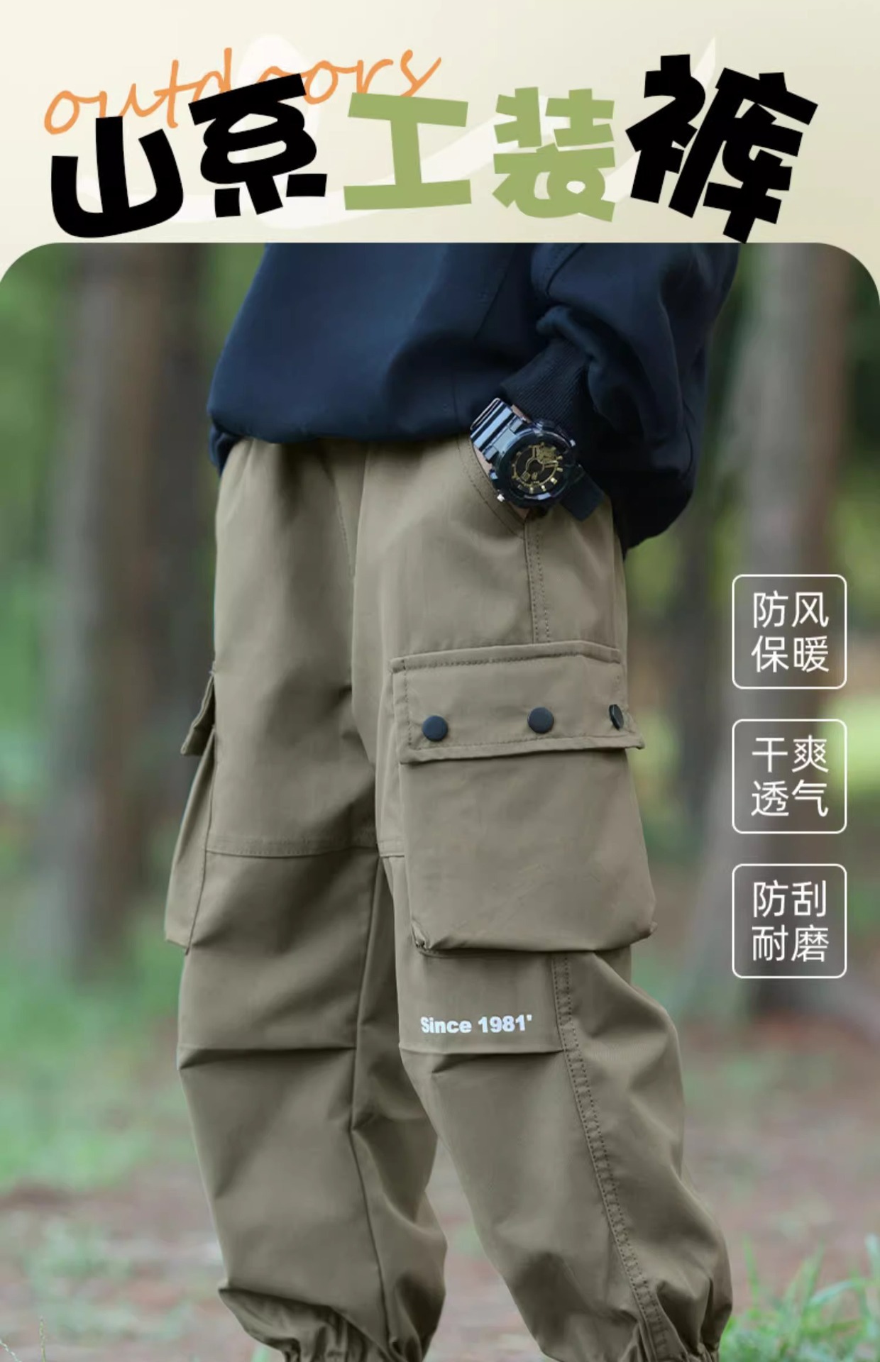 소년 기모 캐주얼 바지 2024 새로운 대형 아동복 바지 가을과 겨울 방수 스포츠 충전 긴 바지
