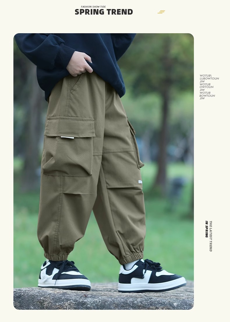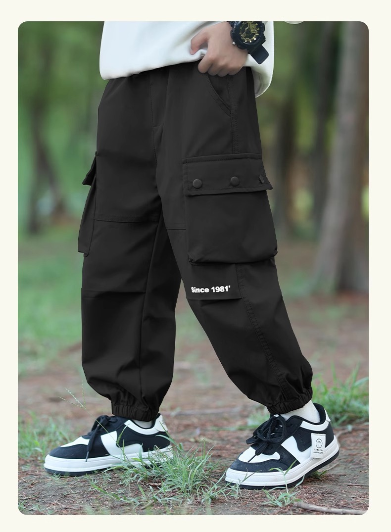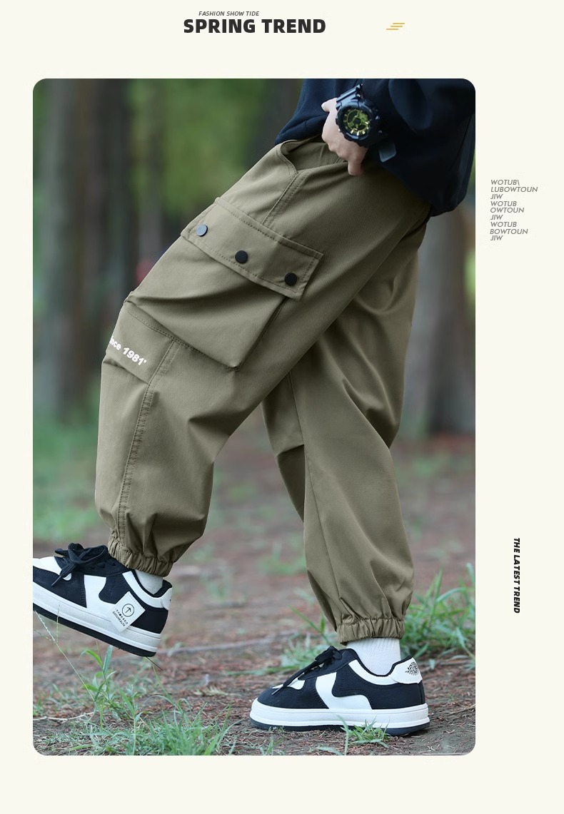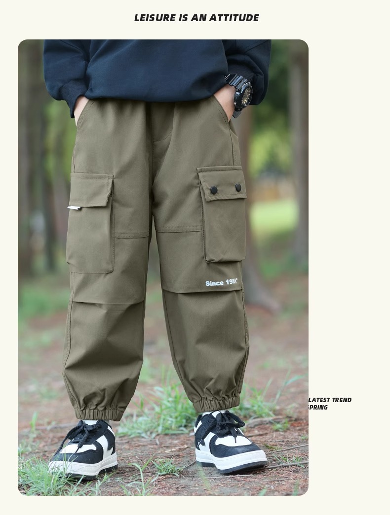 소년 기모 캐주얼 바지 2024 새로운 대형 아동복 바지 가을과 겨울 방수 스포츠 충전 긴 바지