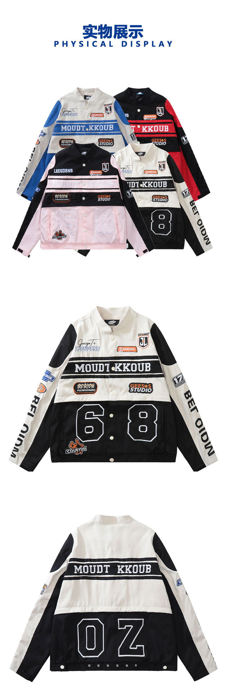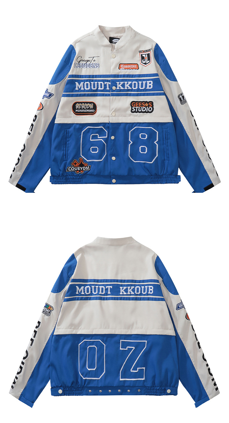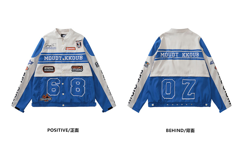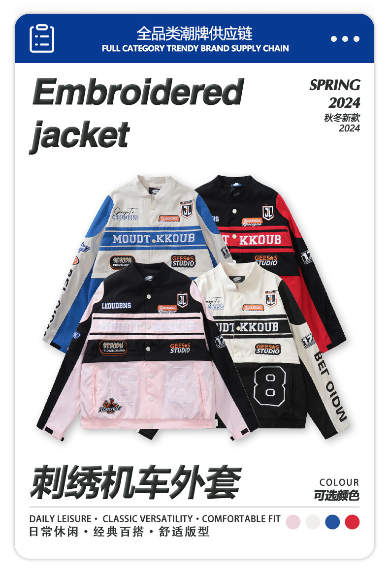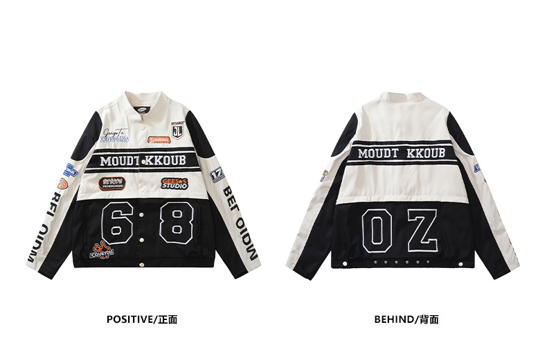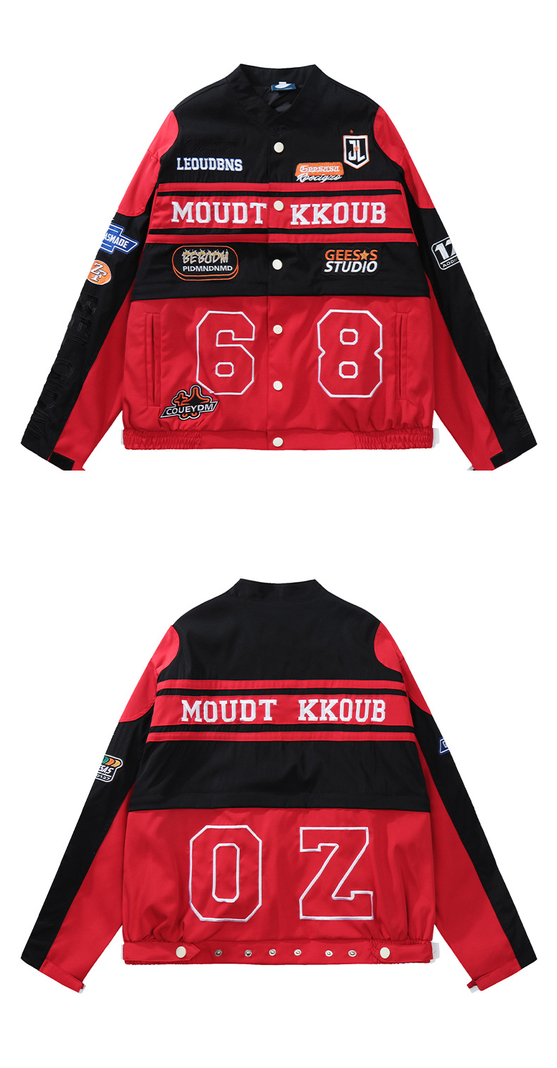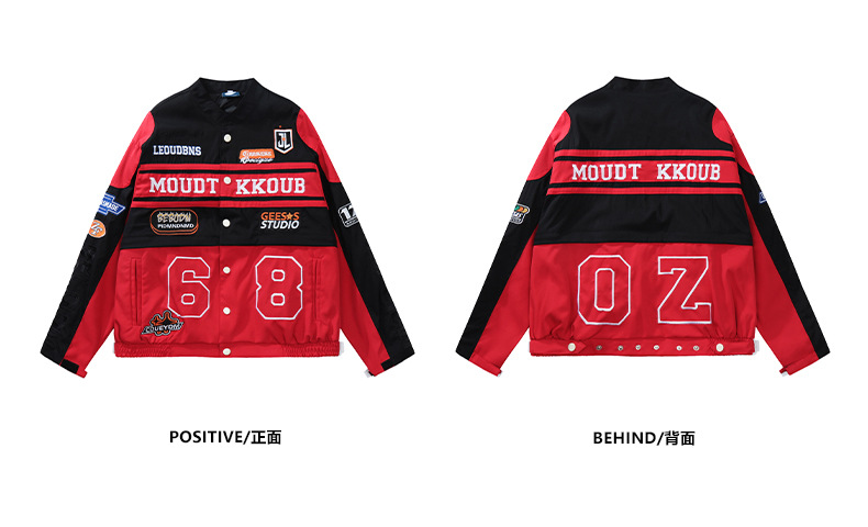 트렌디한 디자인의 탈부착 가능한 커플용 바이커 재킷 남성용 봄 가을 레드 아메리칸 레이싱 스타일 루즈핏 여성용 재킷스토어 가기