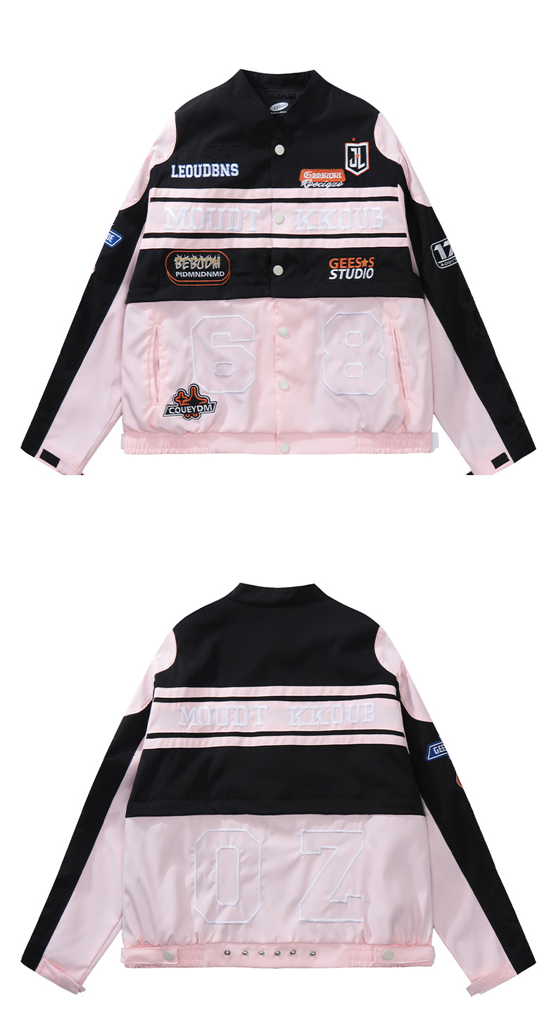 트렌디한 디자인의 탈부착 가능한 커플용 바이커 재킷 남성용 봄 가을 레드 아메리칸 레이싱 스타일 루즈핏 여성용 재킷