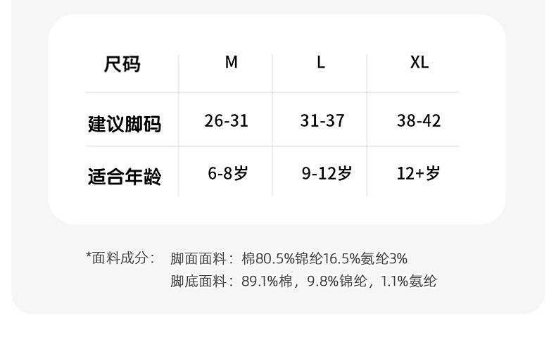 • 9-12세 (권장 발 길이 20-22CM, 신발 사이즈 31-37) 뼈가 없고 자극적이지 않음