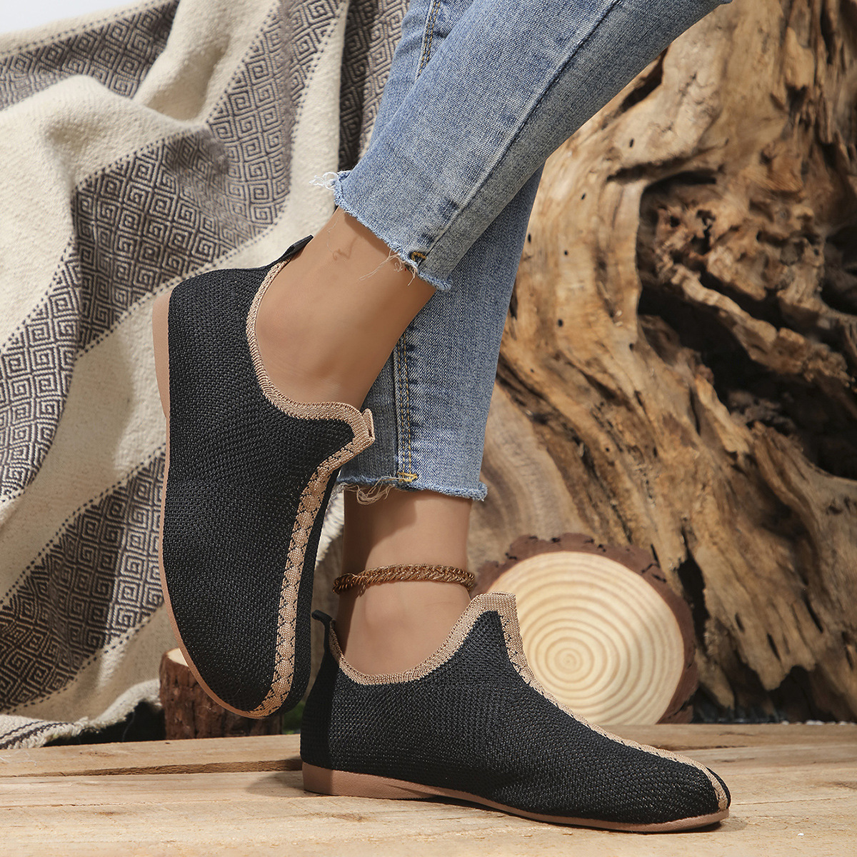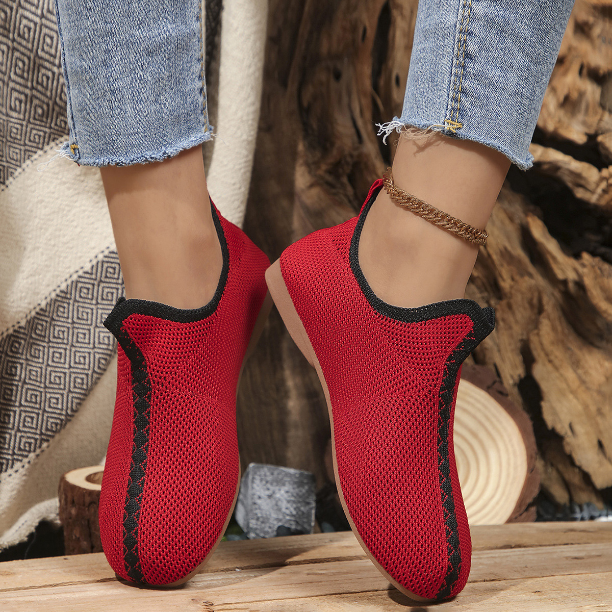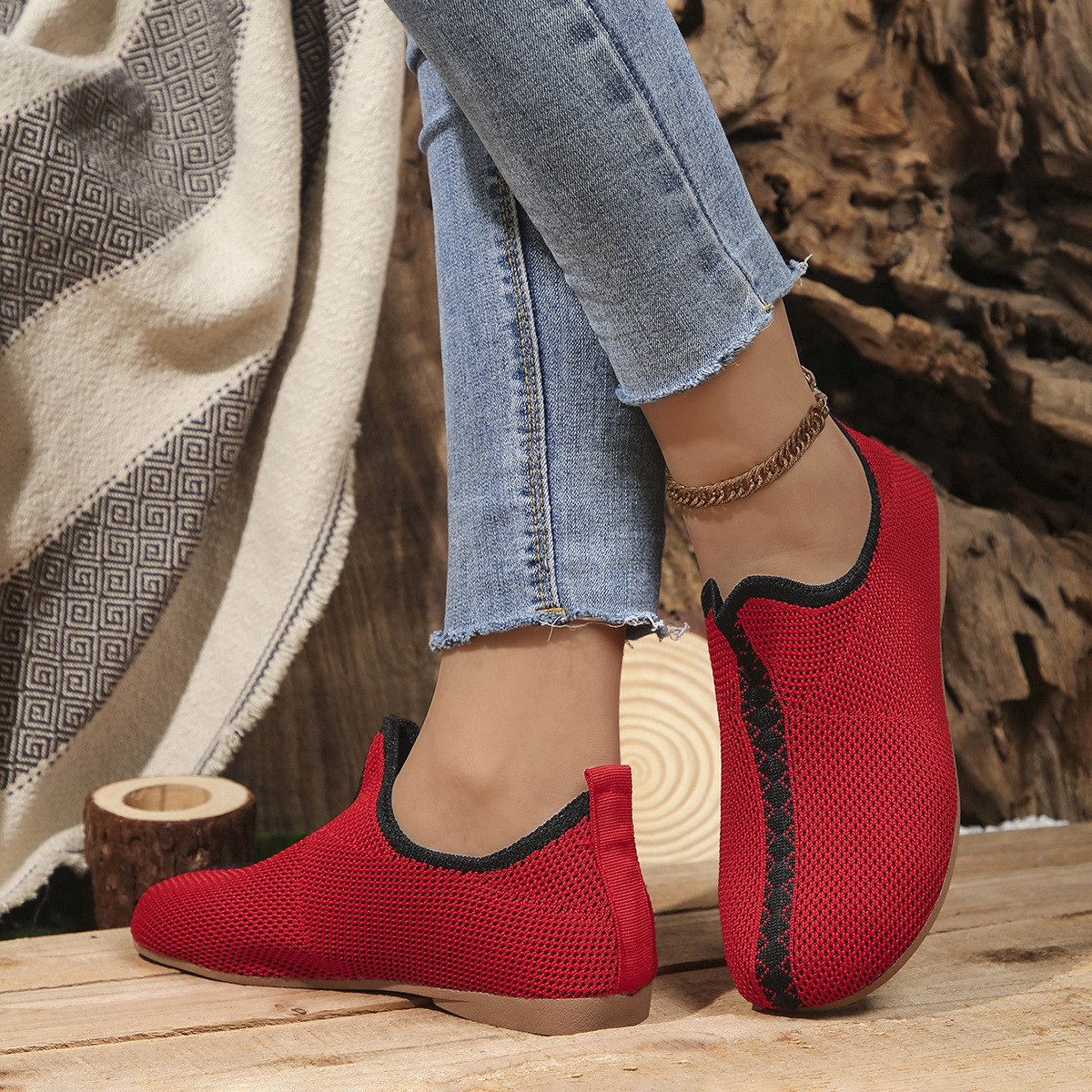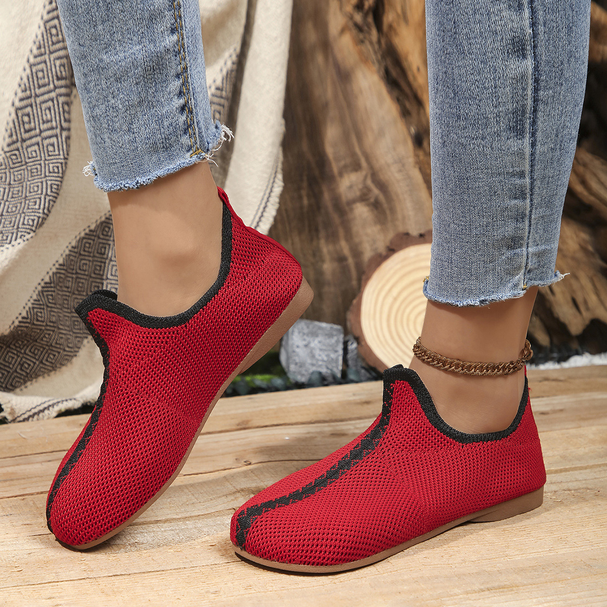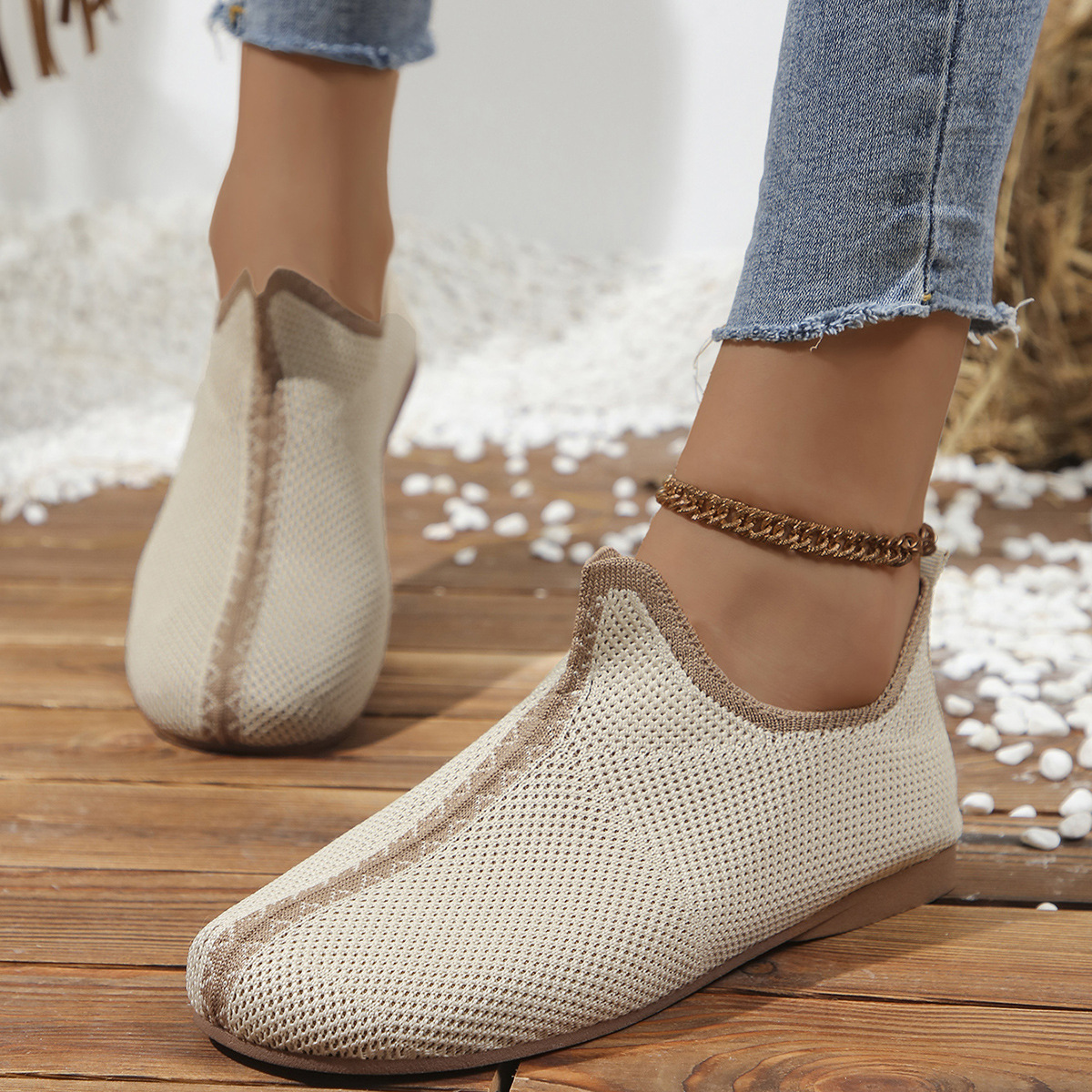 국경 간 새로운 색상 매칭 라운드 헤드 플라잉 짠 플랫 슈즈 여성 캐주얼 통기성 할로우 아웃 니트 게으른 작업 신발 이베이스토어 가기