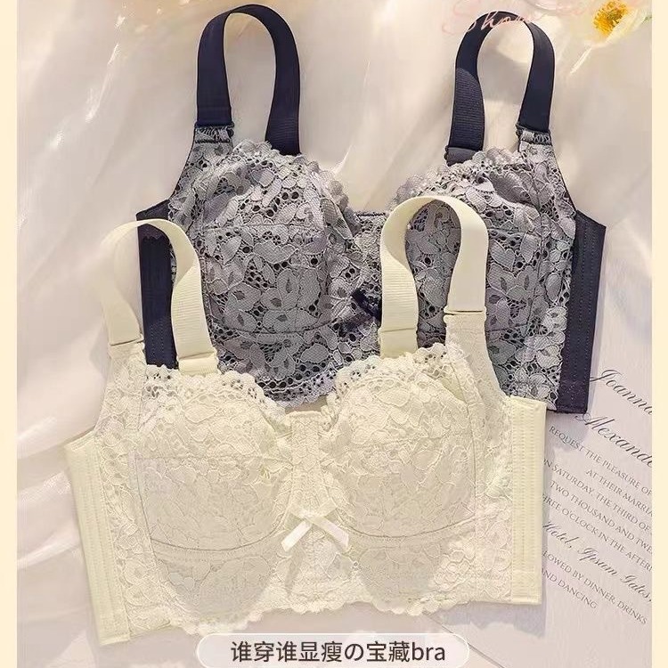 여름 큰 가슴 작은 속옷 여성의 초박형 플러스 사이즈 레이스 푸시 업 조정 방지 처짐 브래지어스토어 가기