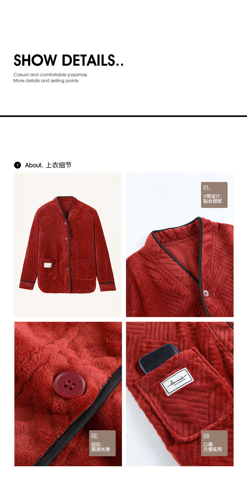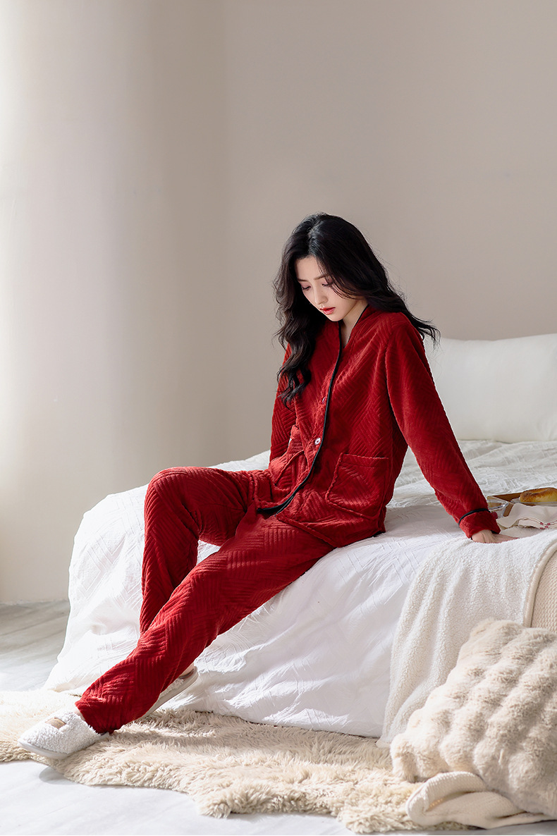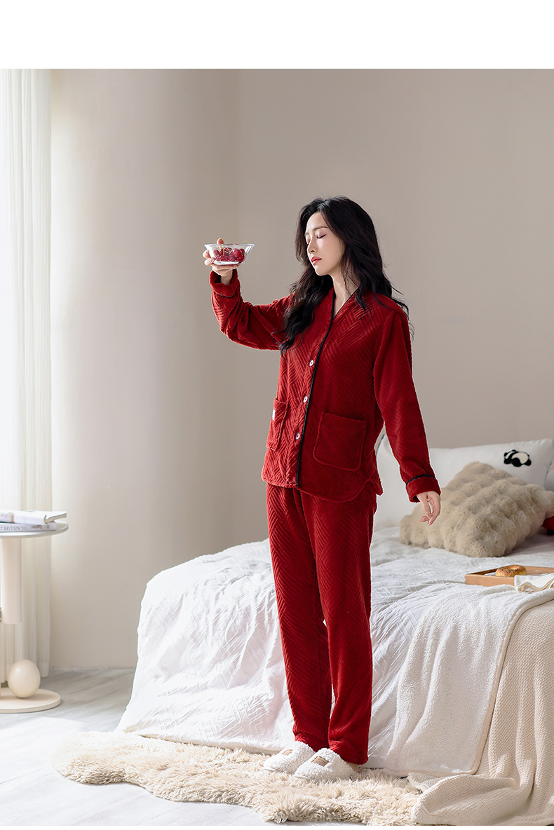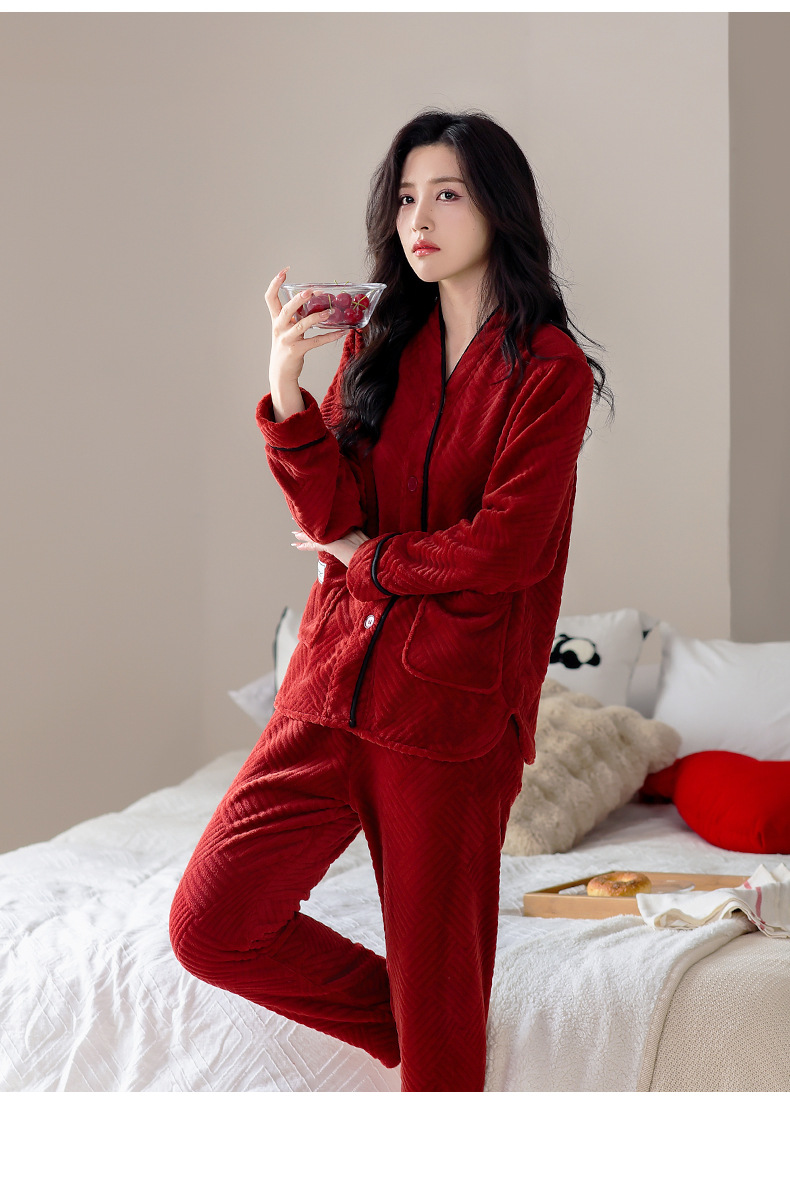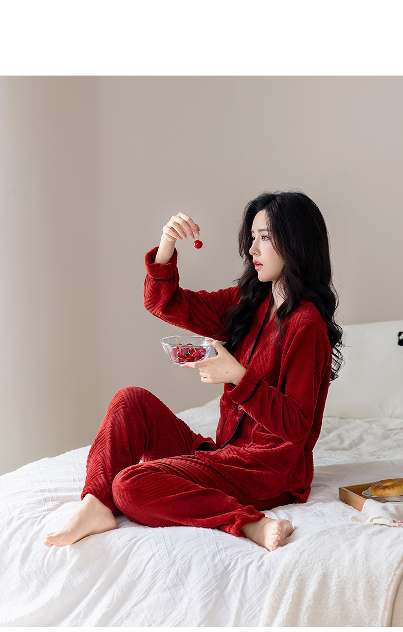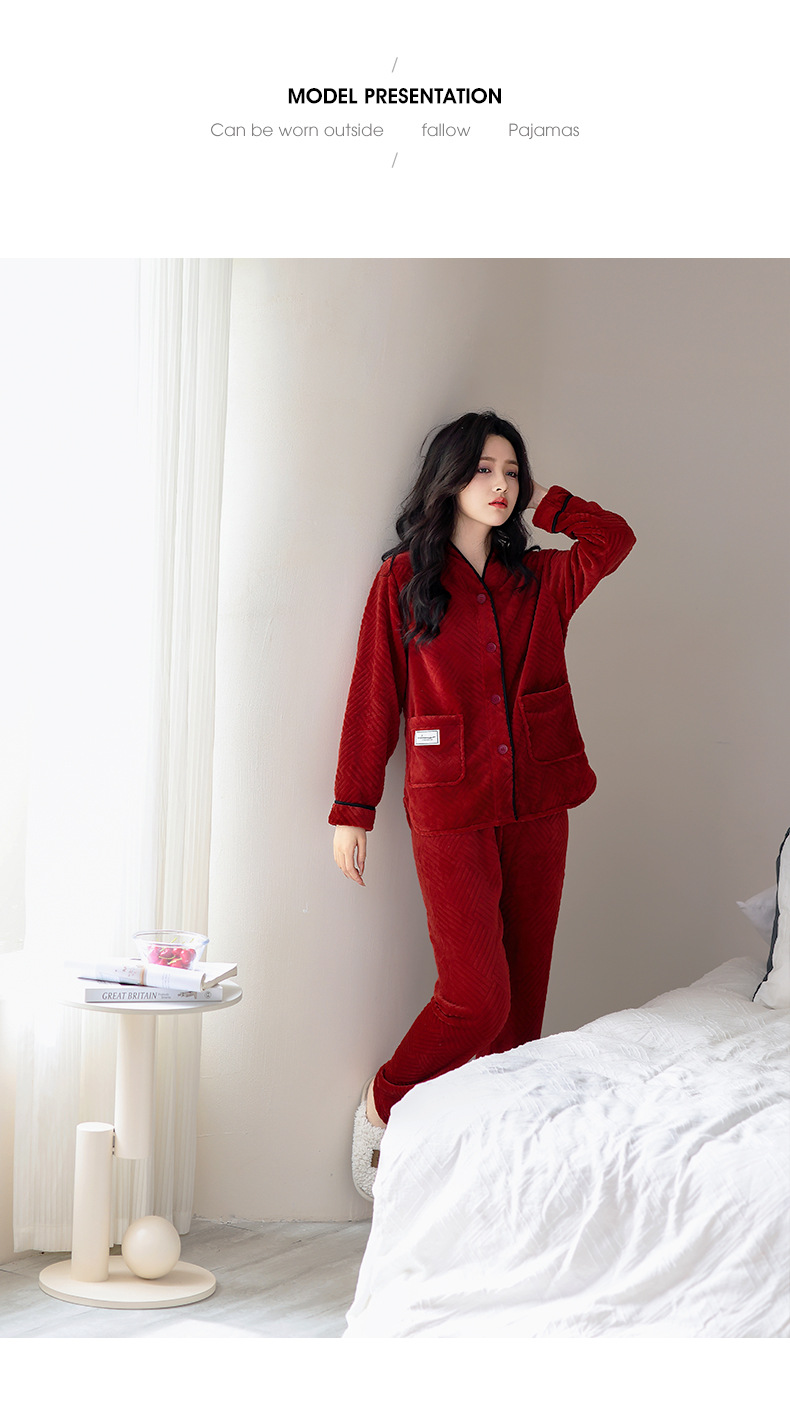 잠옷 여성의 가을과 겨울 산호 양털 생활 년 큰 붉은 두꺼운 기모 따뜻한 집 옷 웨딩 세트