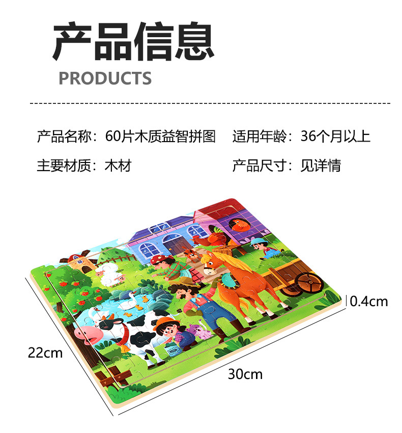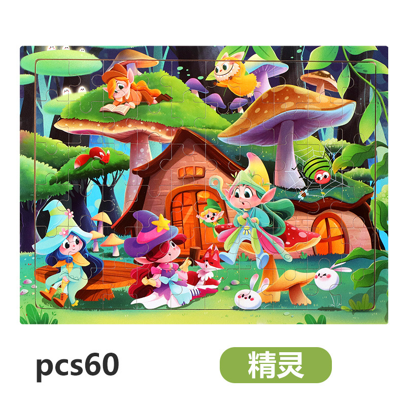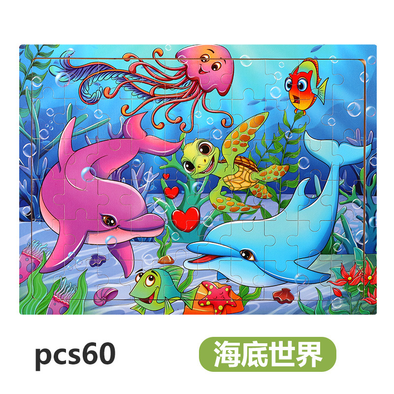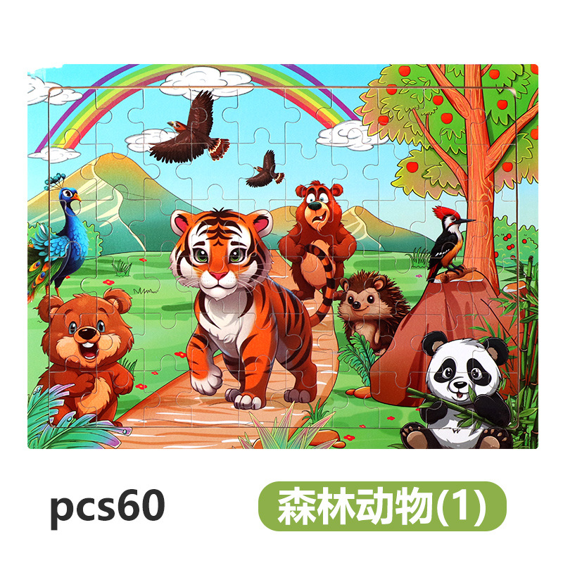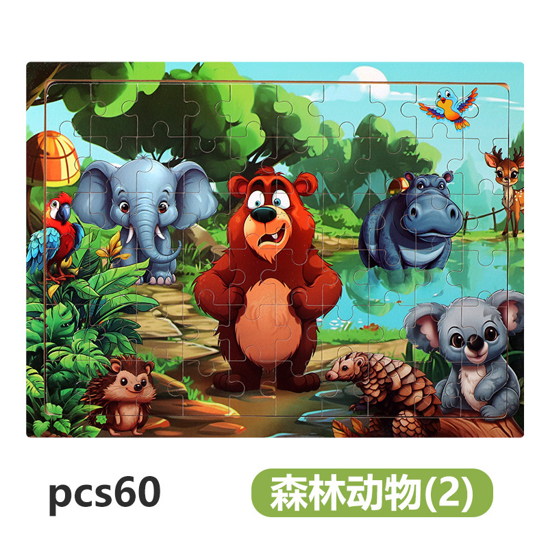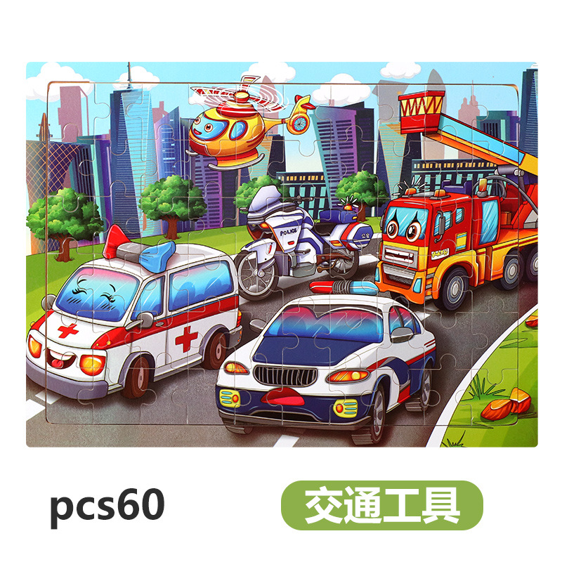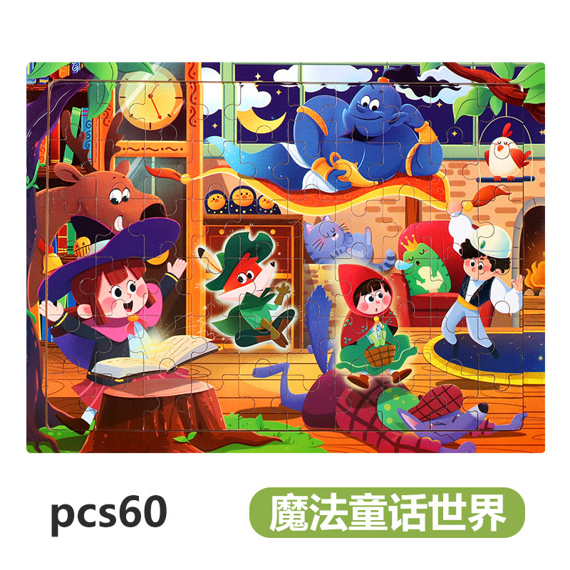 나무 60 조각 퍼즐 어린이 동물 만화 동화 비행기 퍼즐 아기 조기 교육 건물 블록 장난감스토어 가기