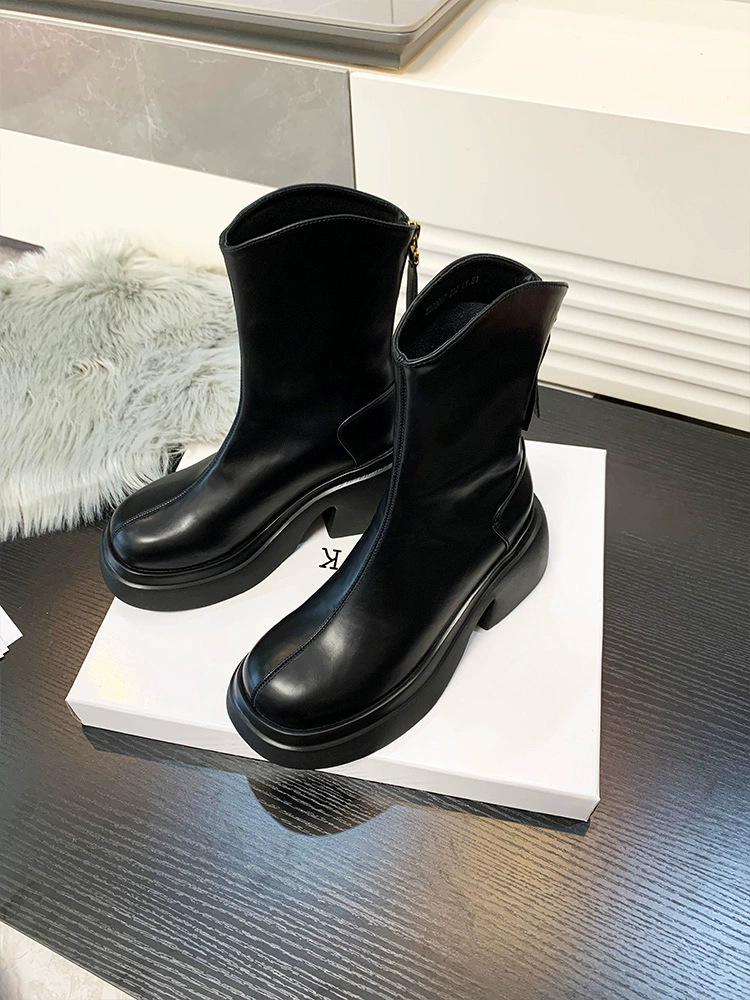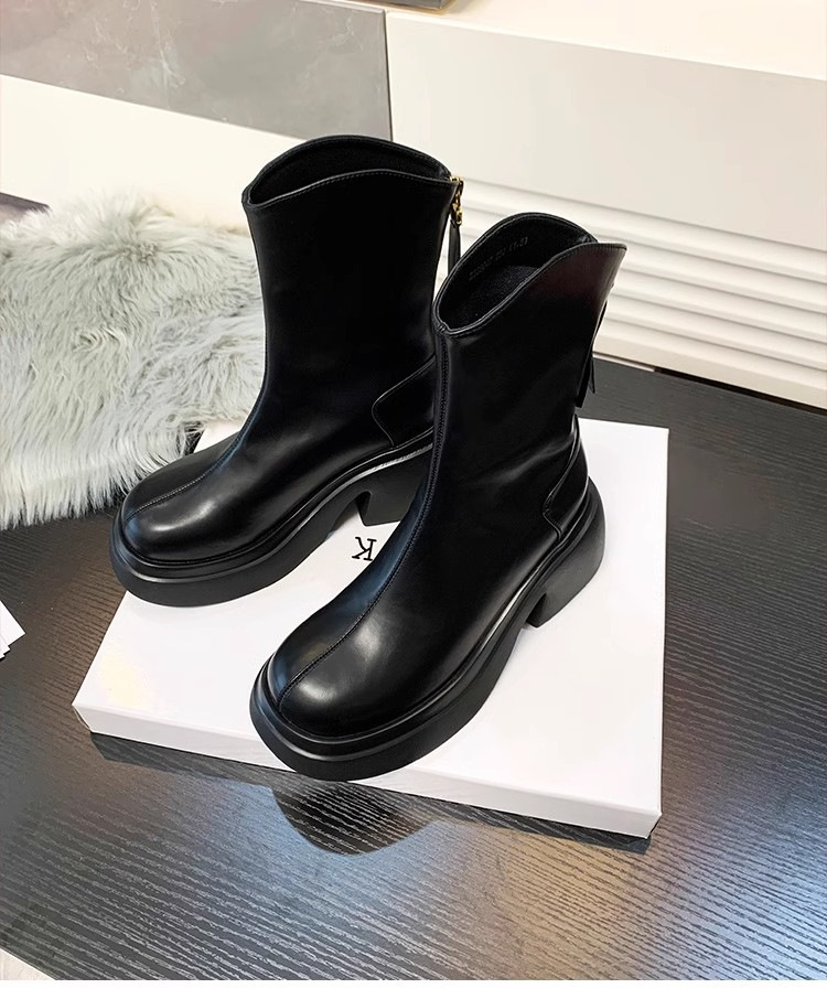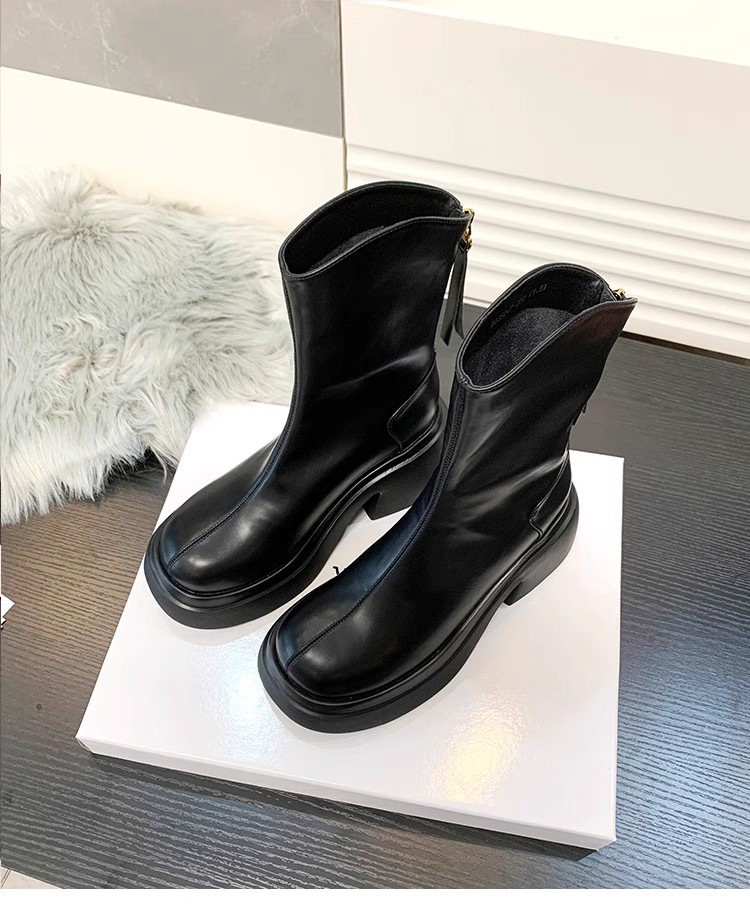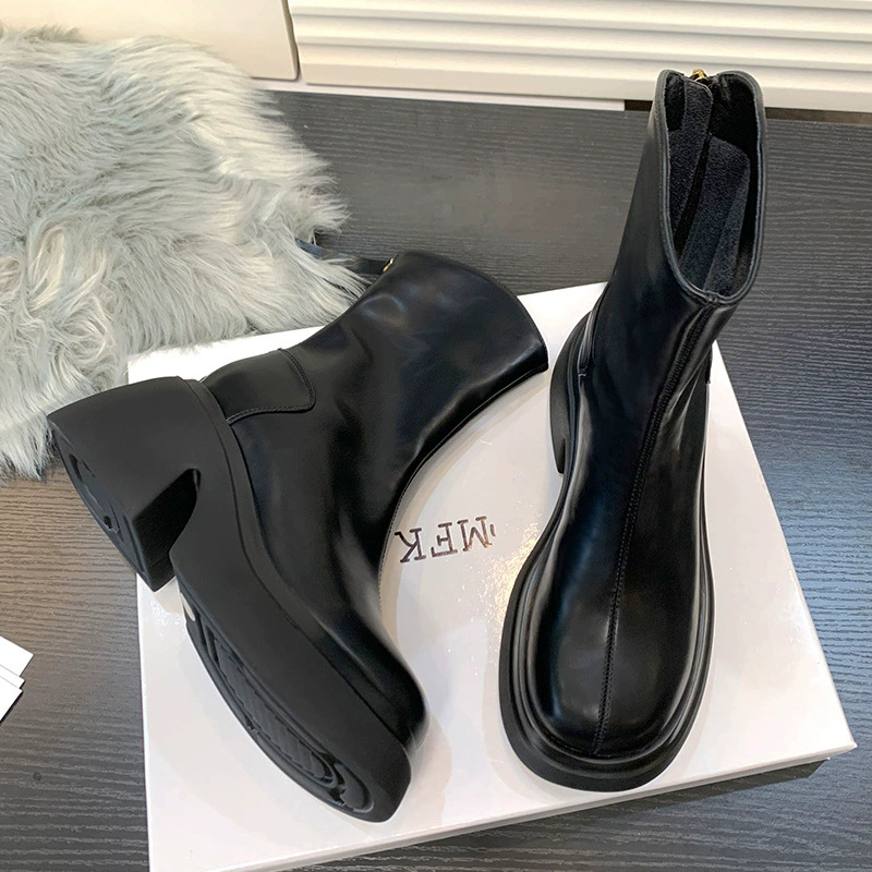 V-Mouth Skinny Martins 여자 2024 가을 및 겨울 새로운 영국 스타일 두꺼운 바닥 올 매치 작은 두꺼운 힐 얇은 발목 부츠