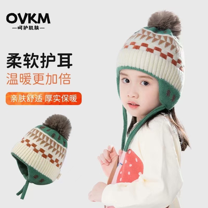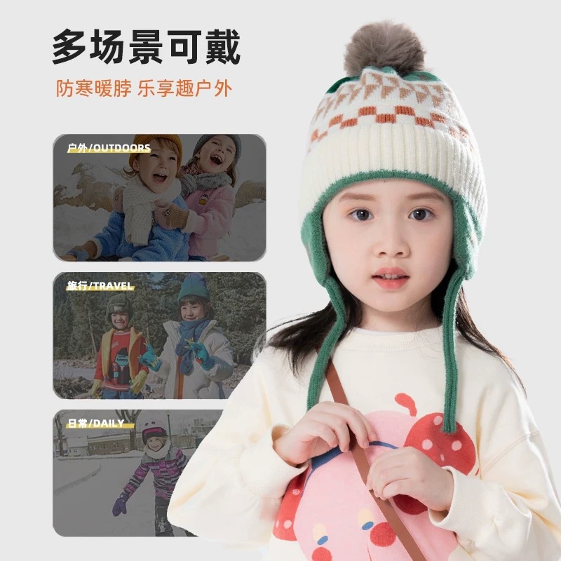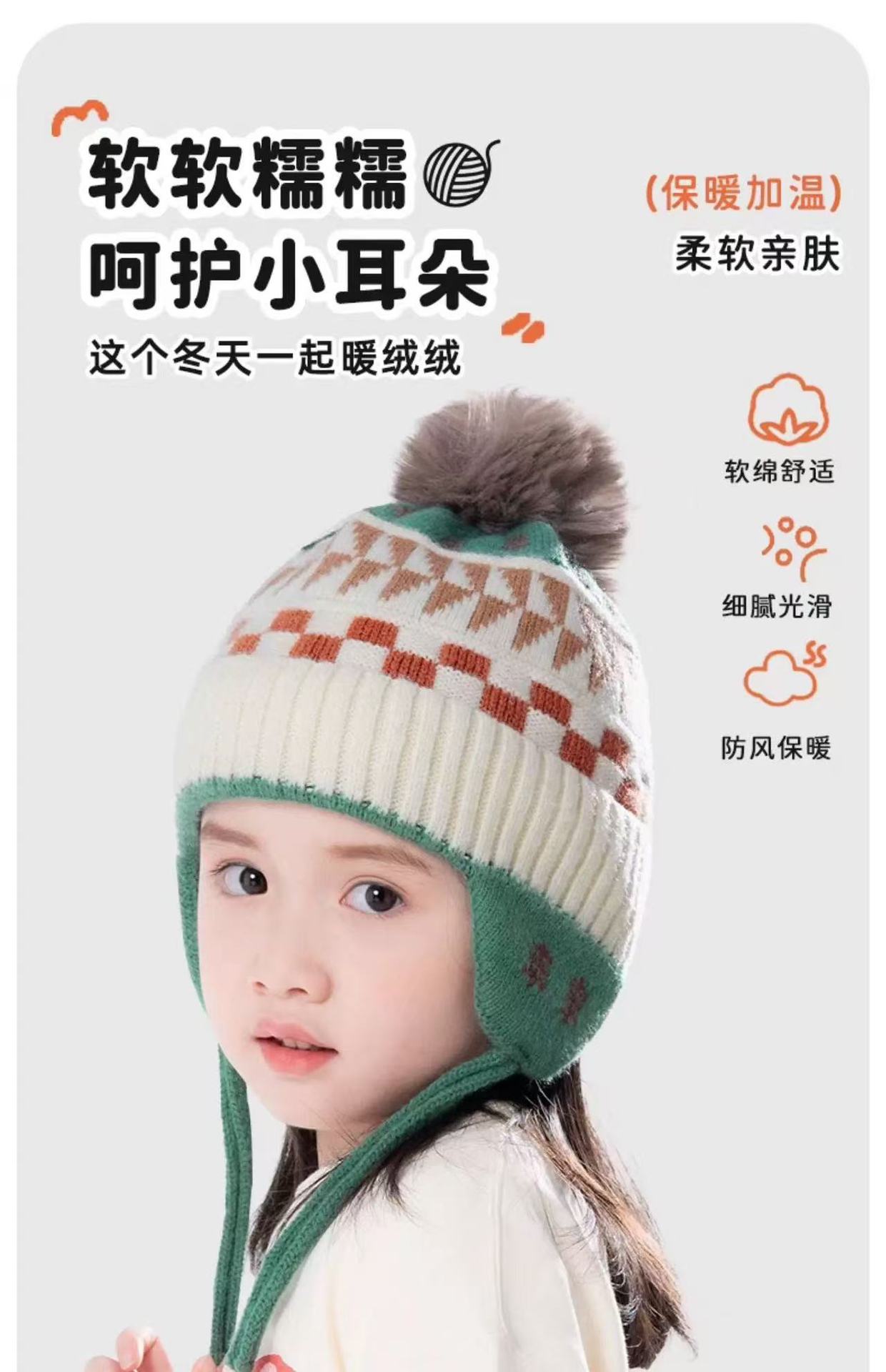 어린이 모자 가을, 겨울 만화 귀여운 소녀 아기 모직 모자 방풍 따뜻한 귀 보호 모자 소년 니트 모자스토어 가기