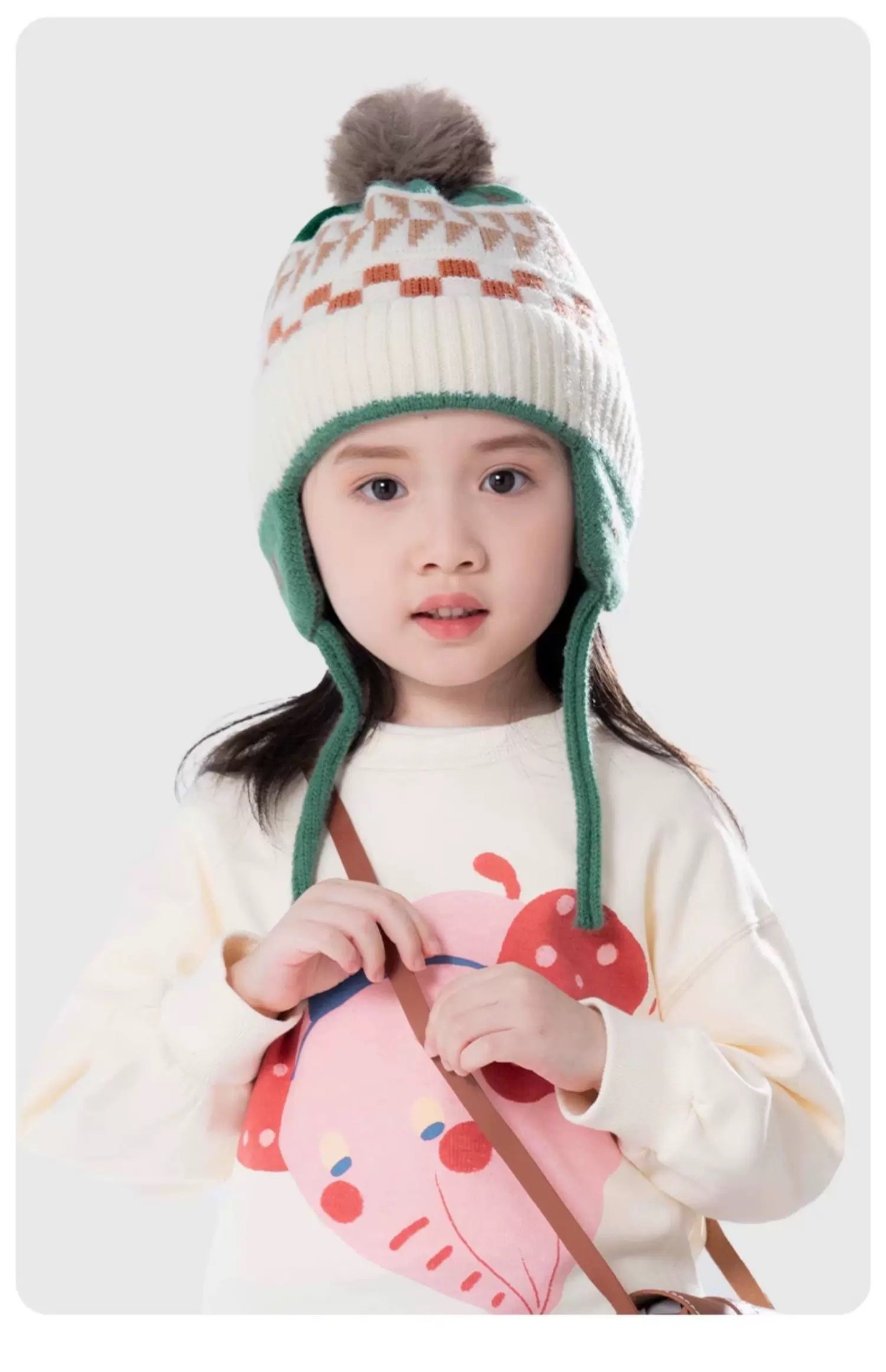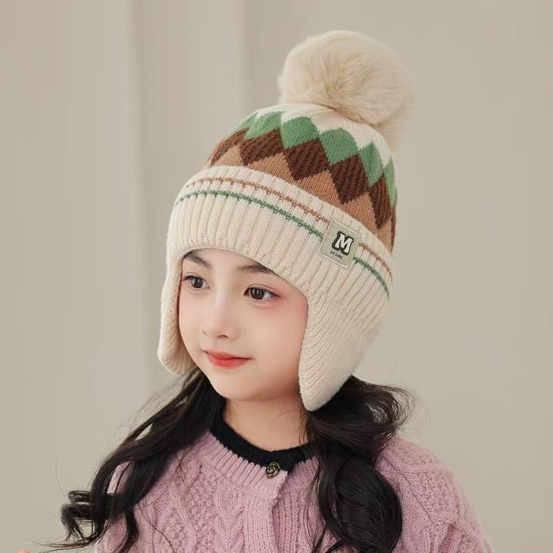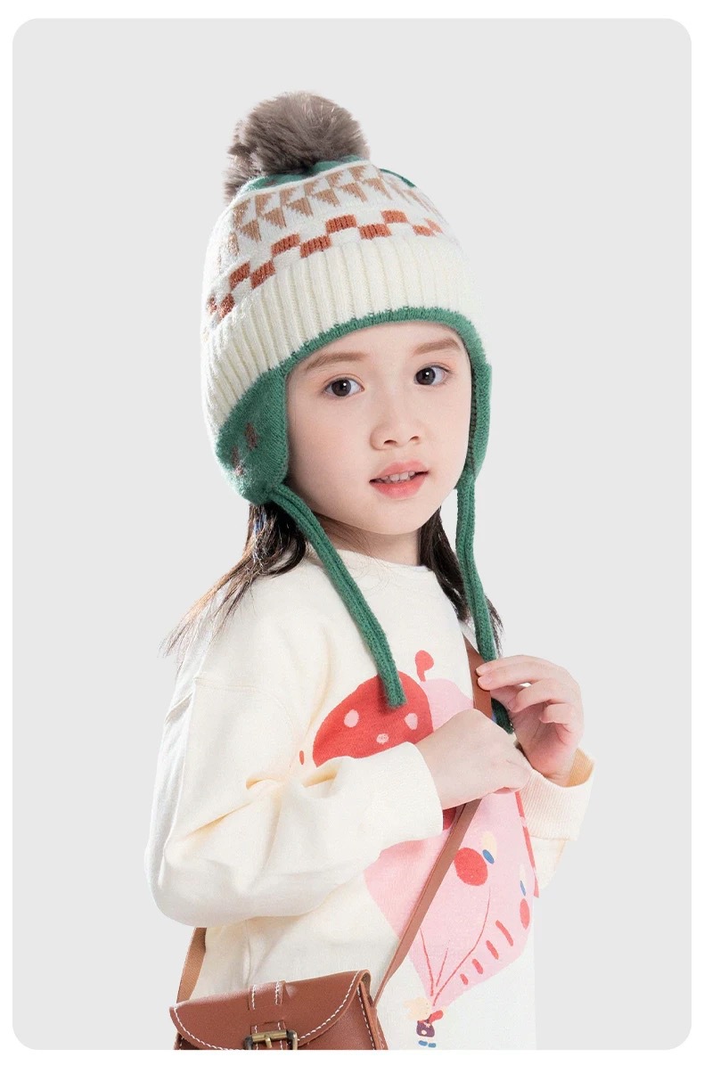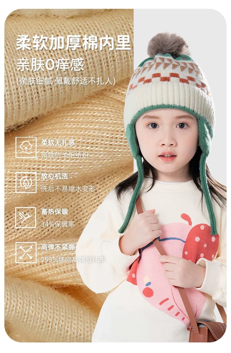 어린이 모자 가을, 겨울 만화 귀여운 소녀 아기 모직 모자 방풍 따뜻한 귀 보호 모자 소년 니트 모자
