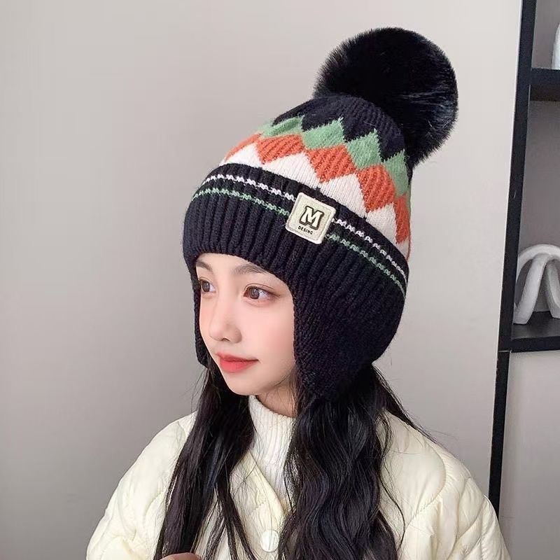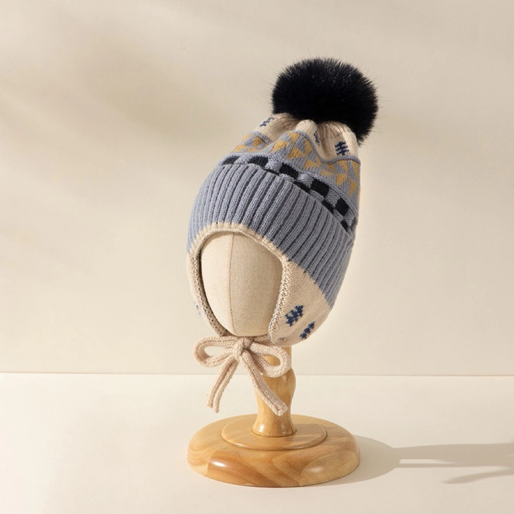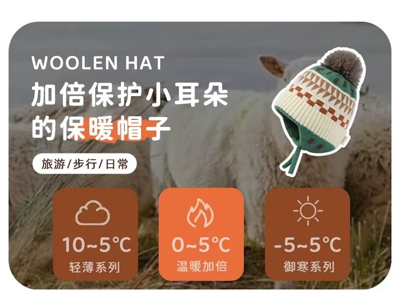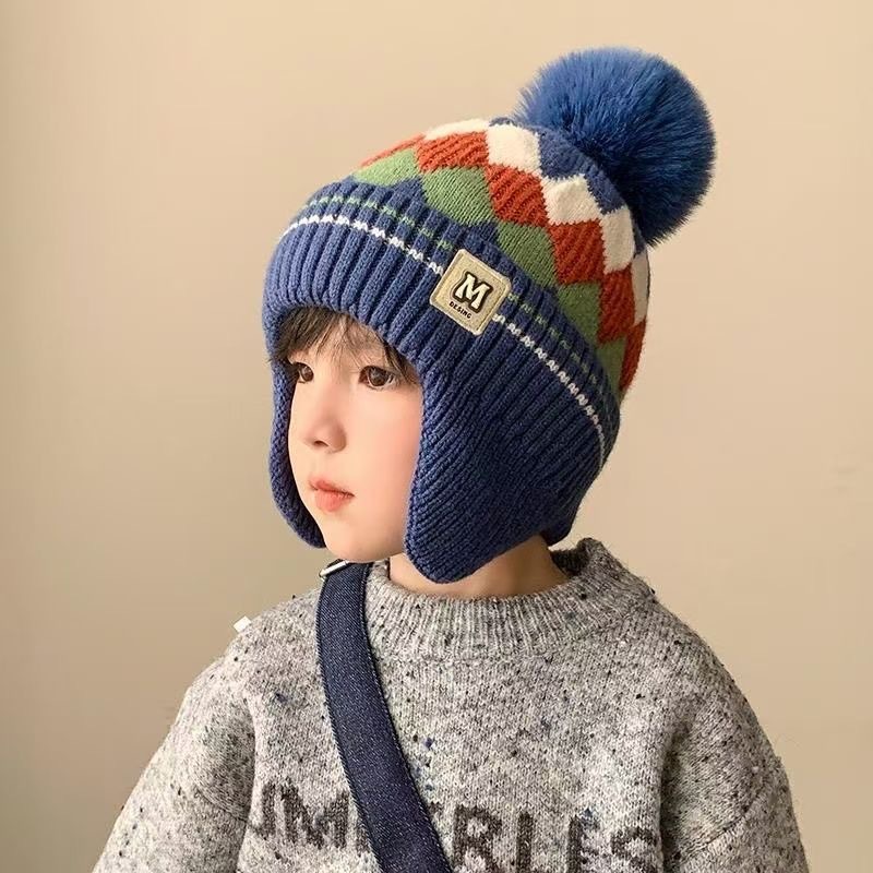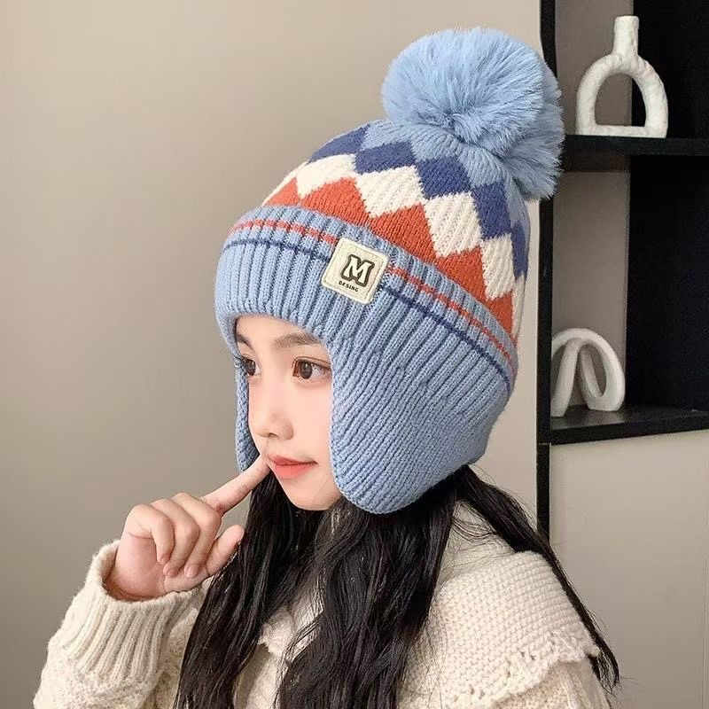 어린이 모자 가을, 겨울 만화 귀여운 소녀 아기 모직 모자 방풍 따뜻한 귀 보호 모자 소년 니트 모자