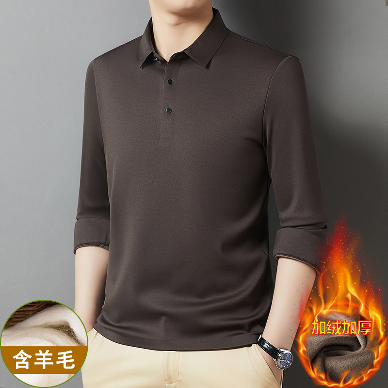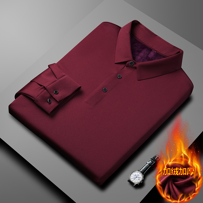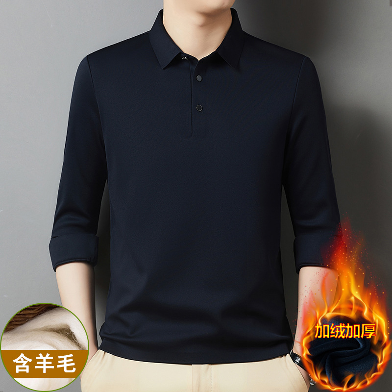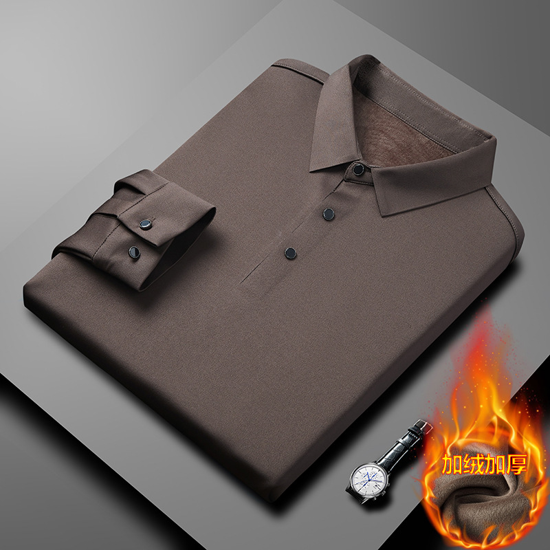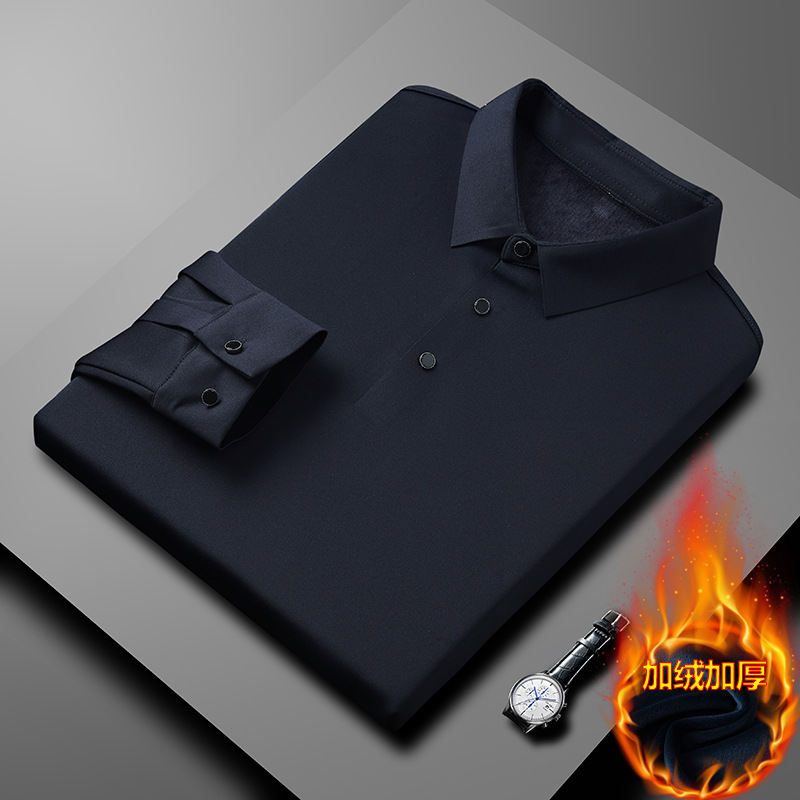 가벼운 럭셔리 하이 엔드 긴팔 폴로 셔츠 티셔츠 남자 기모 랩 칼라 겨울 넓은 중년 아빠의 두꺼운 따뜻한베이스 셔츠