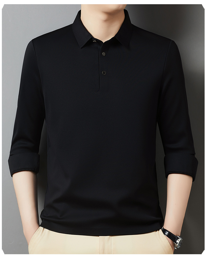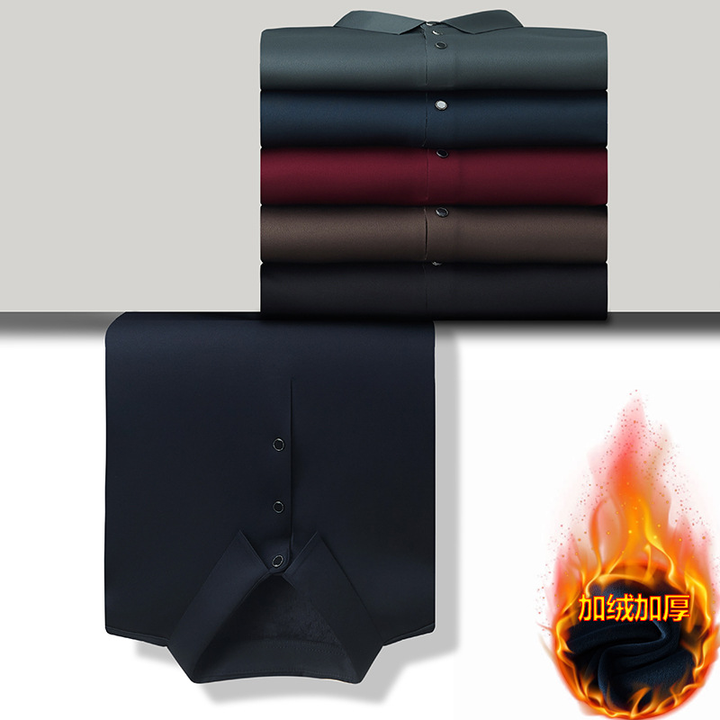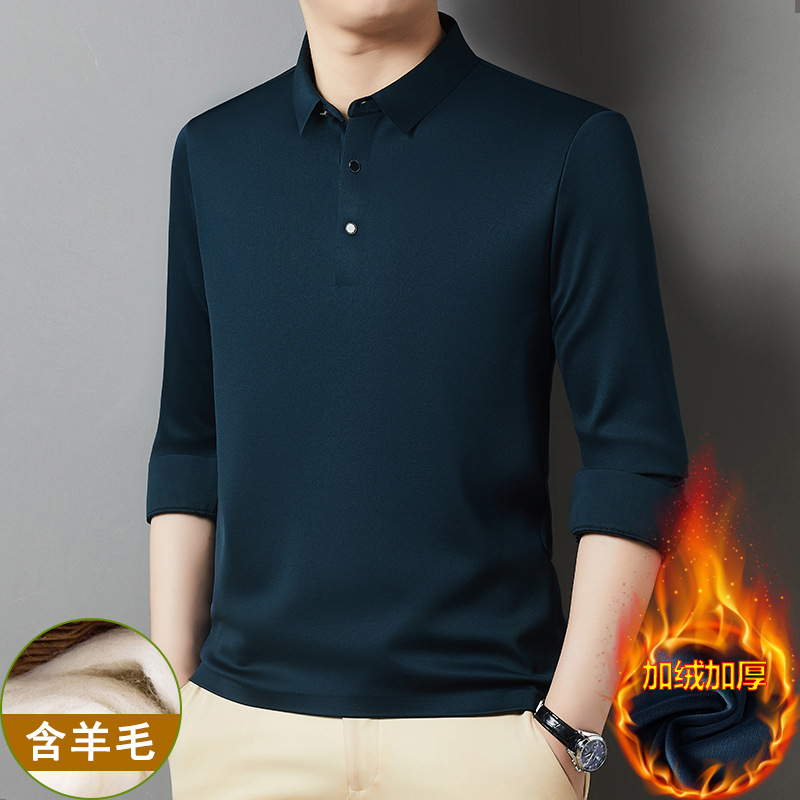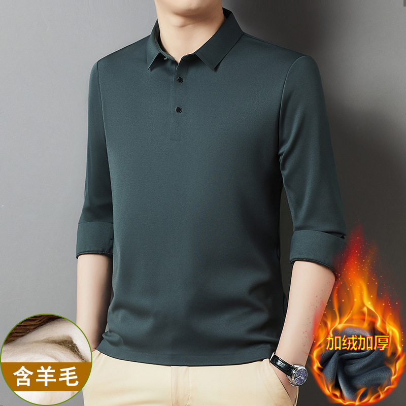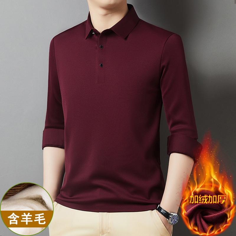 가벼운 럭셔리 하이 엔드 긴팔 폴로 셔츠 티셔츠 남자 기모 랩 칼라 겨울 넓은 중년 아빠의 두꺼운 따뜻한베이스 셔츠