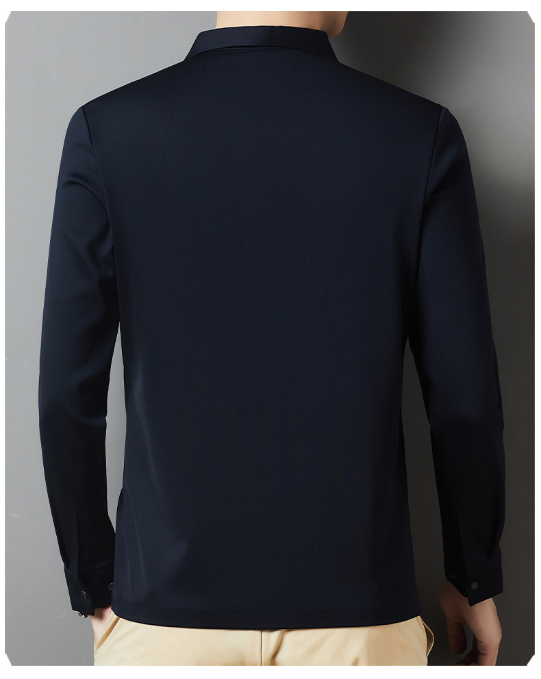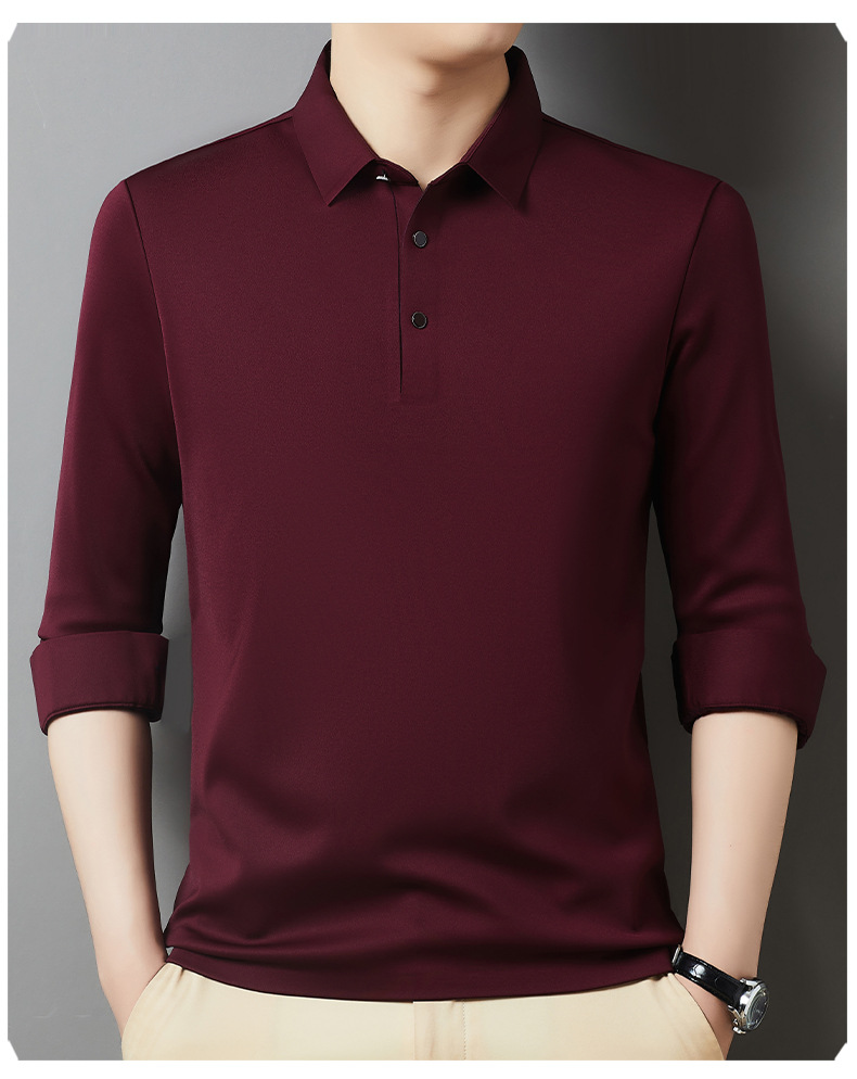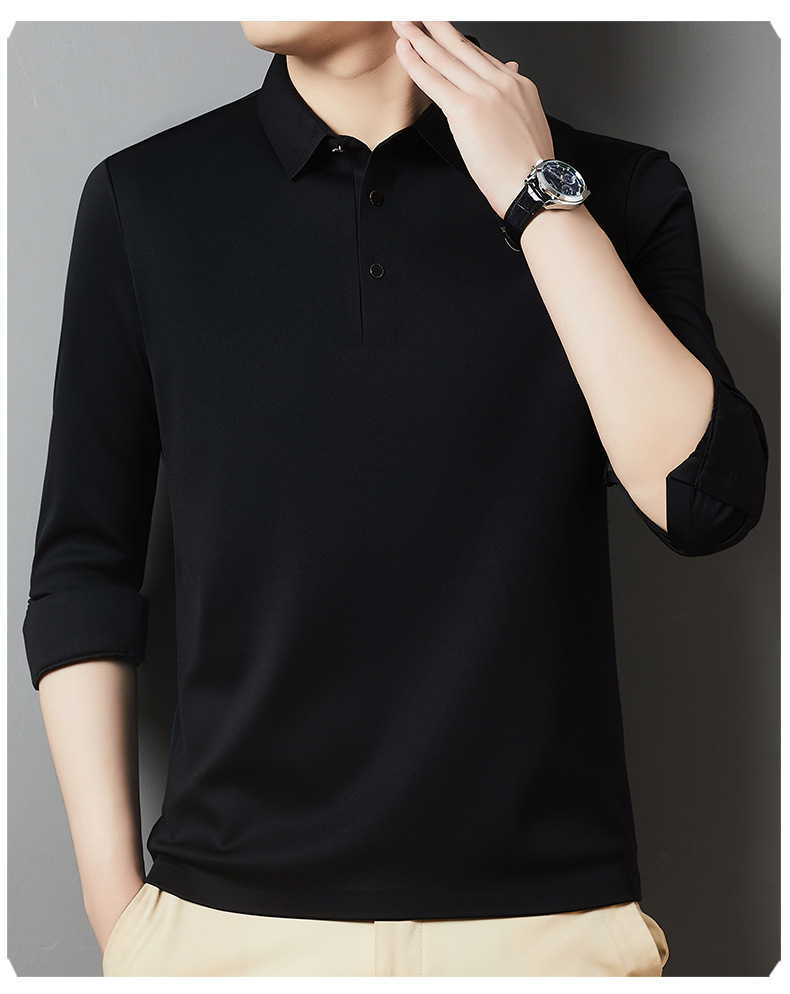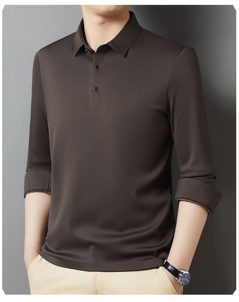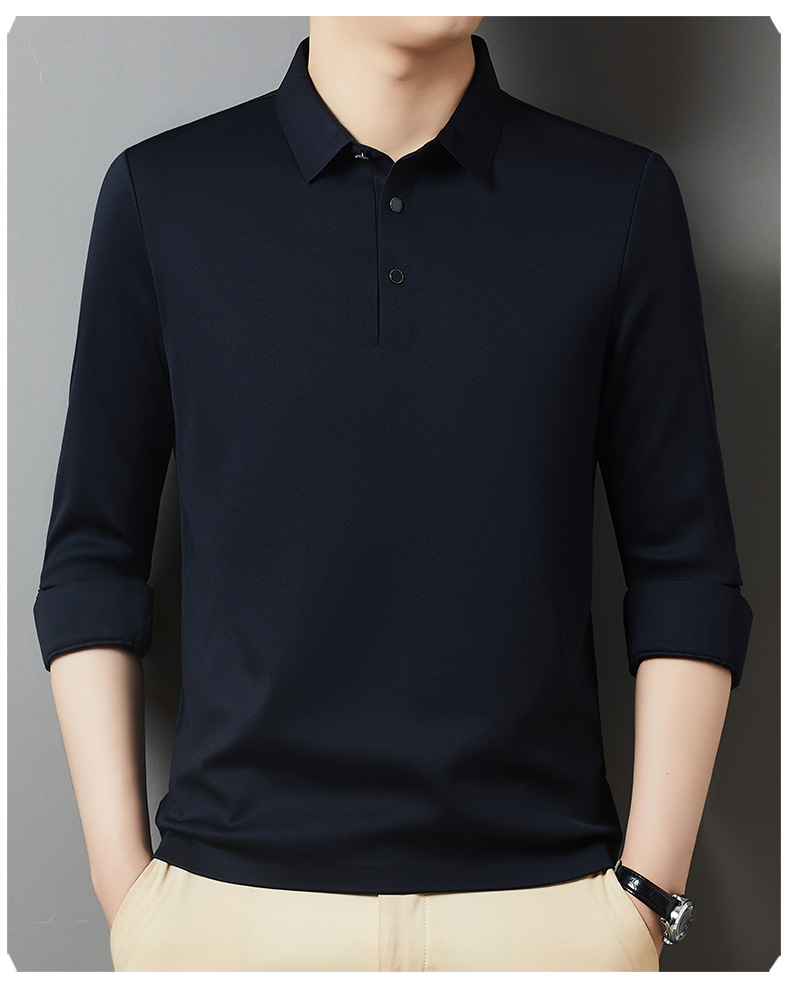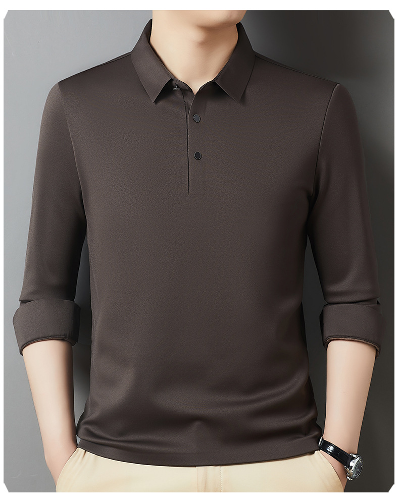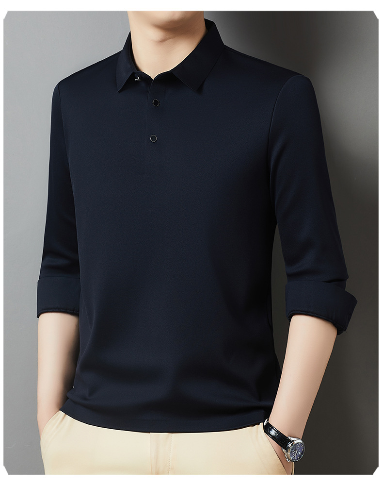 가벼운 럭셔리 하이 엔드 긴팔 폴로 셔츠 티셔츠 남자 기모 랩 칼라 겨울 넓은 중년 아빠의 두꺼운 따뜻한베이스 셔츠스토어 가기