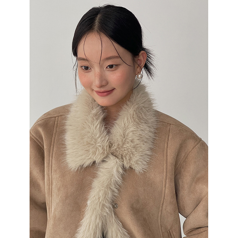 [Fernand] 송밍 레트로 옷깃 스웨이드 벨벳 코트 여자 겨울 모피 재킷 N499B