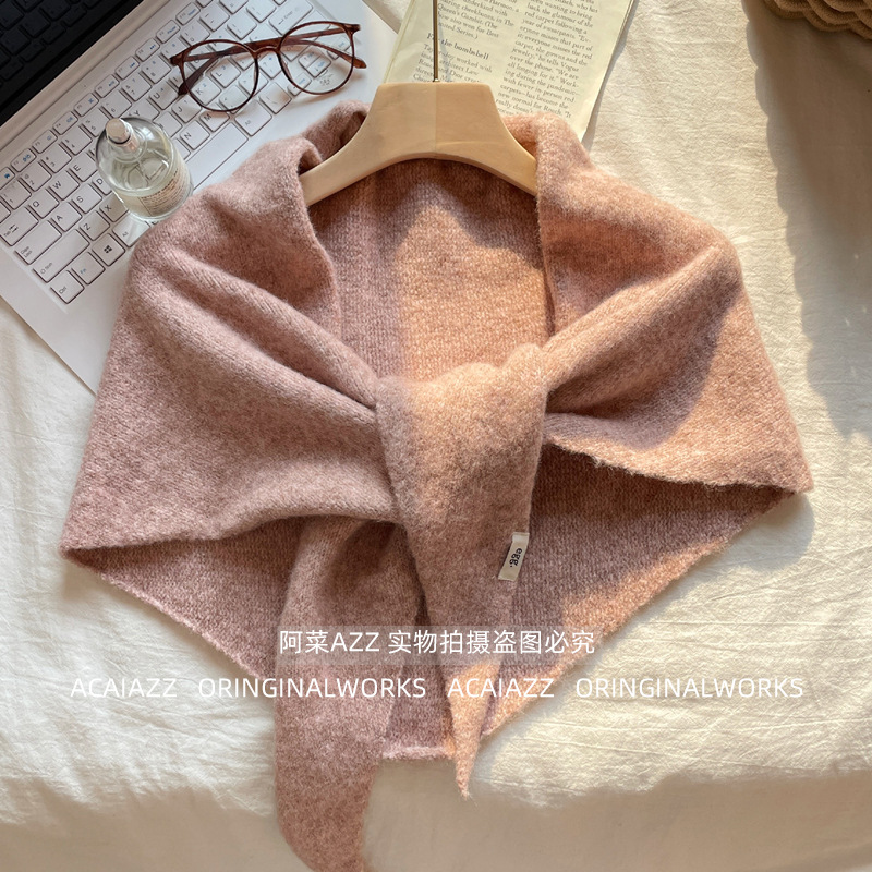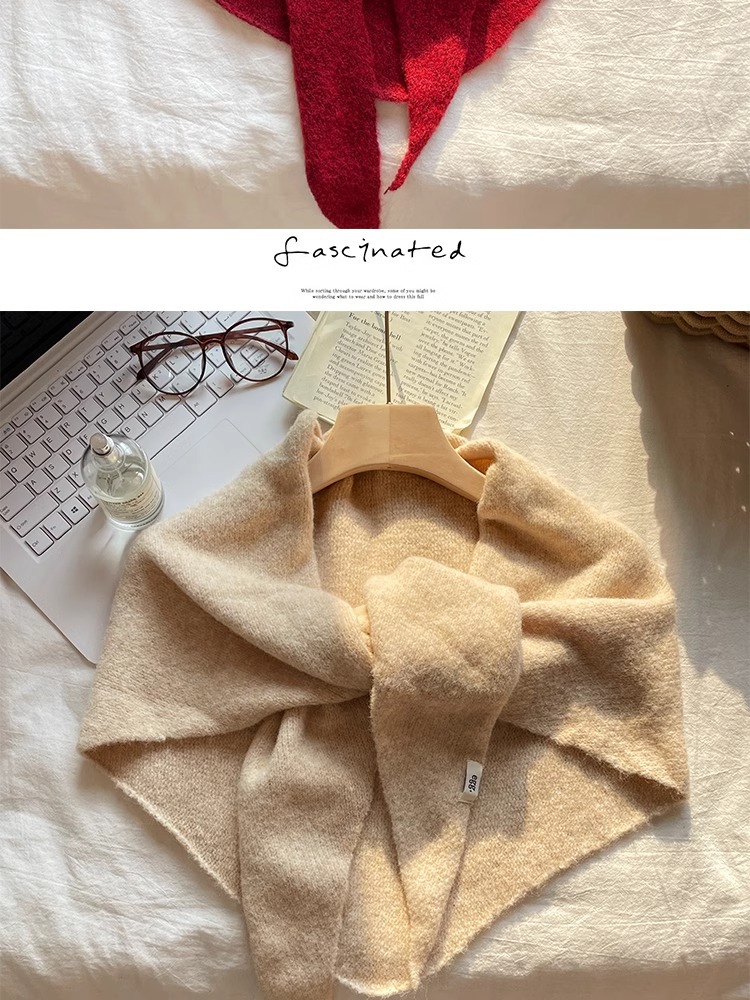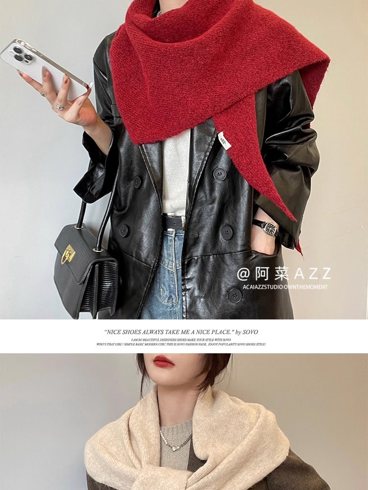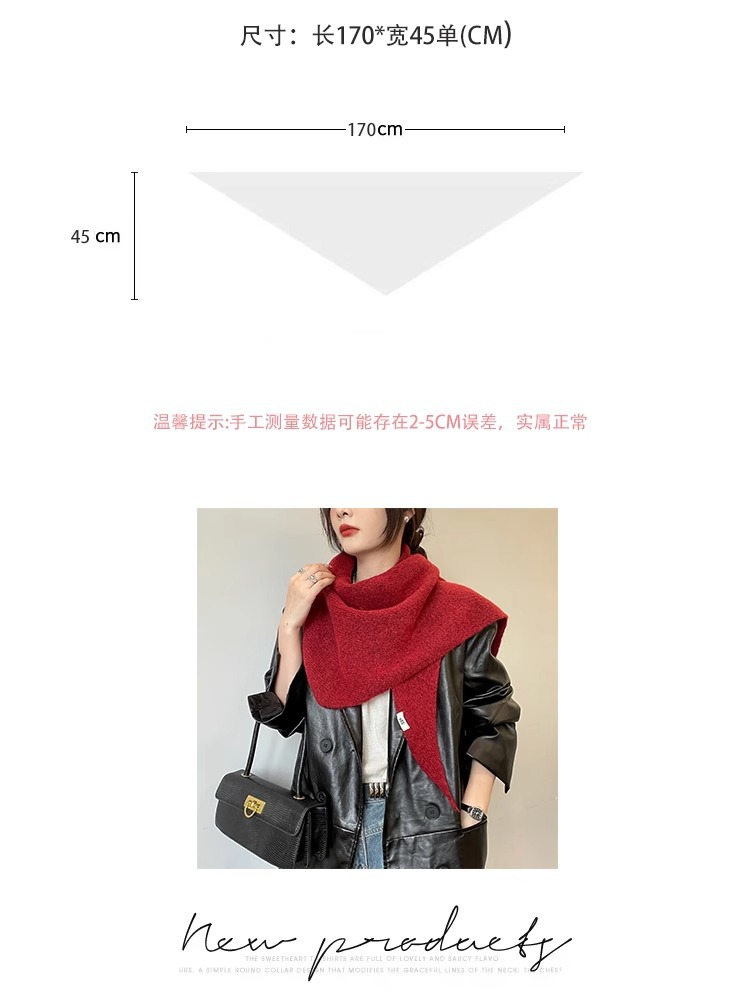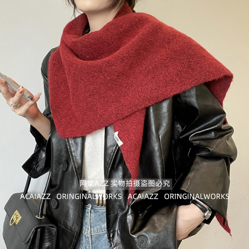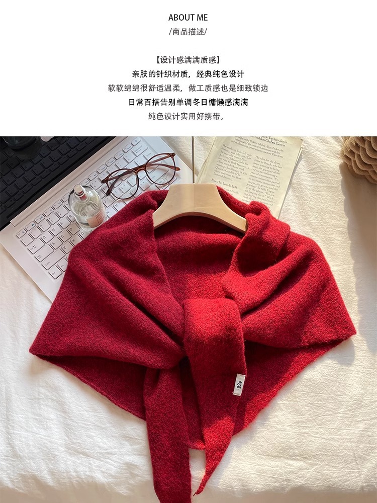 2024 새로운 겨울 하이 엔드 스카프 레드 니트 목도리 여성의 프랑스 복고풍 스카프 우아한 삼각형 조수
