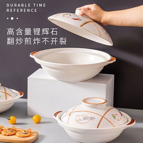 Yingyu 세라믹 캐서롤 수프 포인팅 귀 쿠커 고온 저항하는 상업용 가스 캐서롤 리튬 도자기 캐서롤 얕은 냄비 일본식 핑 런
