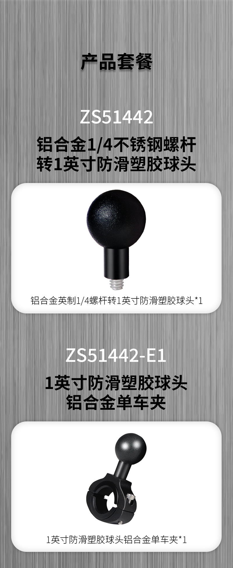 四、名称*数量:1英寸防滑塑胶球头转接头*1
