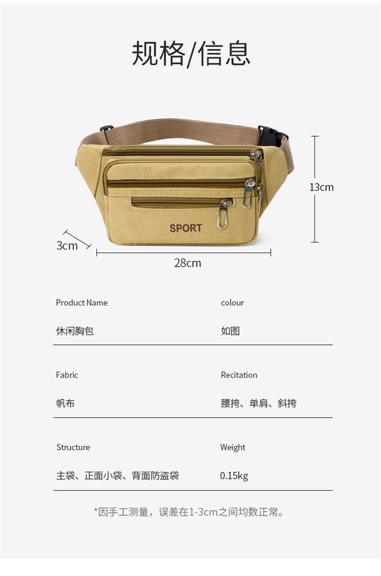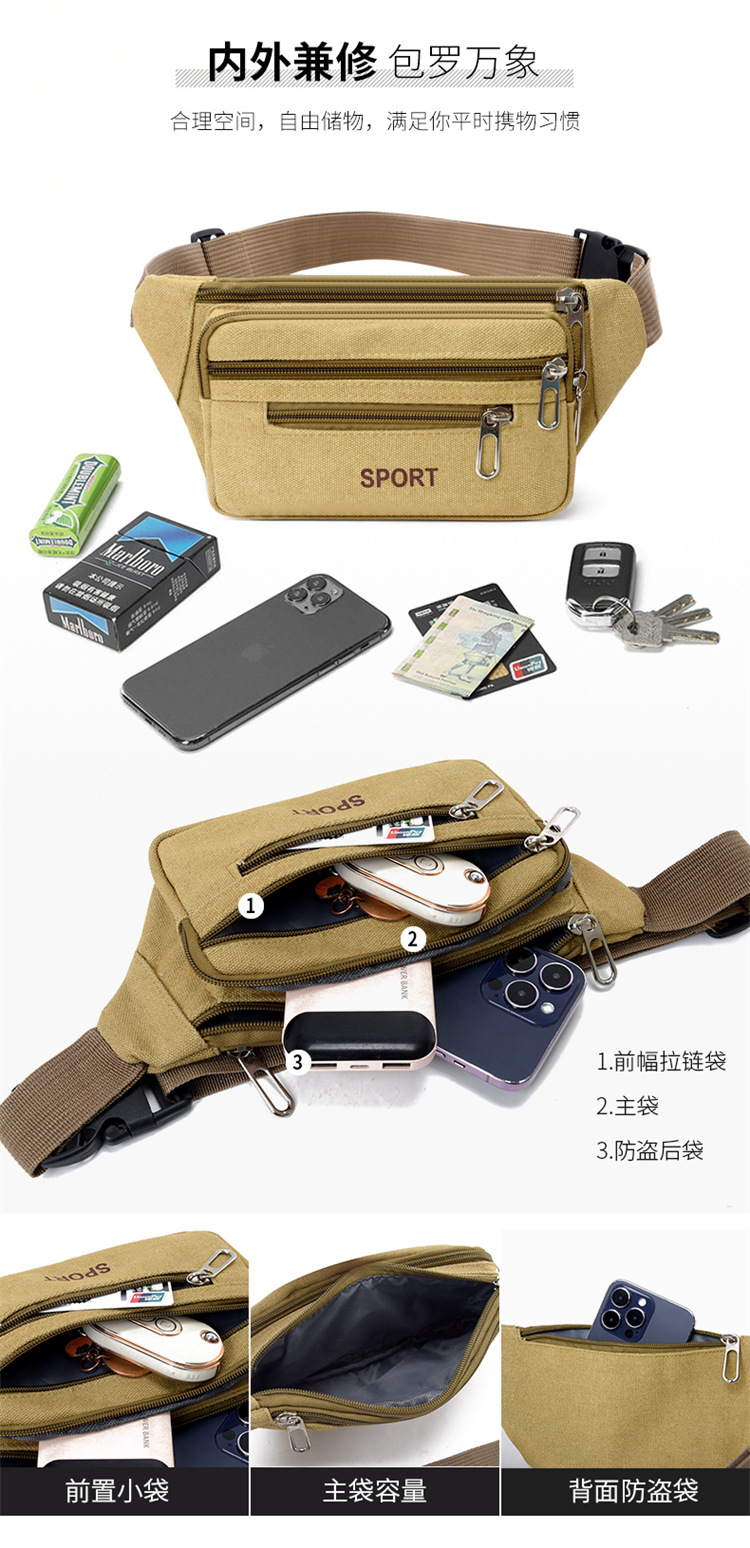 2024 겨울 허리 가방 남성과 여성의 대용량 다기능 사이트 작업 캔버스 내마모성 패션 비즈니스 지갑