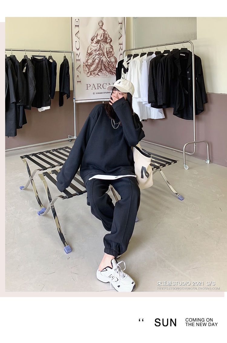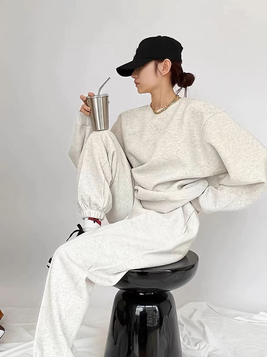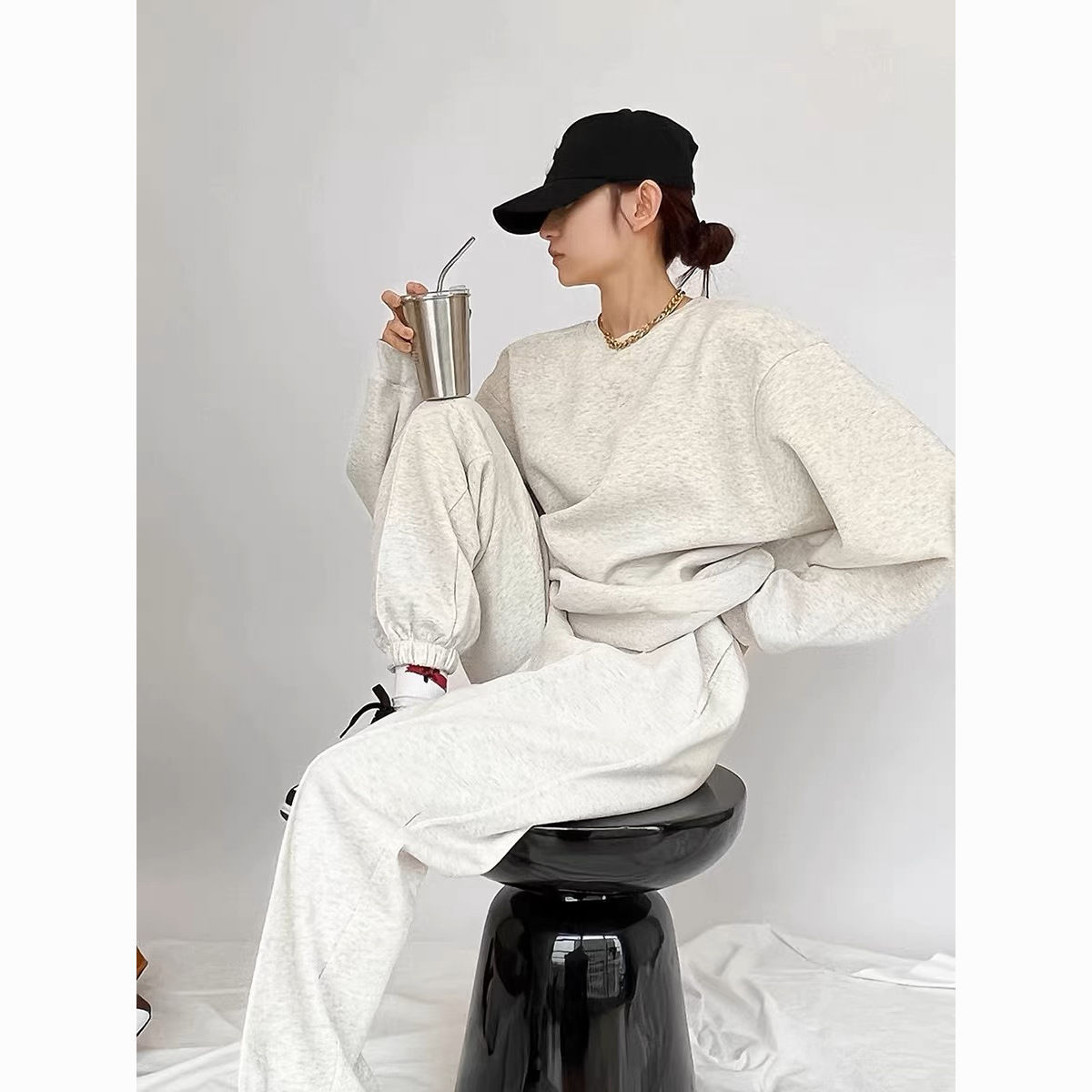 유럽과 미국 스타일의 국경 스포츠 세트 여성의 봄과 가을 새로운 느슨한 스웨트 셔츠 러닝 의류 패션 캐주얼 바지 투피스 세트스토어 가기