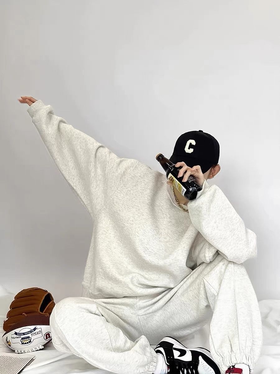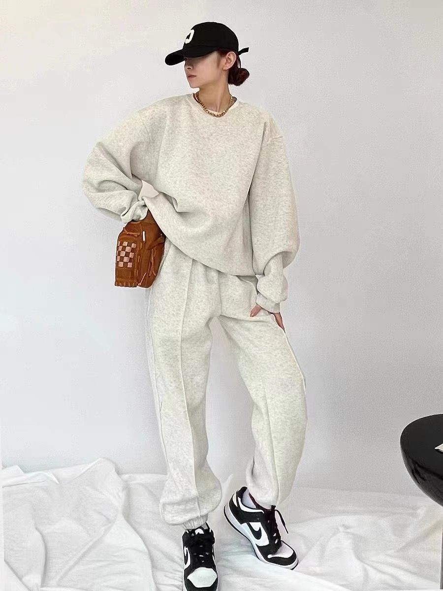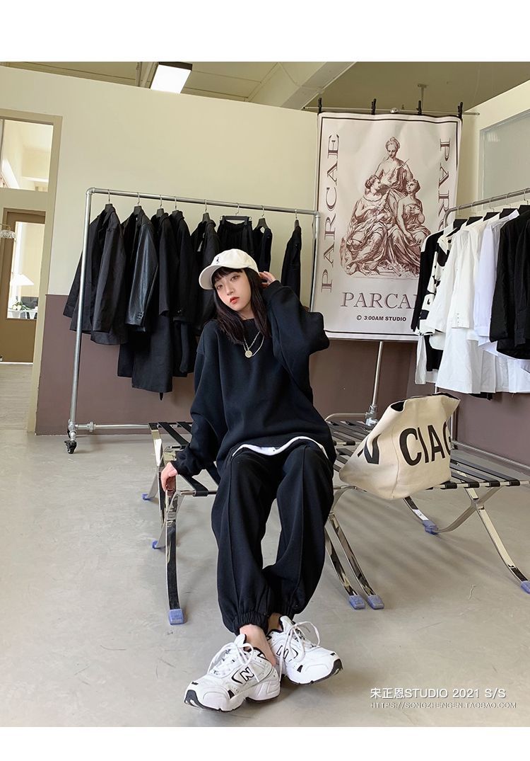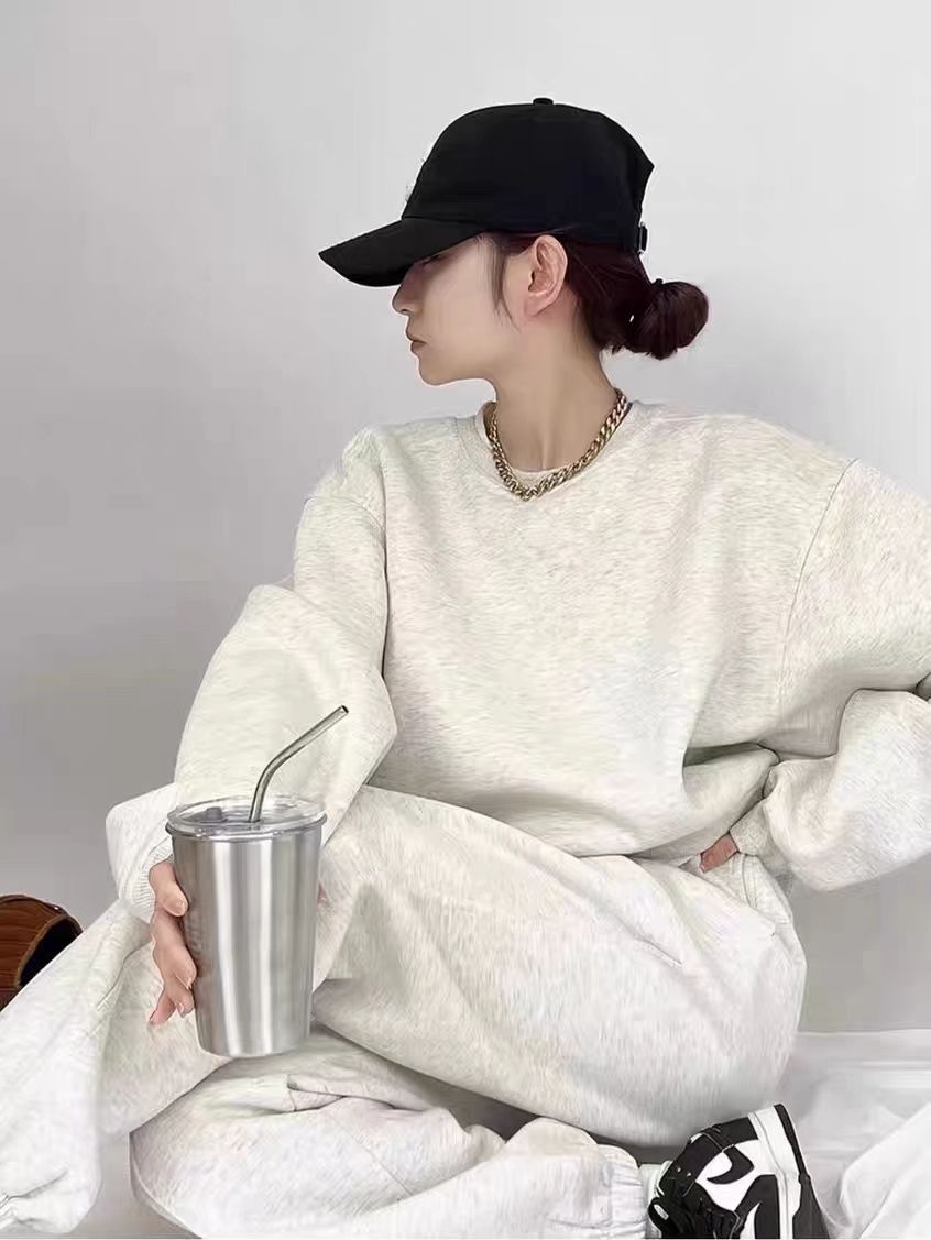유럽과 미국 스타일의 국경 스포츠 세트 여성의 봄과 가을 새로운 느슨한 스웨트 셔츠 러닝 의류 패션 캐주얼 바지 투피스 세트스토어 가기